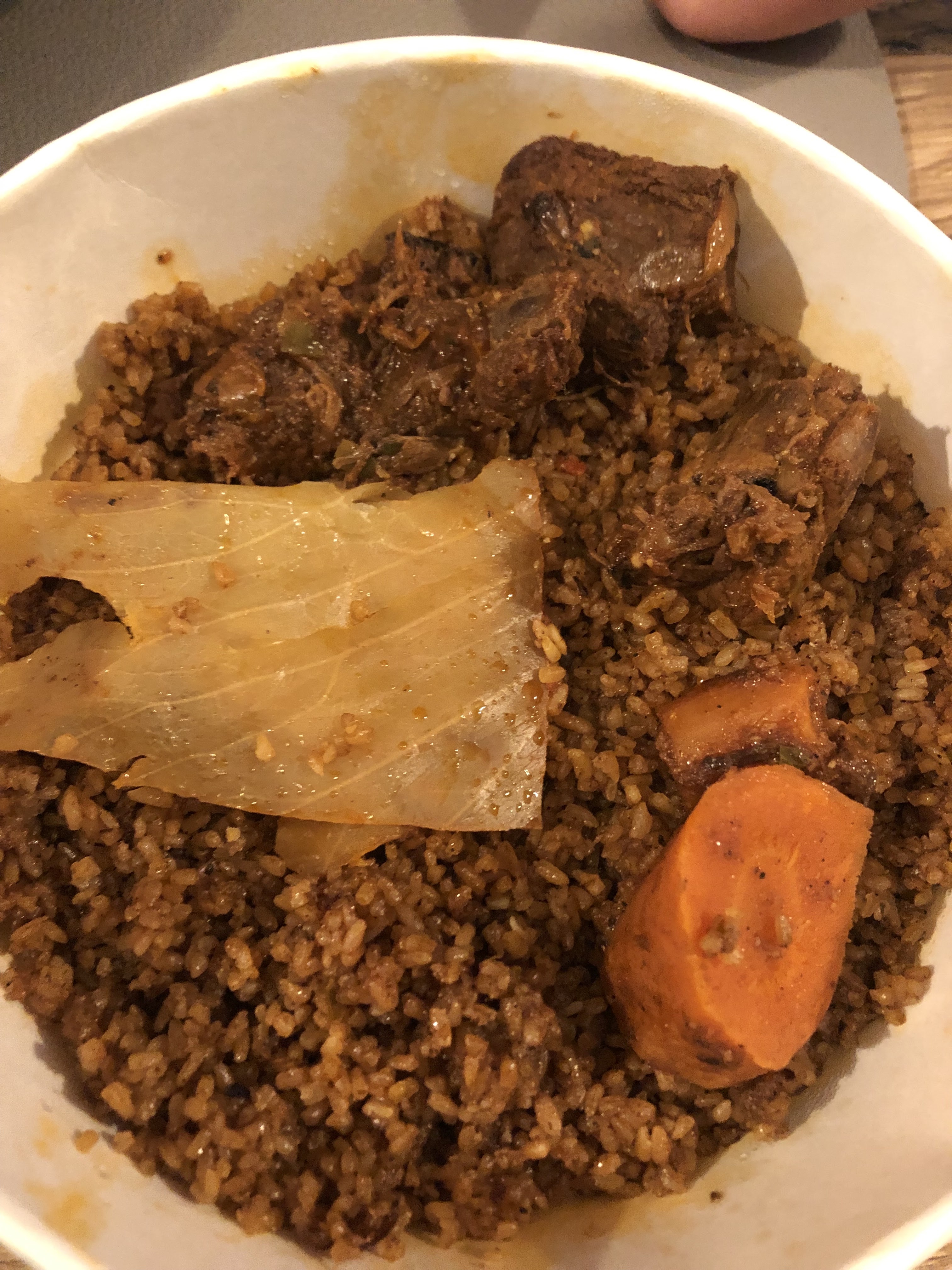 Je découvre enfin la cuisine Africaine ! Mais c est une dinguerie en faite ! Je recommande à 💯 Dommage que nous n’ayons pas pu manger sur place car le nombre de table est limité environ 5 table de 2 banquettes