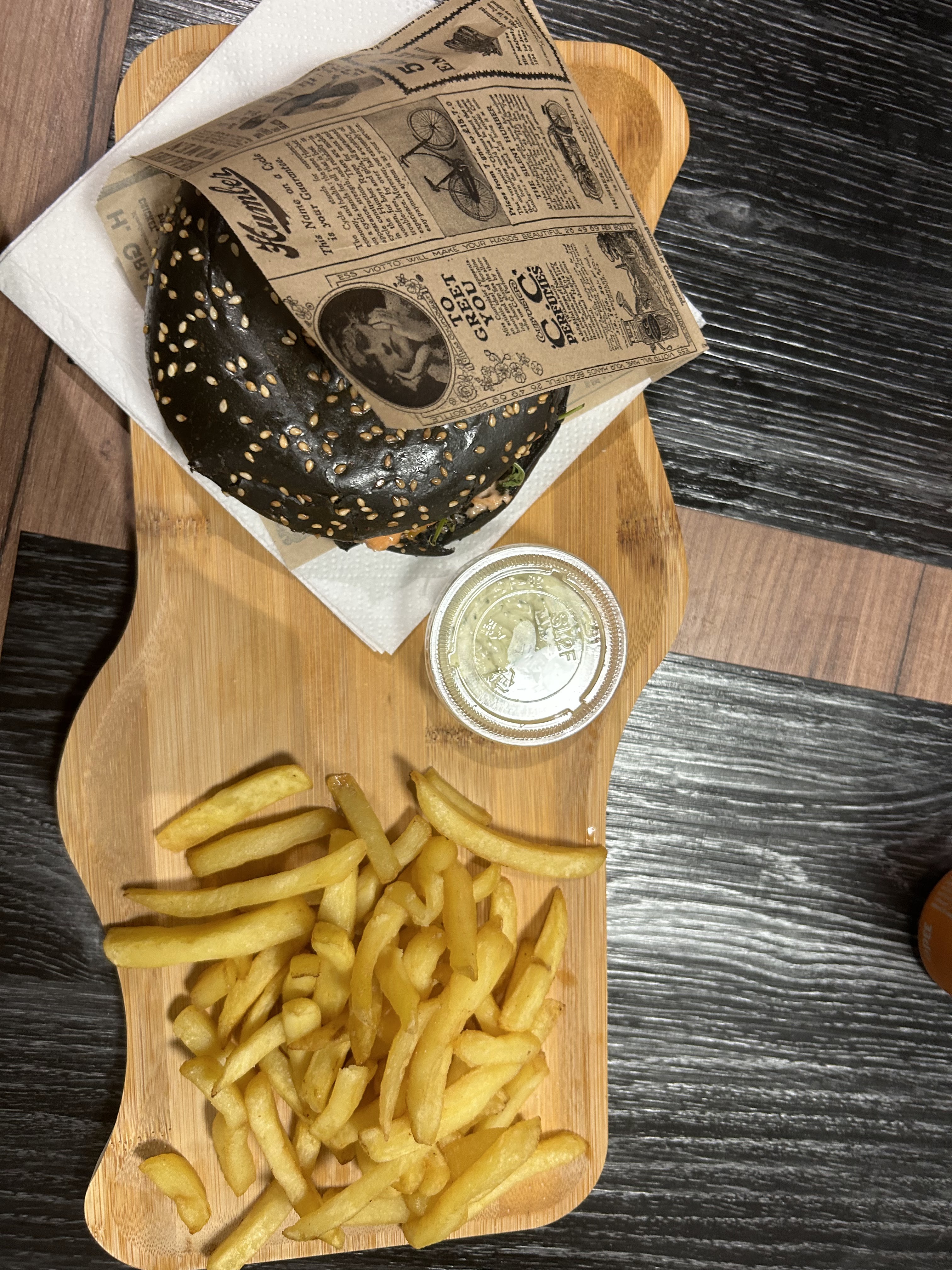 Le burger noir à l'encre de sèche est délicieux. Mais, l'accompagnement n'était pas top. C'est la seconde fois que je commande des frites de pommes de terre et qu'elles ne sont pas fraîches et la quantité laissait à désirer. Idem pour les frites de patates douces. Elles n'étaient pas appétissantes du tout et pas fraîches. Par contre les bananes plantins RAS, c'était un régal. Et le chicken Mafé était délicieux pour finir sur une note positive 😊! J'espère manger des meilleurs frites la prochaine fois 😁