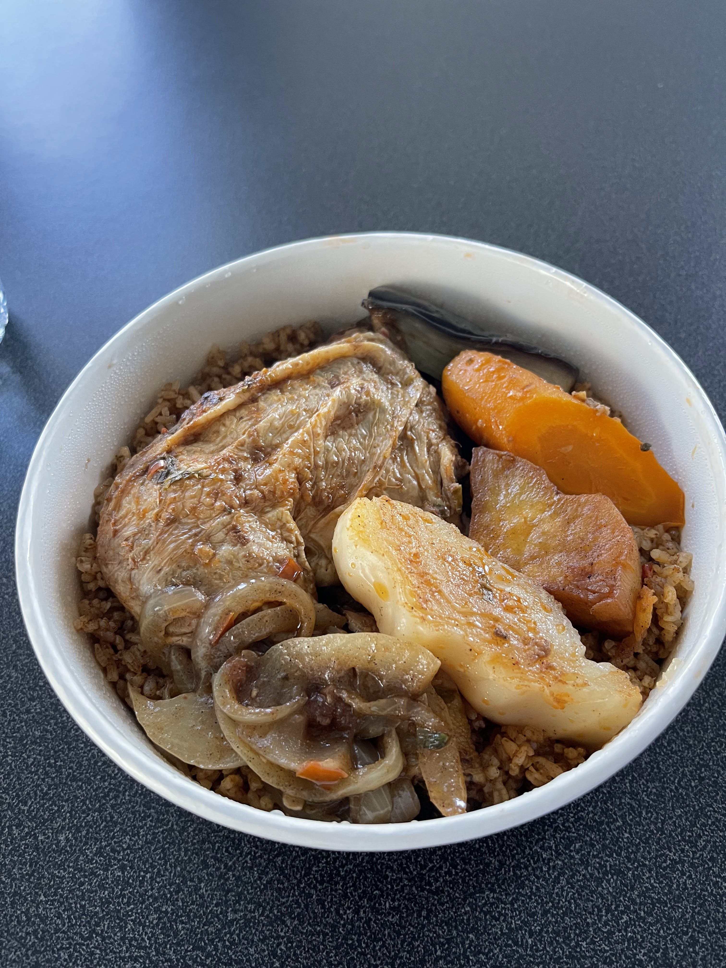 Première commande, poulet yassa j'ai beaucoup aimée la sauce oignons avec les carottes et les olives, attieké savoureux, j'encourage, possible que je recommande. Parce que c'était vraiment pas mal du tout. Hâte de voir le reste.