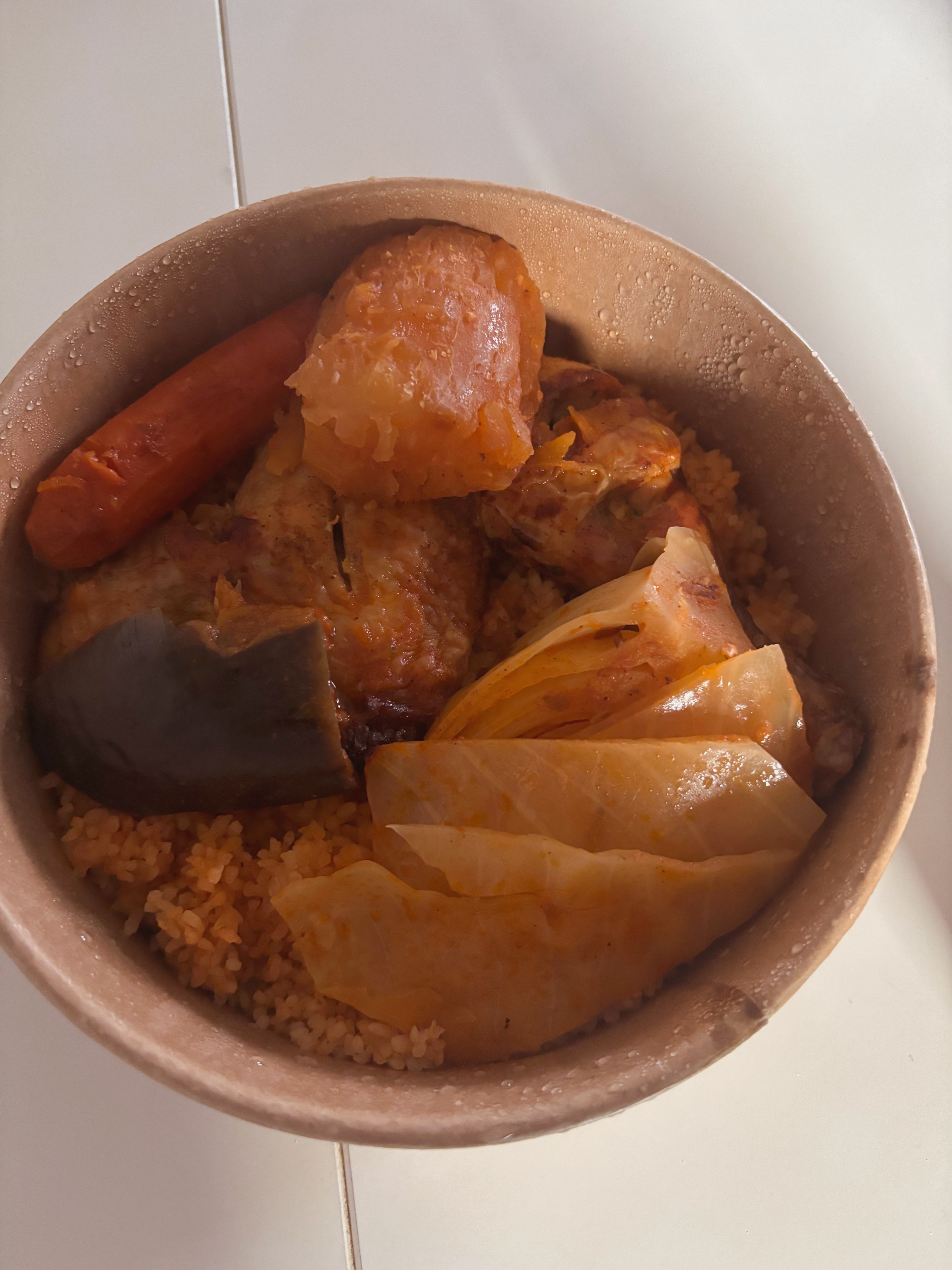 J’ai commandé un tchep au poulet et des bananes plantains dans ce restaurant. Le livreur était au top ! Très souriant. Les plats étaient très bien présentés et sentaient super bons. Les bananes plantains avaient le goût de la banane plantain ( je dis ça parce que certains font des bananes dans une huile qui est réutilisée 100 fois et c’est dégueu ). Le tchep …. C’était une DINGUERIE ! Un des meilleurs que j’ai mangé !! Franchement chapeau ! Et merci merci MERCI !!!
