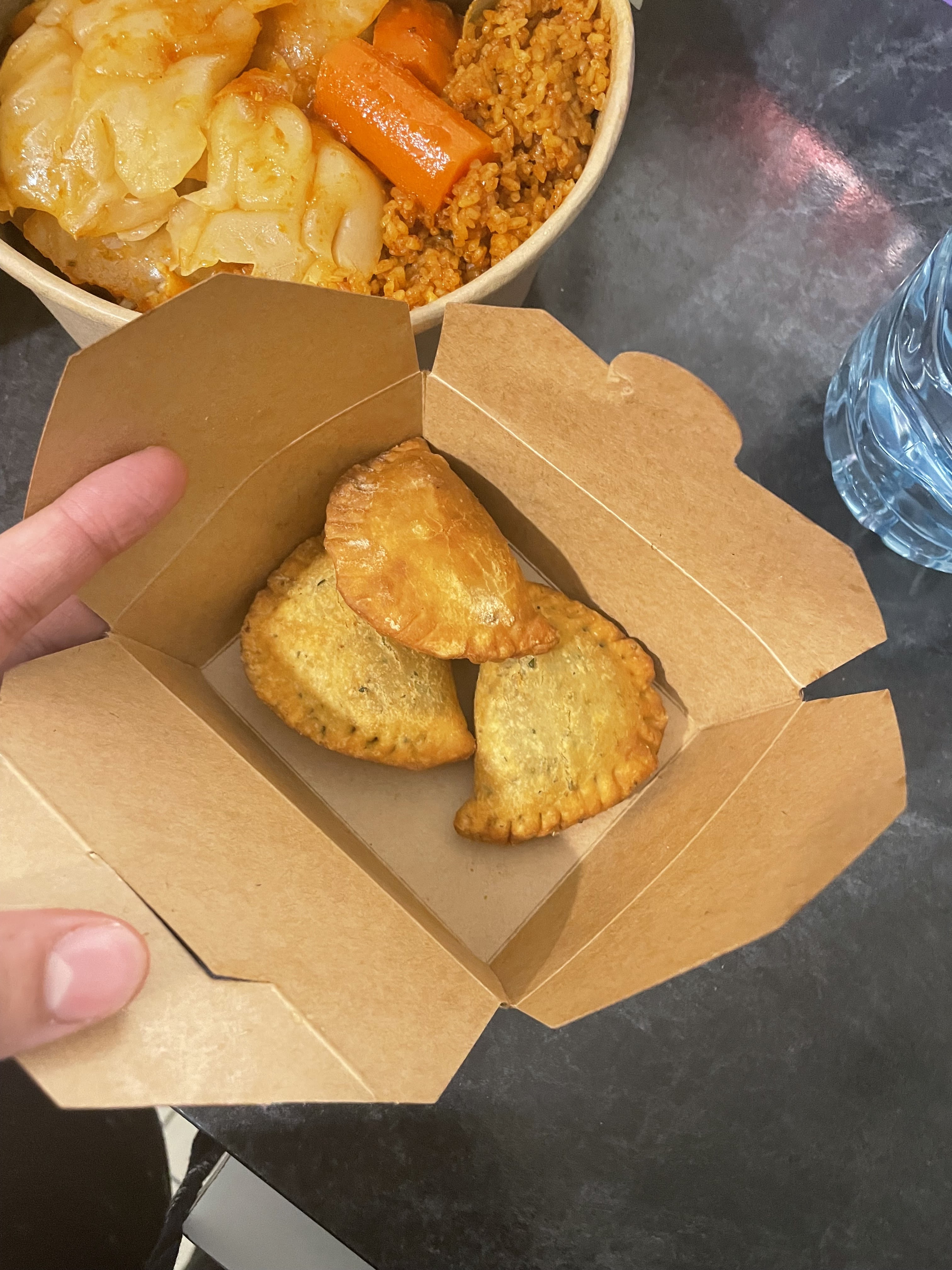 J'ai commandé à emporter des pastels au thon, un mafé et un thieb et le tout était très bon on s'est régalé. Malheureusement, je suis un peu dégoûtée parce que le serveur a oublié de mettre les boissons dans le sac (5€ aux oubliettes 😭), mais sinon le service est rapide et le personnel agréable.