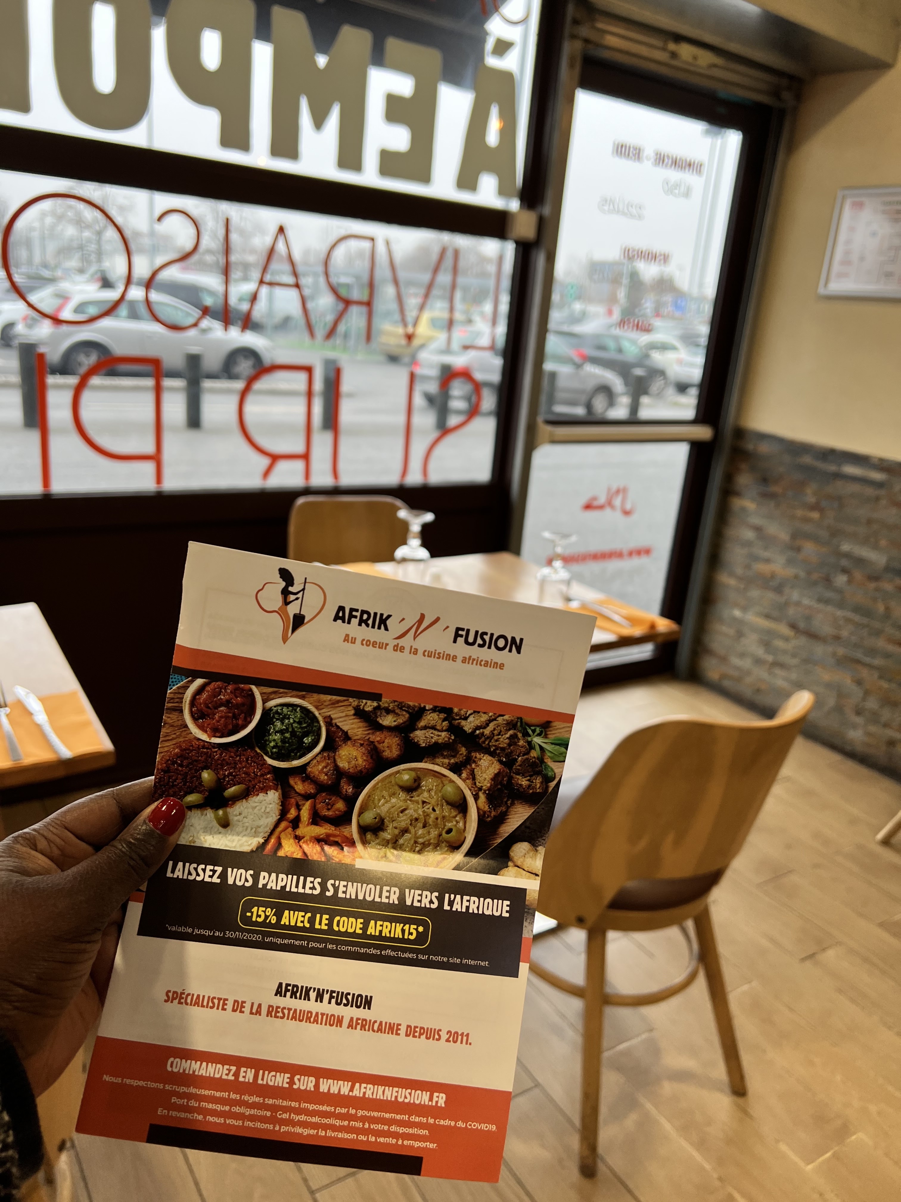 J’habite juste à côté du Afrik’N Fusion de Villetaneuse et j’en suis ravie car c’est un de nos restaurants préférés avec mon mari. Je peux vous conseiller pour de petits grignotages à partager l’assortiment mic mac qui vous permez de goutter un peu de tout (accros, alokos, samoussa, pastels). Sinon en plat je vous recommande la formule de droite sur la carte (j’ai oublié le nom) avec le mélange de pleins d’assortiments (alokos, riz blanc et riz rouge). Ainsi que la viande d’agneau qui est juste EXCELLENTE. Le bissap est aussi très bon et le personnel vraiment super. Ils glissent de petits -10% sur votre note qui font très plaisir quand vous vous en rendez compte et qui vous donne encore plus envie de revenir !