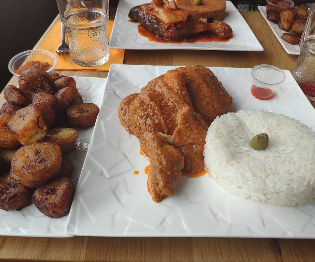 Poulet yassa très bon mes manque de sauce ! Maffé poulet bof pas le meilleur que j’ai pu manger et pareil manque de sauce Mettez moins de riz à se moment ou rajouter de la sauce sinon c sec ! Jus de bissap bon mes pareil pas le meilleure