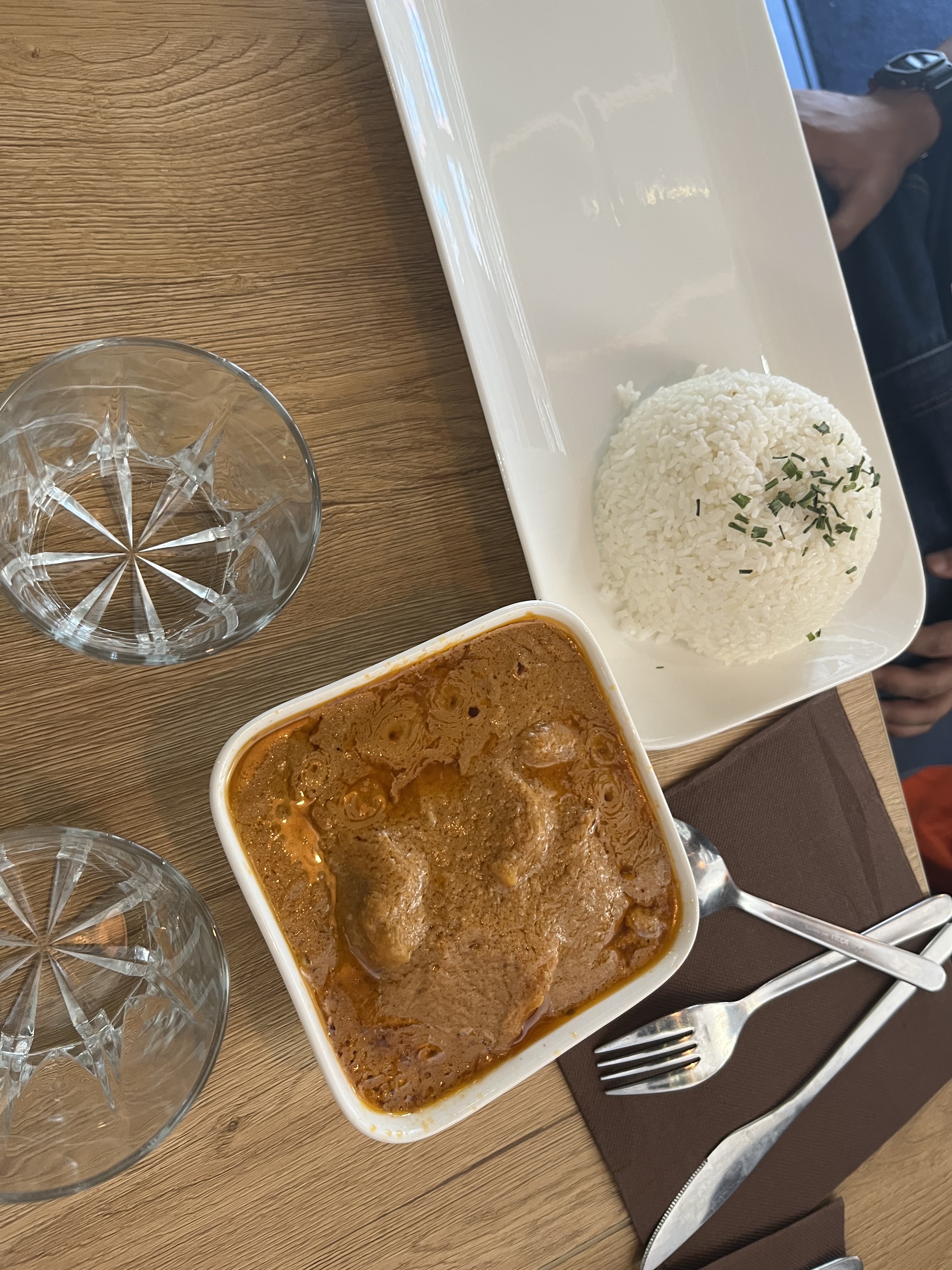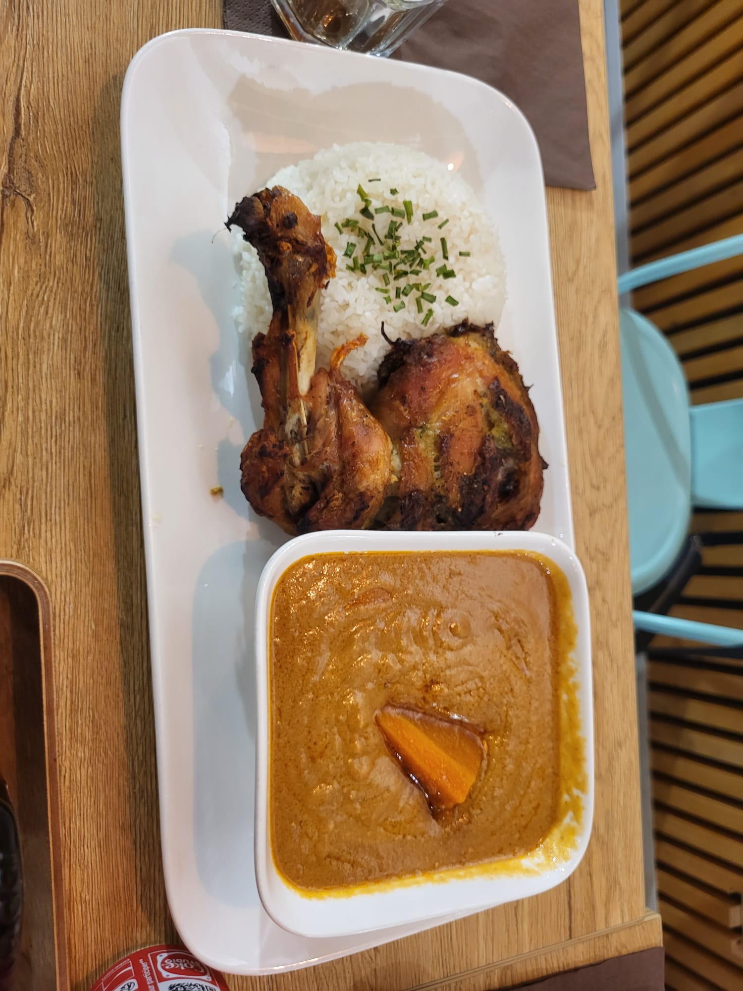 Le riz manquait de cuisson, le poulet n'était pas du tout frais il datait au moin de la veille. Très déçue