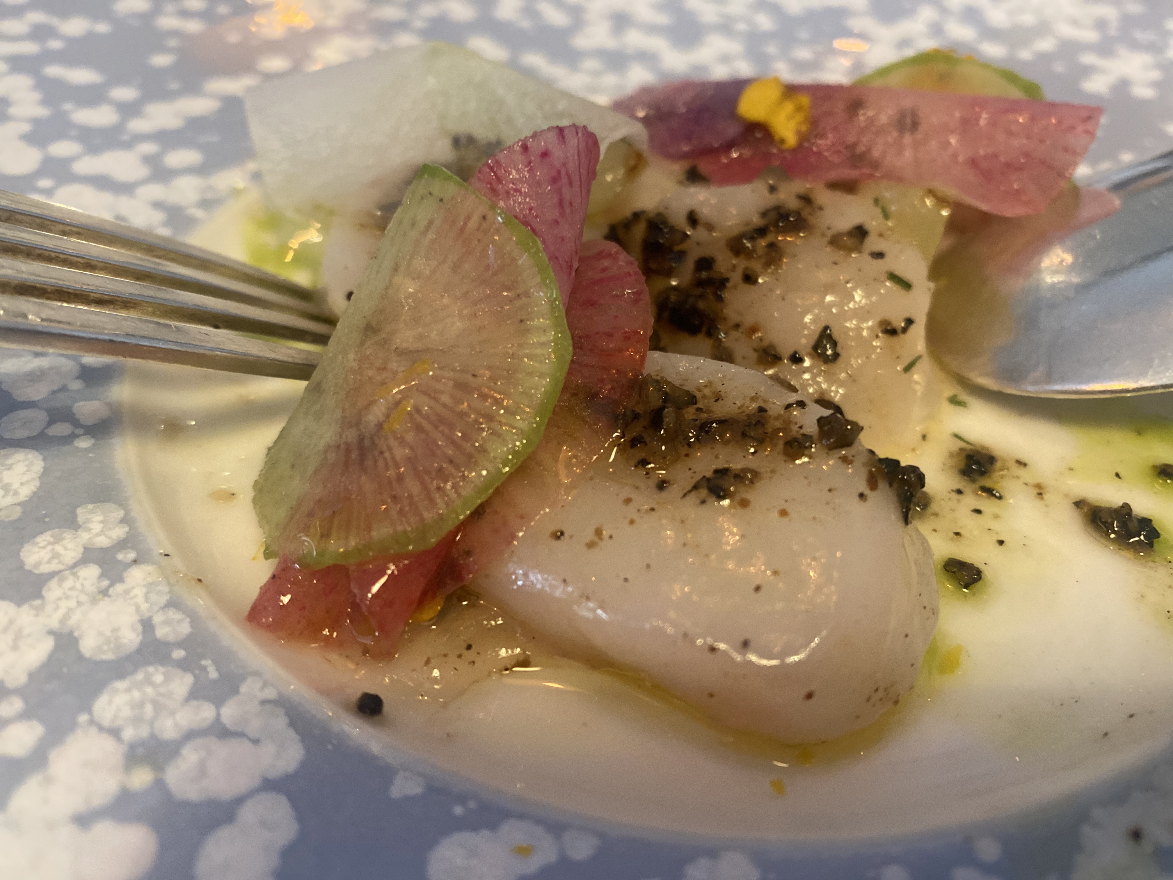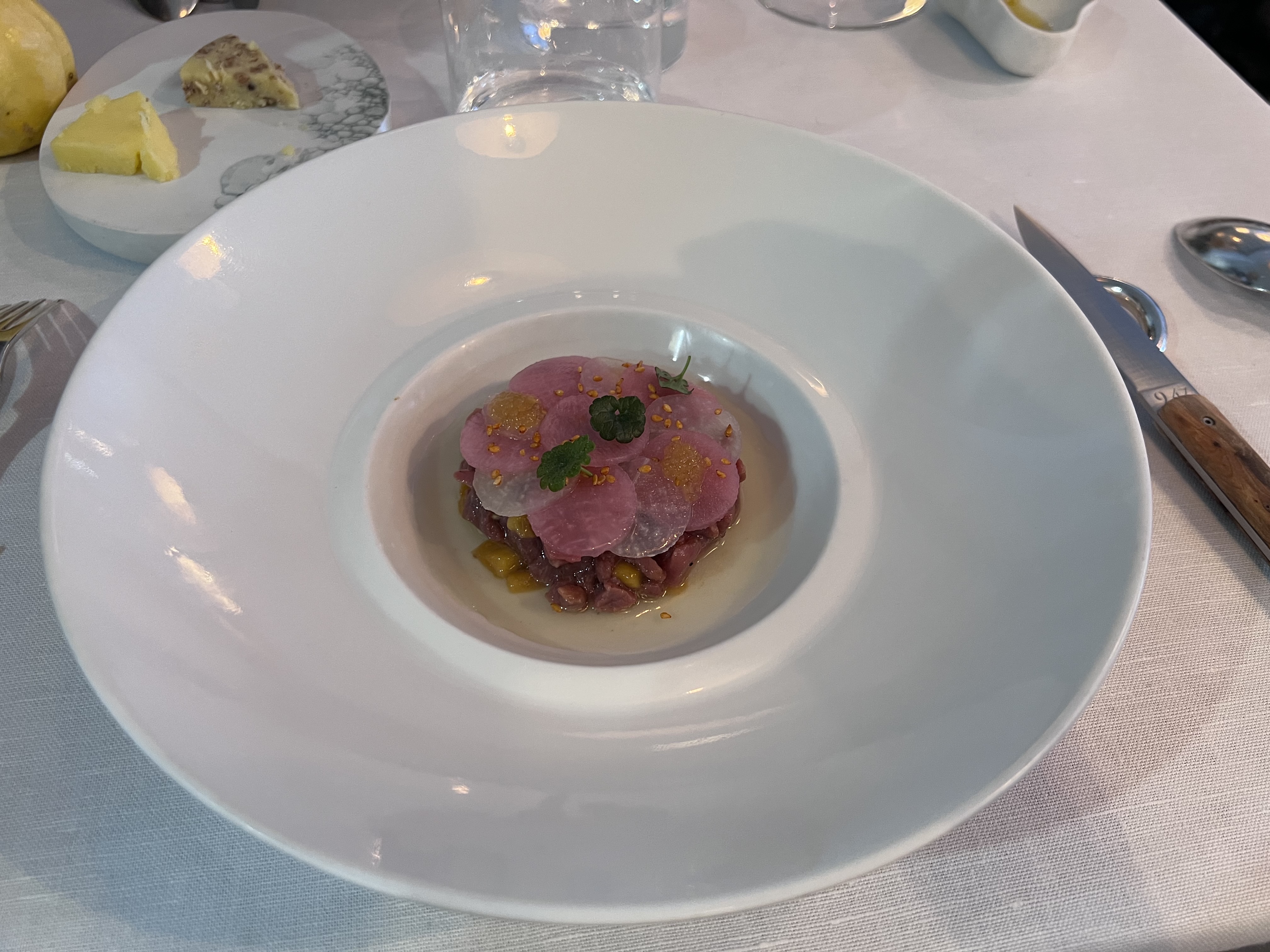 Une vraie valse d'émotions du chèvre de Touraine avec des betteraves et noisettes au tartare de saint Jacques et son citron confit pour finir sur des baies de poivre de Taïwan sur un sorbet banane. Sans parler des vins, les blancs notamment!