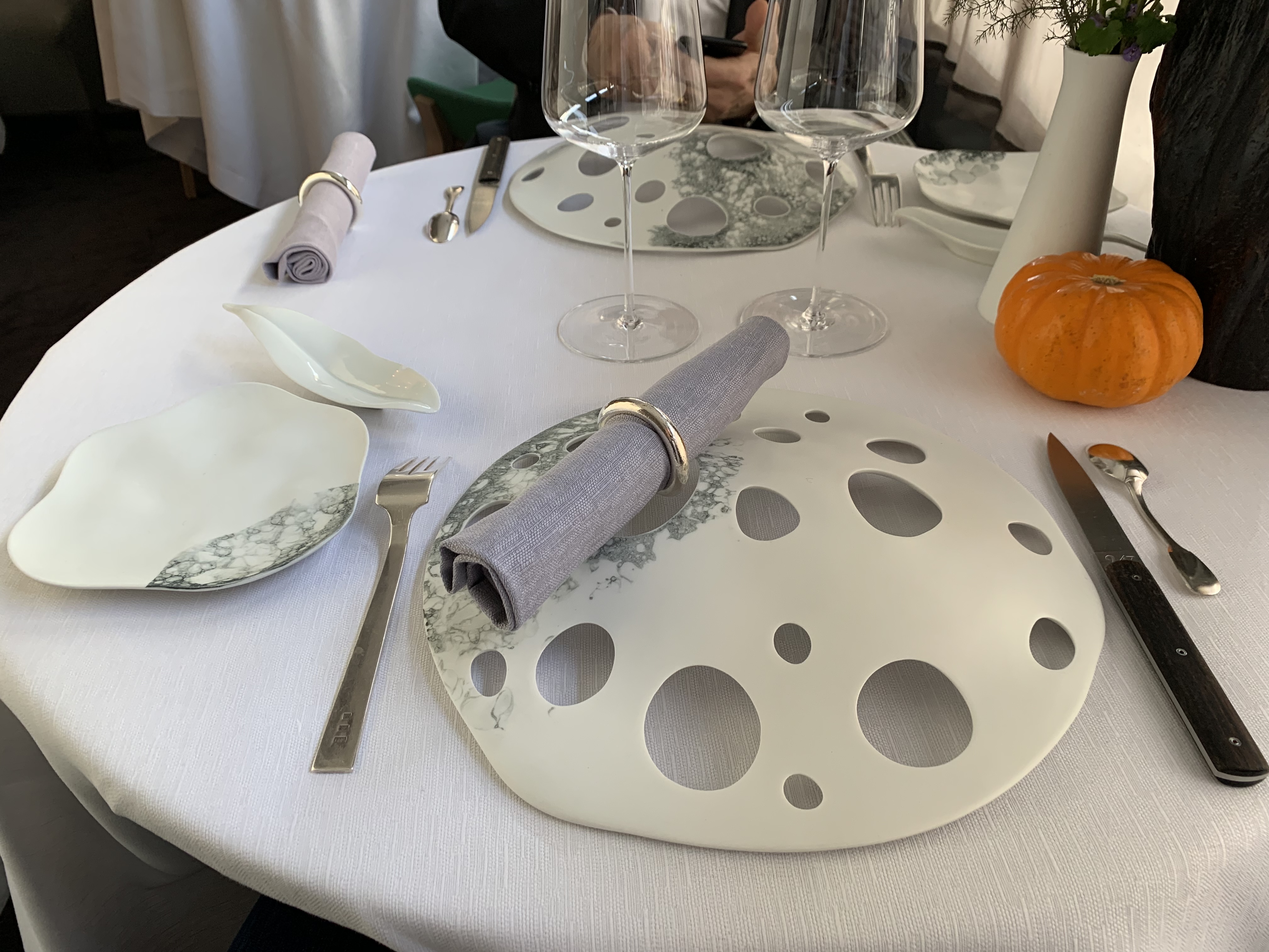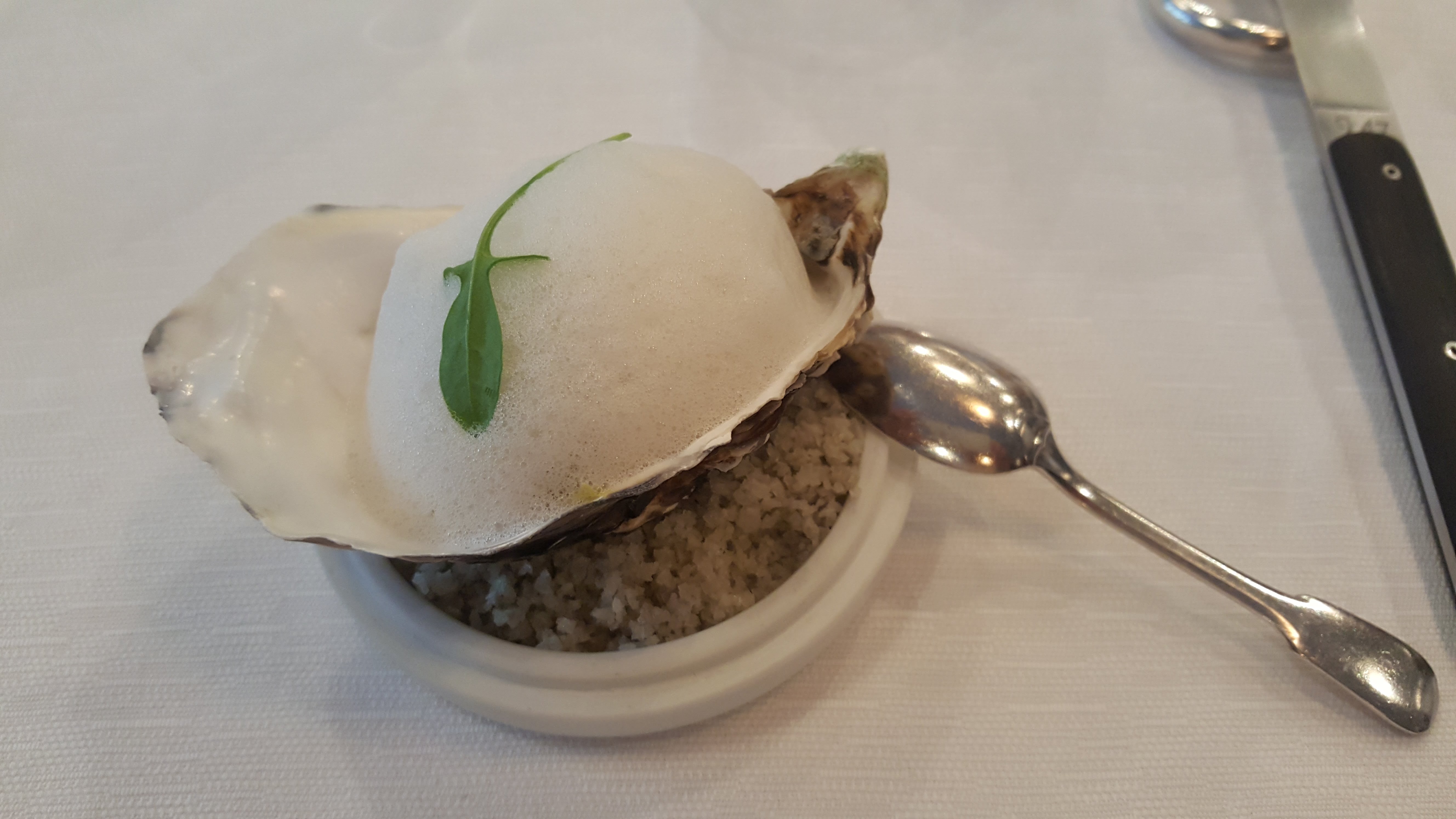 L'agapé se veut très chic et très sobre. Peu de tables, autant de serveurs que de clients. Au niveau de l'assiette : Amuse bouché meringue au potiron, crème de cantal : ça part bien. Très bon, crémeux de potiron dans la meringue, c'est frais et goutu. Ensuite, salade italienne sur un coulis d'ail des ours. Très bon aussi en revanche on commence à tomber dans le travers du resto : très salé au niveau du coulis. Suit la betterave et son crémeux saint maure : délicieux, sans doute la meilleure assiette de tout le repas, mais encore très salé. Le plat : lieu sur coulis de chou fleur. L'assiette la moins réussie. Le poisson est cuit à la perfection mais l'assiette est un peu brouillonne dans sa construction et encore une fois très très salée. Je n'aime pas trop le choix fleur et je l'ai lange, n'en sentant plus le goût tellement il y avait de sel. Je sais bien que cela exhauste le goût mais faudrait voir à ne pas abuser. En dessert un mont blanc avec quenelle de glace aux agrumes.. léger pour finir le repas. Pas mauvais mais sans grand intérêt. La présentation, avec de grandes feuilles dedl caramel n'est pas super pratique a manger. On finit par deux mignardises du niveau de celles qui avaient ouvert le repas, un financier au citron et un mendiant chocolat noir. Accord mets vin intéressant et judicieux. Alors pourquoi quatre étoiles seulement ? Le service n'est pas parfait, certains couverts ne sont pas changés, en particulier les couteaux après l'ail des ours. Ils sont verts fluos mais on les laisse. Ensuite parce qu'ils abusent du sel. Enfin parce que malgré le prix et le nombre de plats, je sors de là en ayant encore faim. Globalement une bonne expérience, mais pas au niveau de la promesse. Dommage.