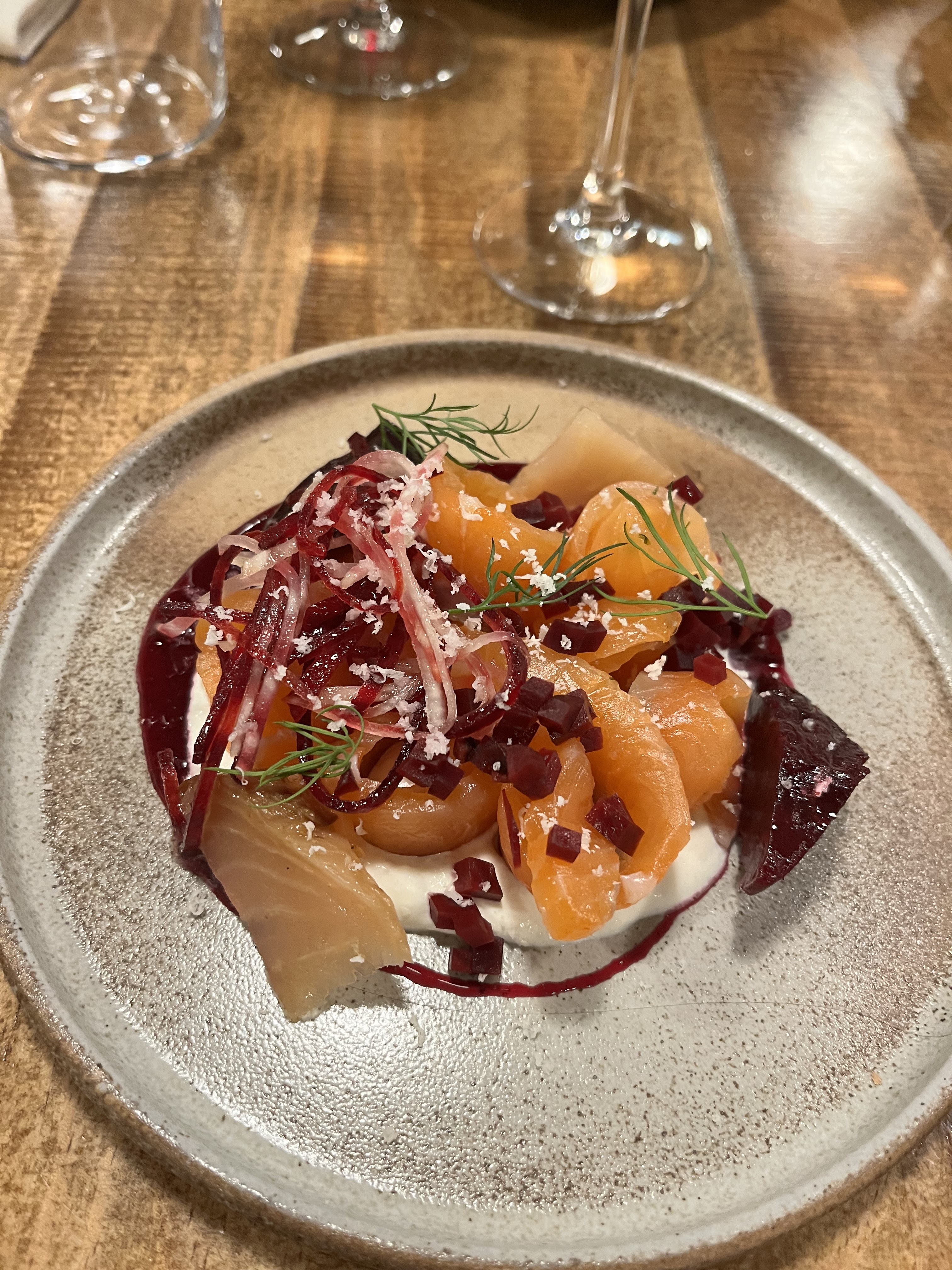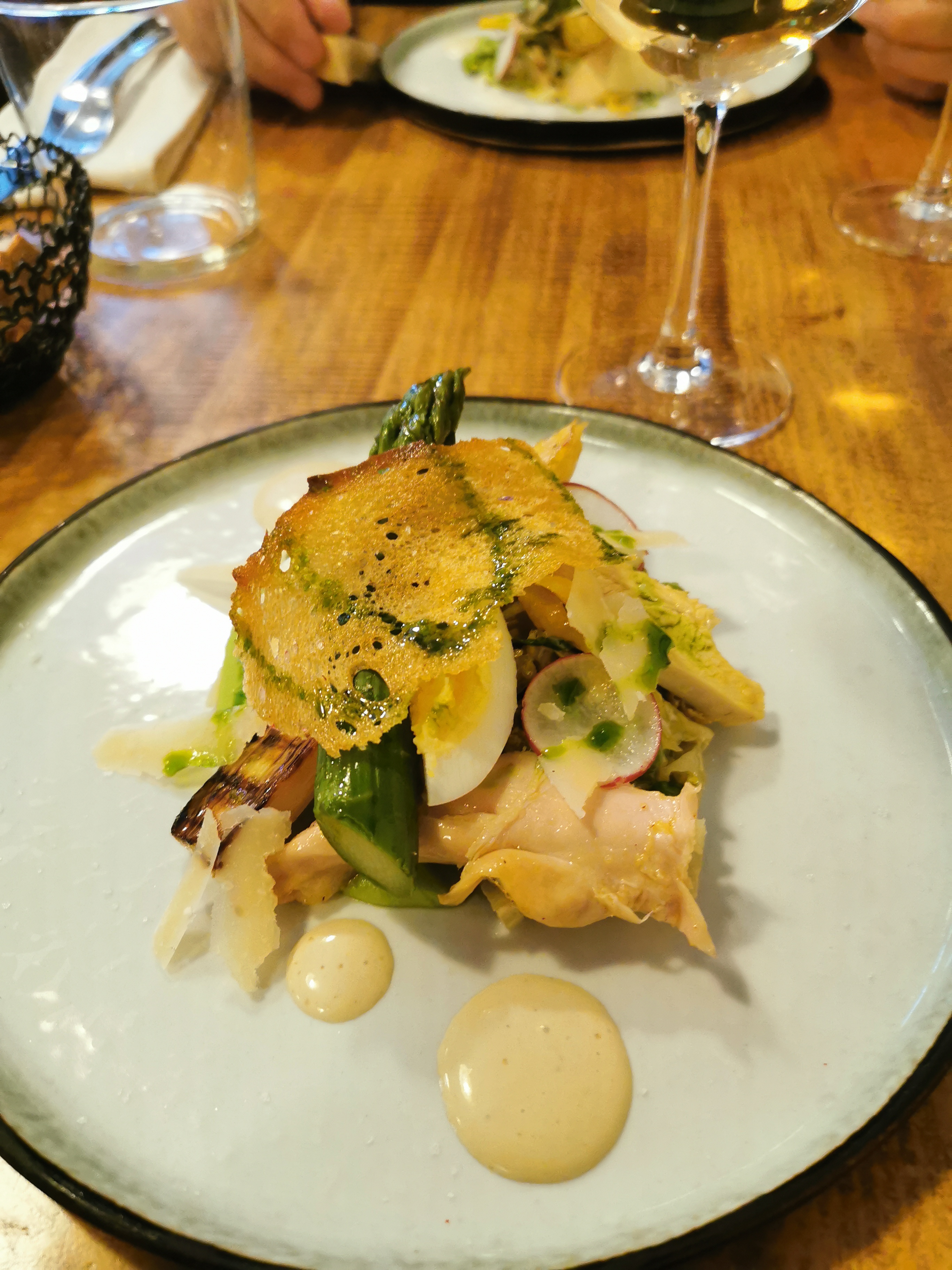 Surprise, surprise, le joyau caché. Waouh Waouh Waouh. Excellent service, excellentes recommandations de vins, cuisine extrêmement bonne. Tous les ingrédients ont été parfaitement sélectionnés en fonction de la saison. C'était vraiment exceptionnel. Les petits pois, les jeunes graines de haricots, les morilles, la rhubarbe et les fraises, tout va à l'essentiel. La volaille aux morilles était un moment fort mais Pavlova l'a dominé. La poussière de poivre rose l'a pimpé. Et aussi un rapport qualité-prix parfait. L'ambiance a obtenu 5 étoiles parce que je me sentais très à l'aise. J'aime quand on sent la passion dans un restaurant, et c'est le cas ici. Merci