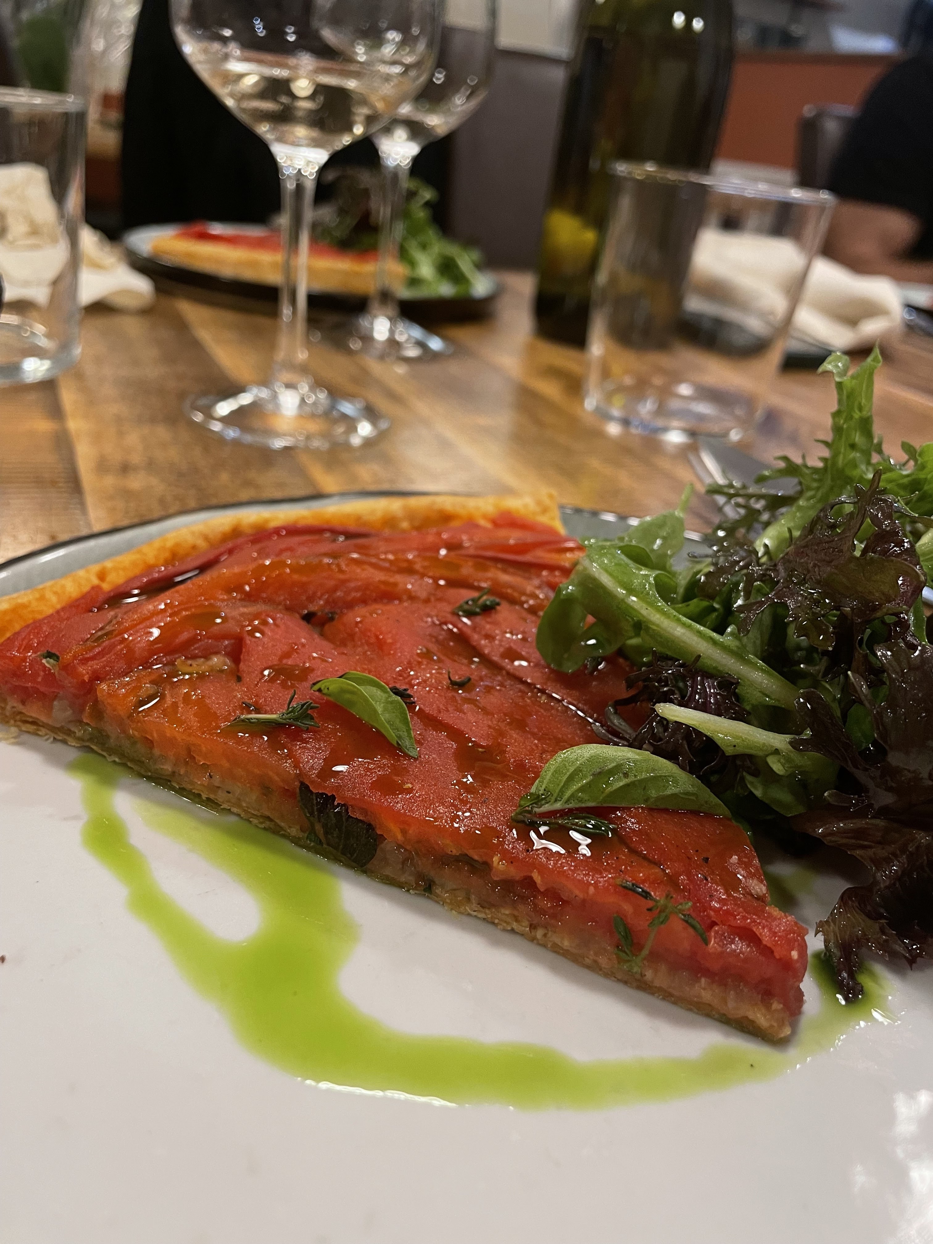 Super accueil, bien conseillé sur les vins et on y mange très bien. J’ai beaucoup aimé la tarte à la tomate, sans oublier le dessert au chocolat.