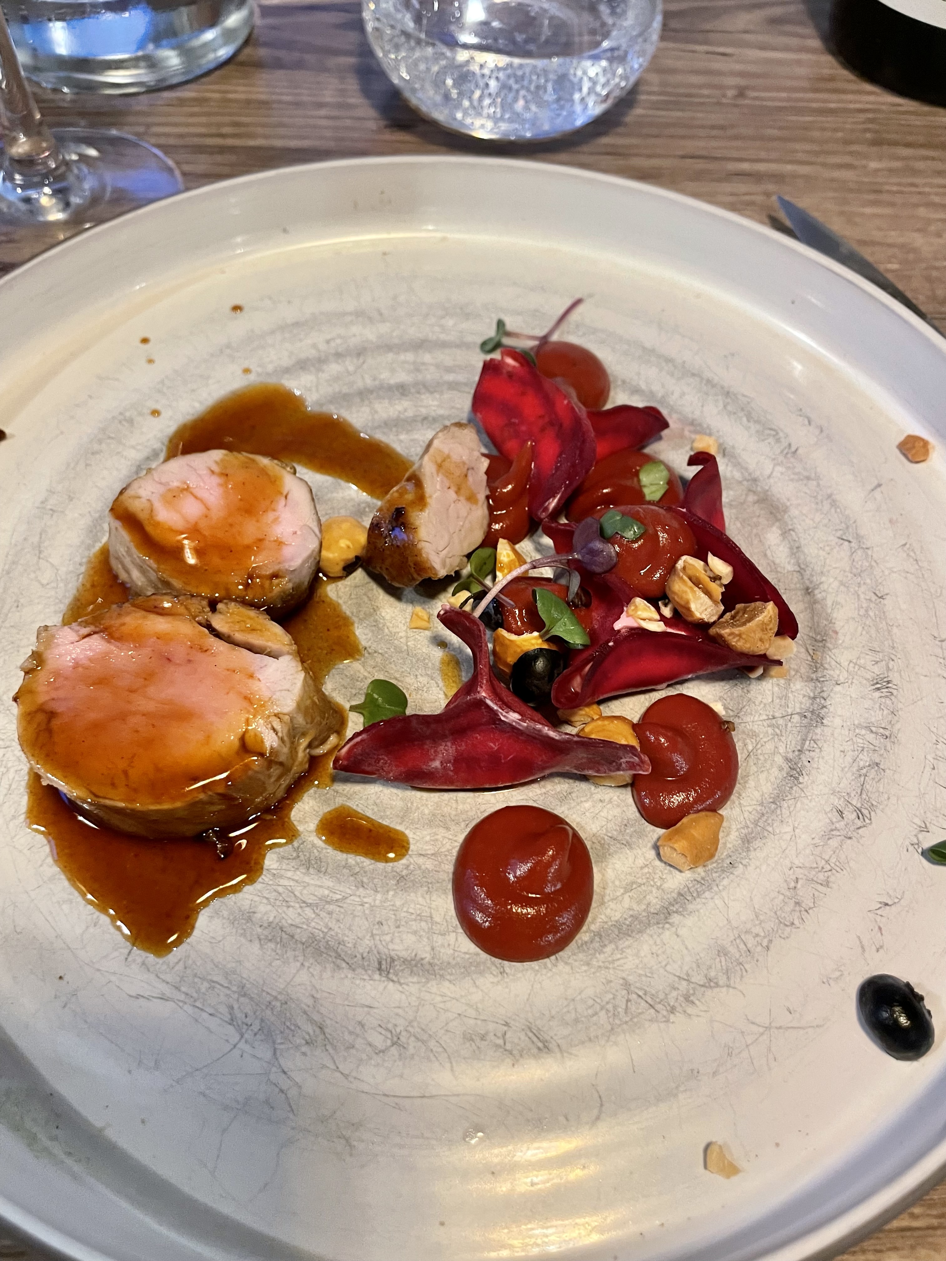 Petit restaurant par la taille. Accueil agréable. Nous avons pris le plus grand menu et heureusement car les portions sont toutes petites. L’entrée autour de la betterave était bonne mais manquait de peps. Le brochet était à peine perceptible dans une mousseline au chou fleur lui très présent. La poitrine de cochon excellente en cuisson longue. Le dessert au chocolat classique sans plus. Nous avons passé un bon moment mais je m’étonne de l’engouement pour ce restaurant très bon mais dont les plats manquent quand même un peu de gourmandise, d’originalité et de graphisme