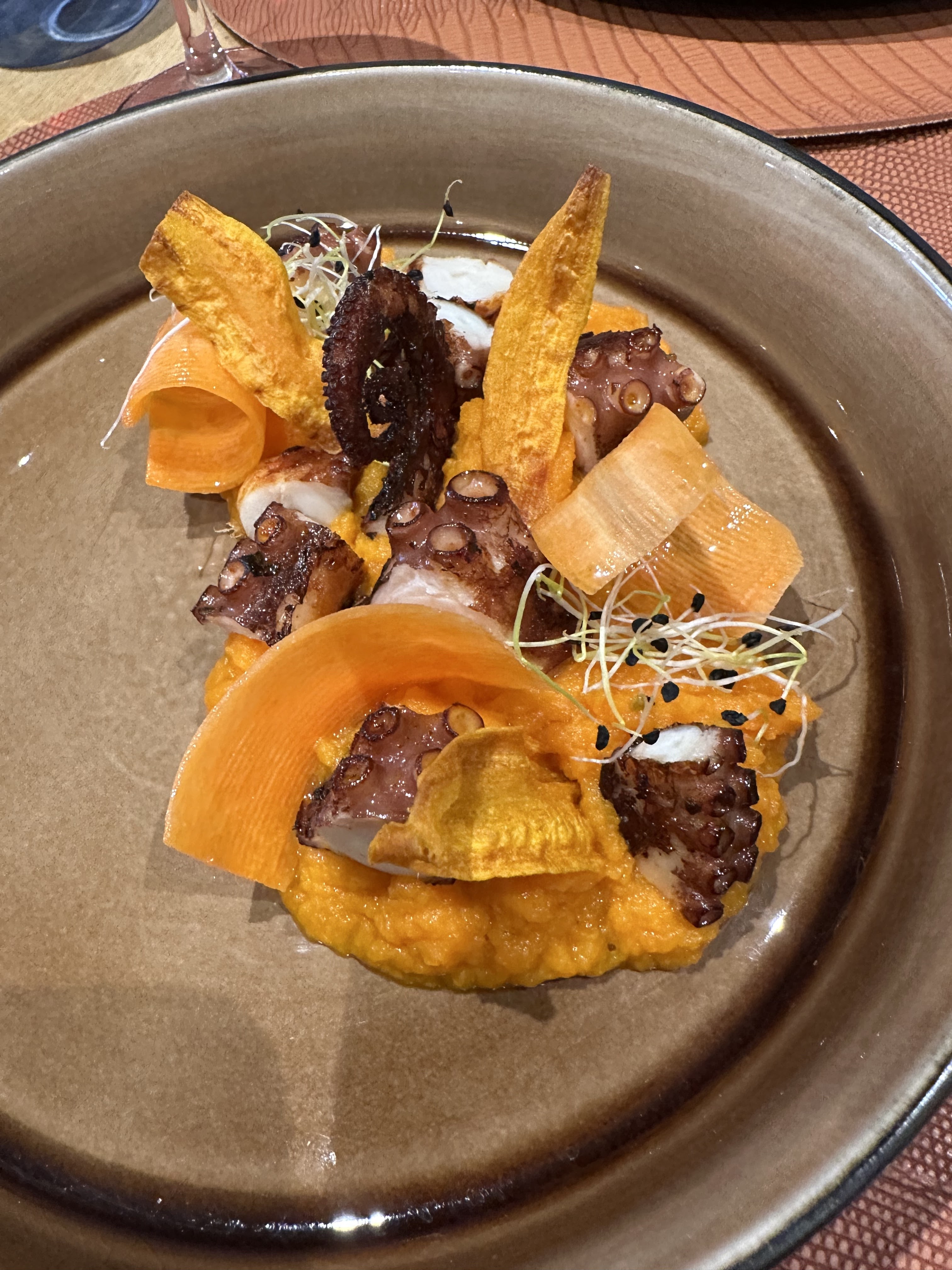Alors il faut y aller le dessert autour de l Orange une dinguerie et le poulpe grillé juste parfait