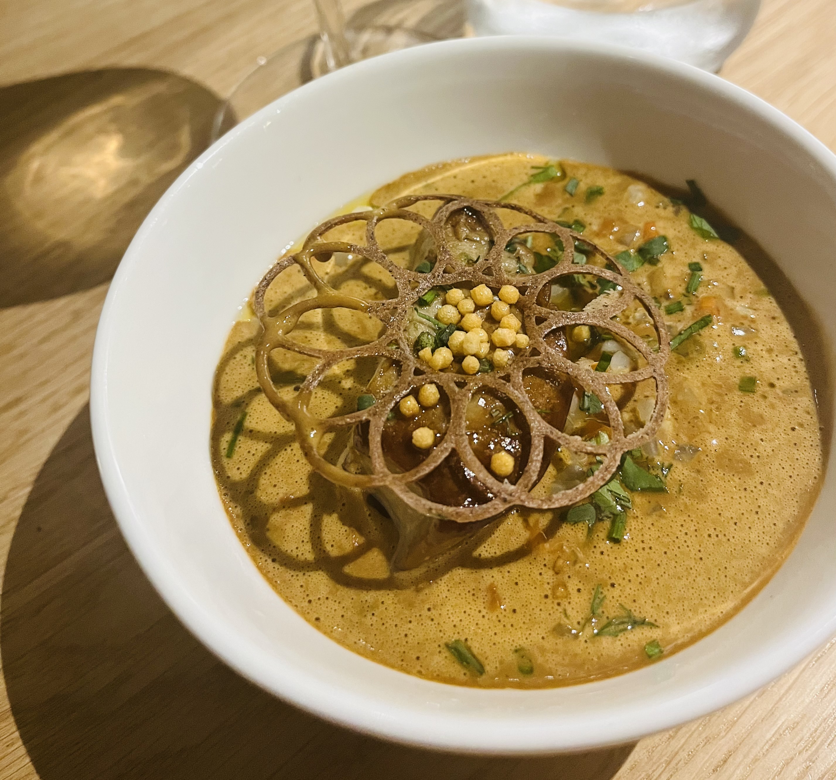 Une cuisine fantastique, des saveurs plein la bouche, des textures multiples, un service très agréable, des assiettes comme des tableaux et un vin en adéquation. Les panneaux permettent d’isoler les tables et de pouvoir converser avec les autres convives en toute discrétion. Une très très bonne adresse qui va vite devenir incontournable. Ne tardez pas à y aller…