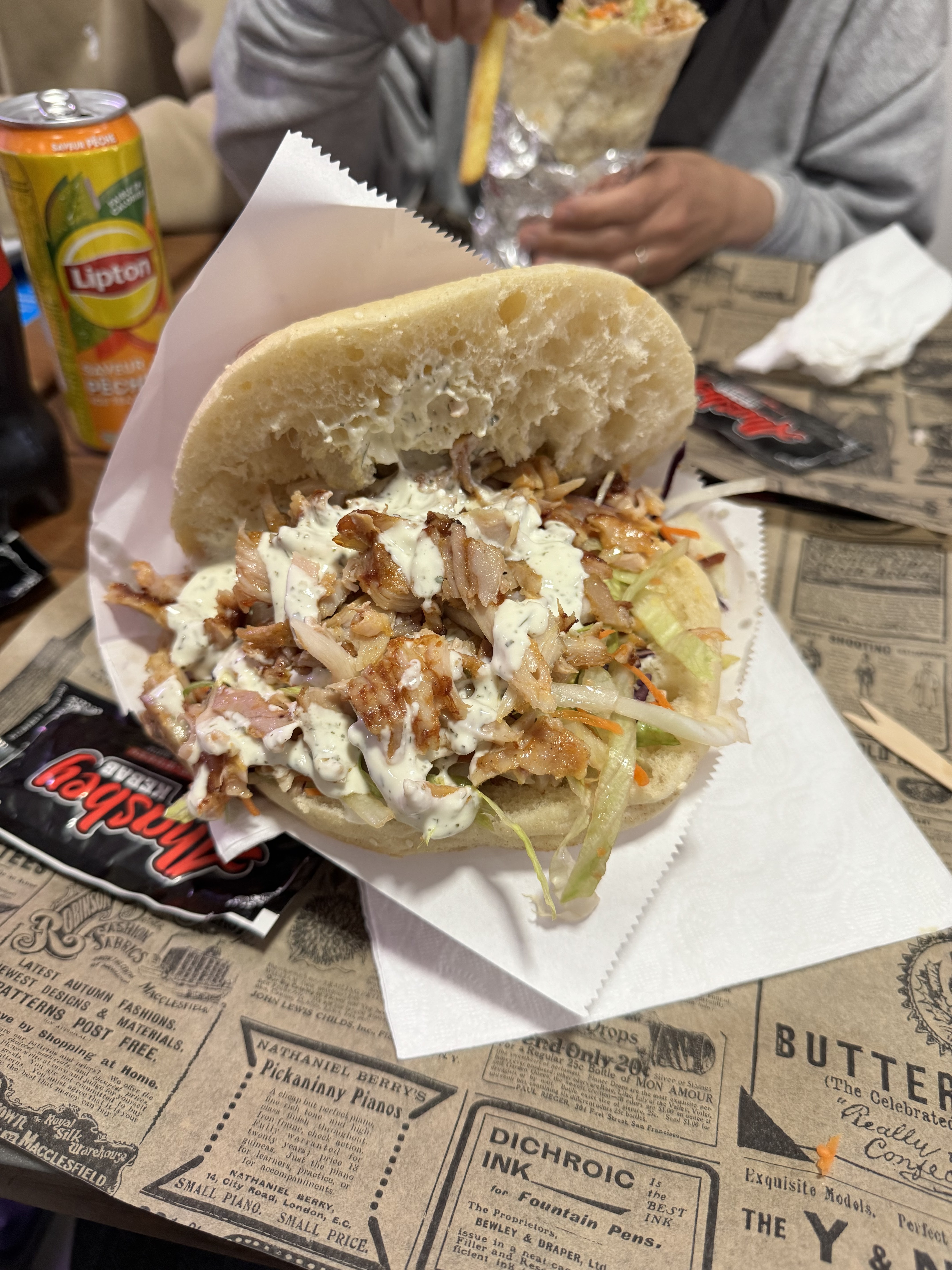 Souvent déçu des kebabs où il n'y a rien dedans et hyper gras ! Là, le prix est correct, et le kebab est COPIEUX avec des crudités qui ont un goût de crudités ! J'ai trouvé aussi le personnel (familial je pense) assez sympathique, je recommande.