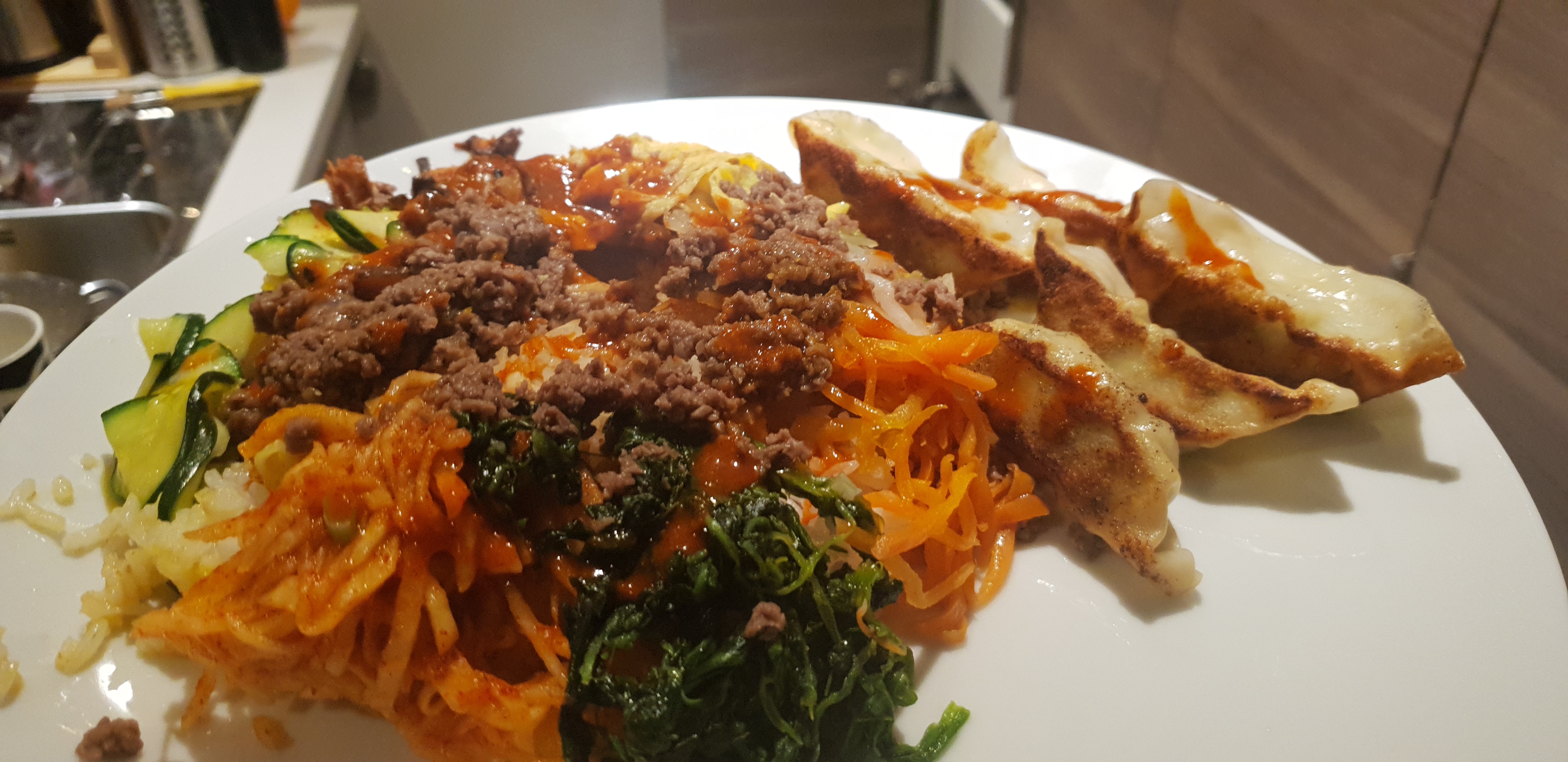 Bibimbap trop bon. Plat préparé sur le moment. Ambiance pas trop jolie, mais serveuse hyperaccueillante et sympa.