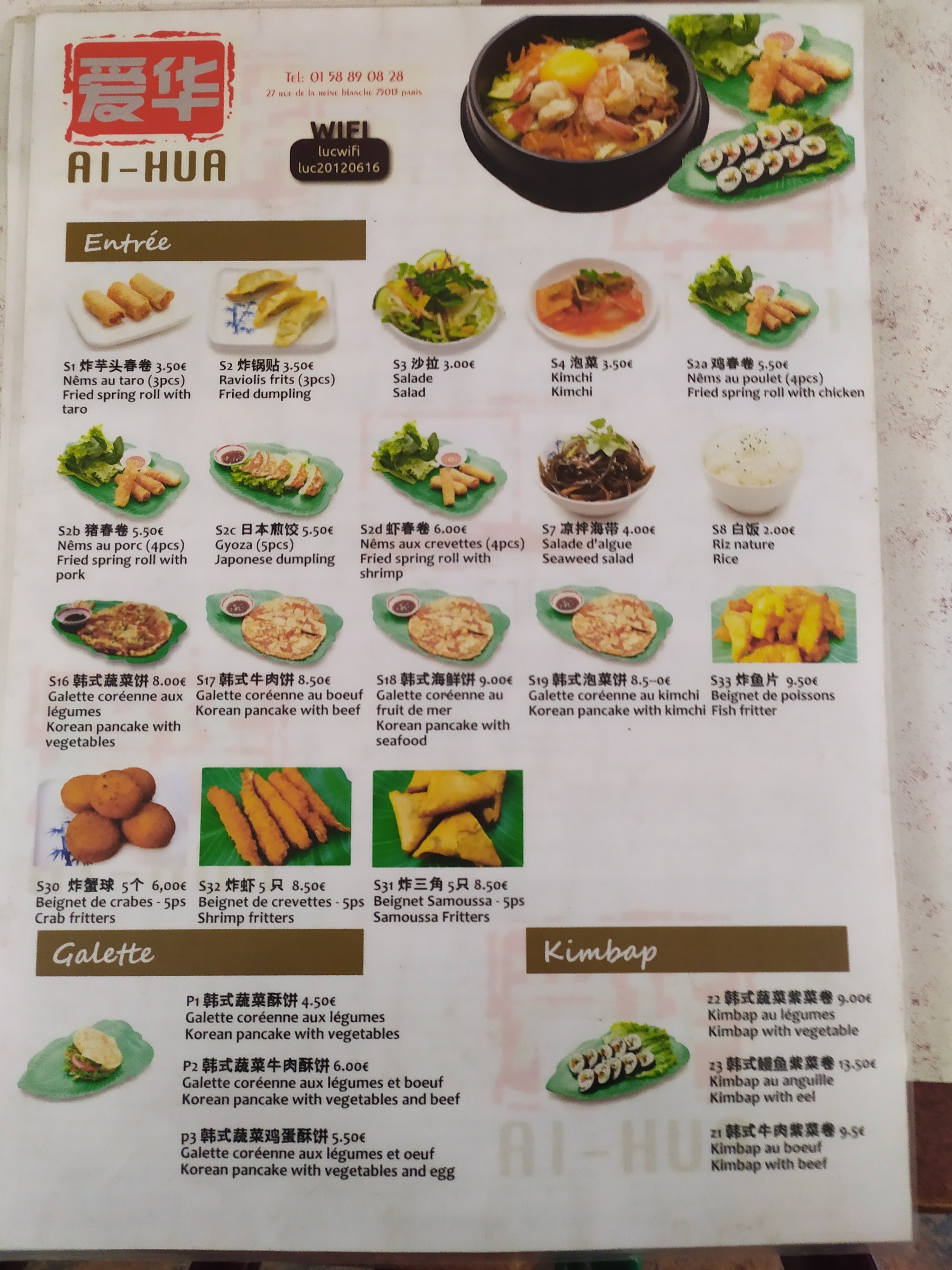 Kimbap et bibimbap très bon, et prix très raisonnable !!