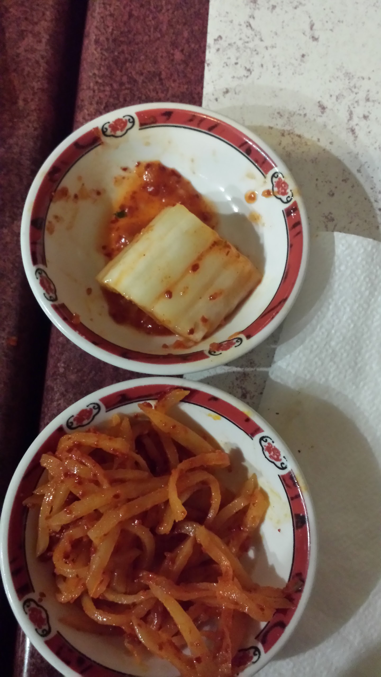 A emporter. Kimchi au goût bizarre qui m'a donné la diarrhée. Nems, moins bons qu'avant. Le cuisinier a changé ?