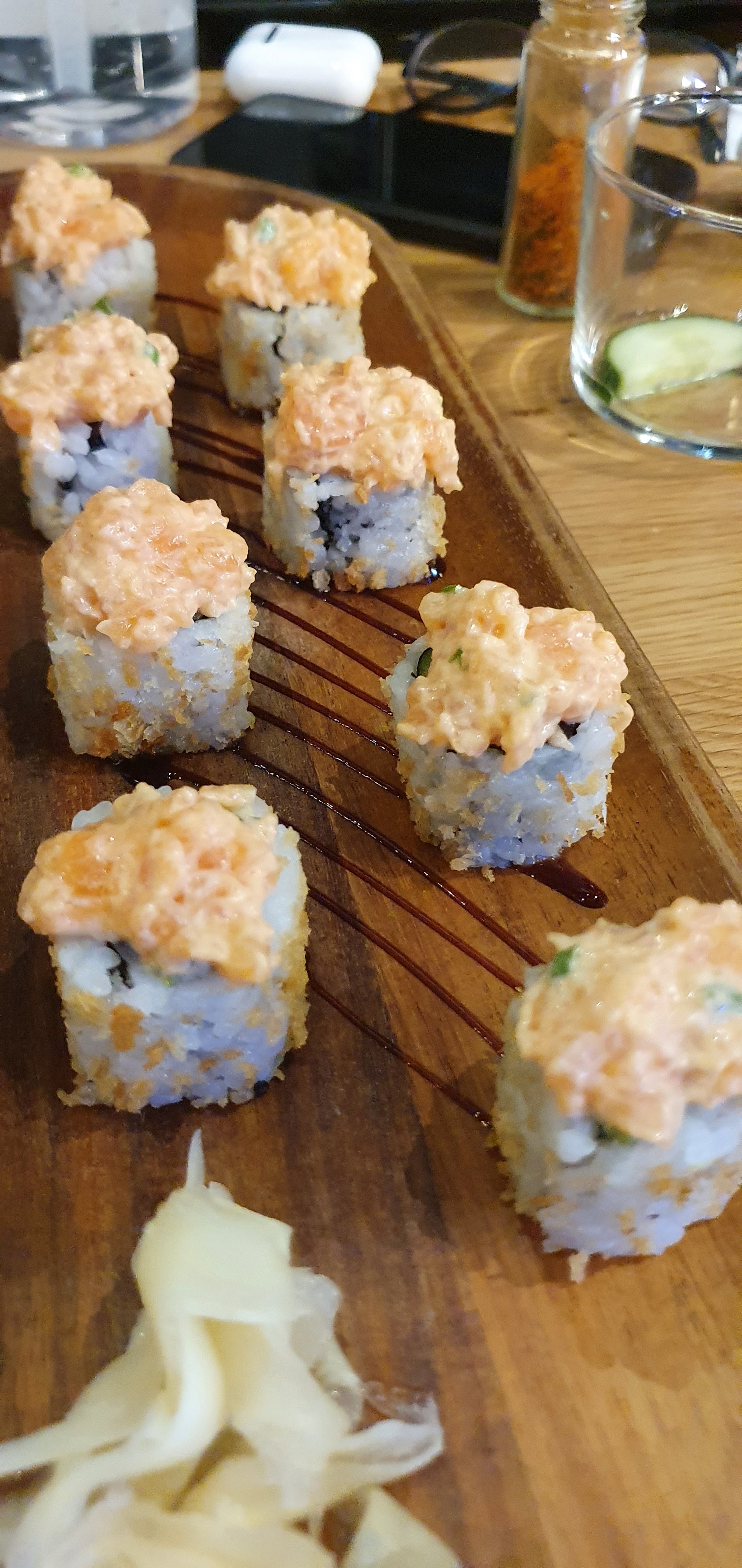 Ambiance agréable, service efficace, très bons plats et sushis. Je recommande.