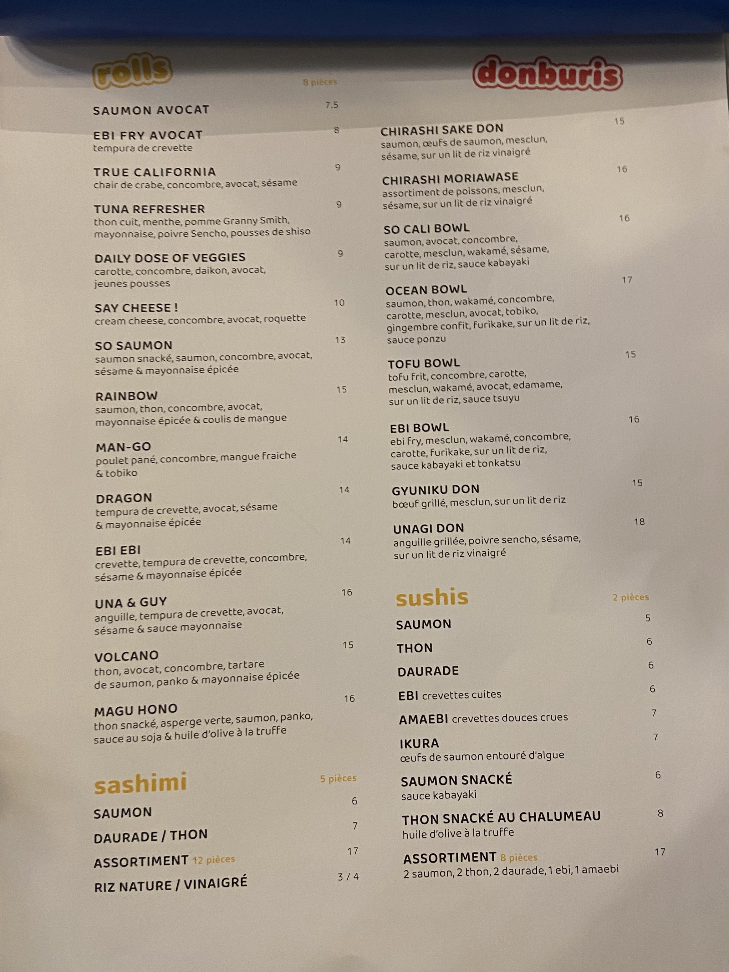 Assez cher mais très bon, avec une carte japonaise variée, sushis, sashimis, baos...
