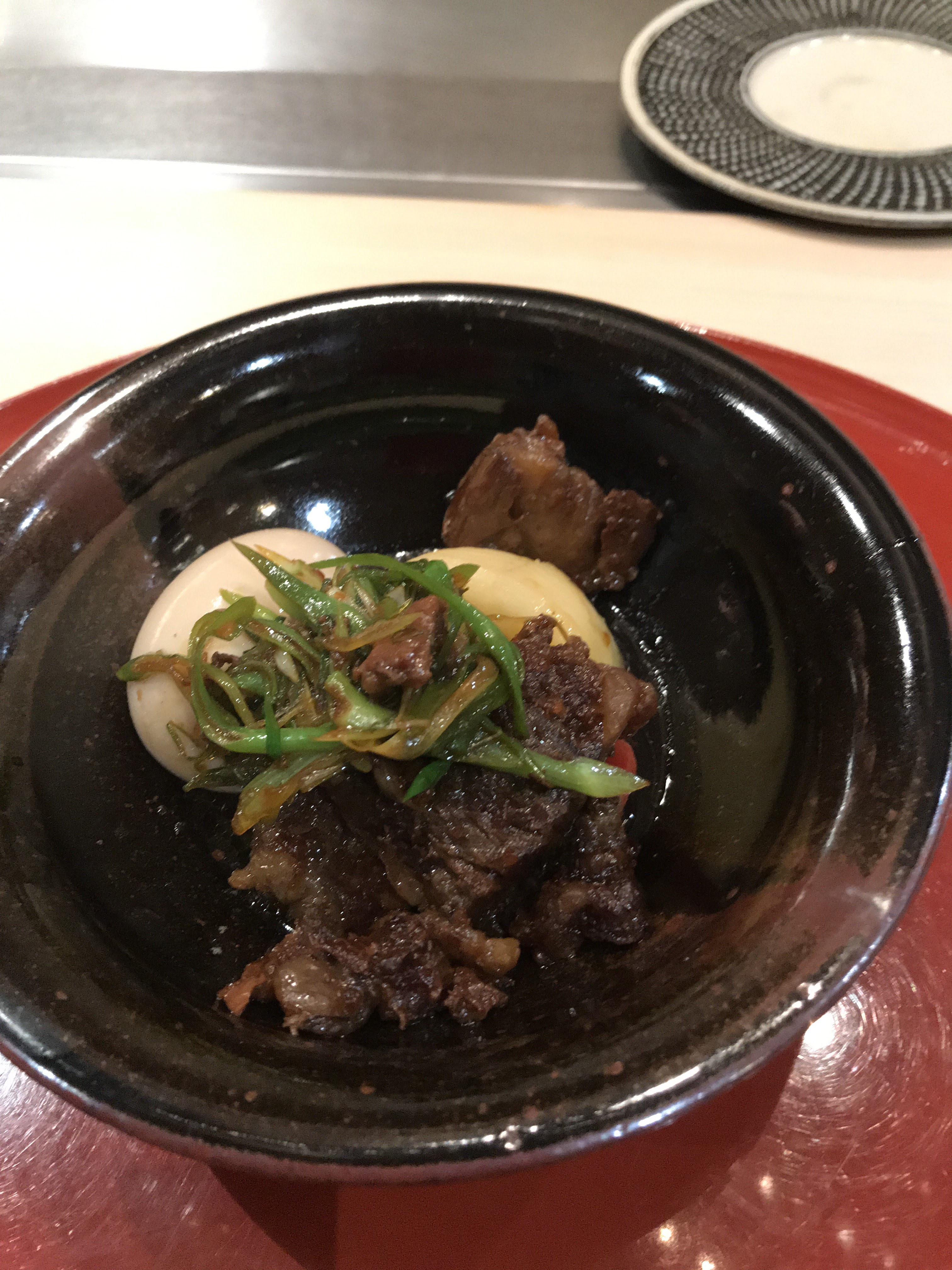 C'était la première fois que je visitais ce restaurant car il m'avait été présenté par un restaurant de Kyoto et j'ai pu déguster une délicieuse cuisine japonaise grâce au travail minutieux de l'hôte. Bien sûr, le sashimi est meilleur au Japon, mais pouvoir manger autant de nourriture à Paris est satisfaisant. La soupe aux truffes blanches, le concombre mariné, la pince de homard et le navet miso étaient un peu salés. Sashimi de bar et pétoncles, bol de riz mariné au thon, frites, Homard teppanyaki, tofu bouilli, salade, thymus de veau, steak sandwich à la truffe, riz à l'ail & soupe miso