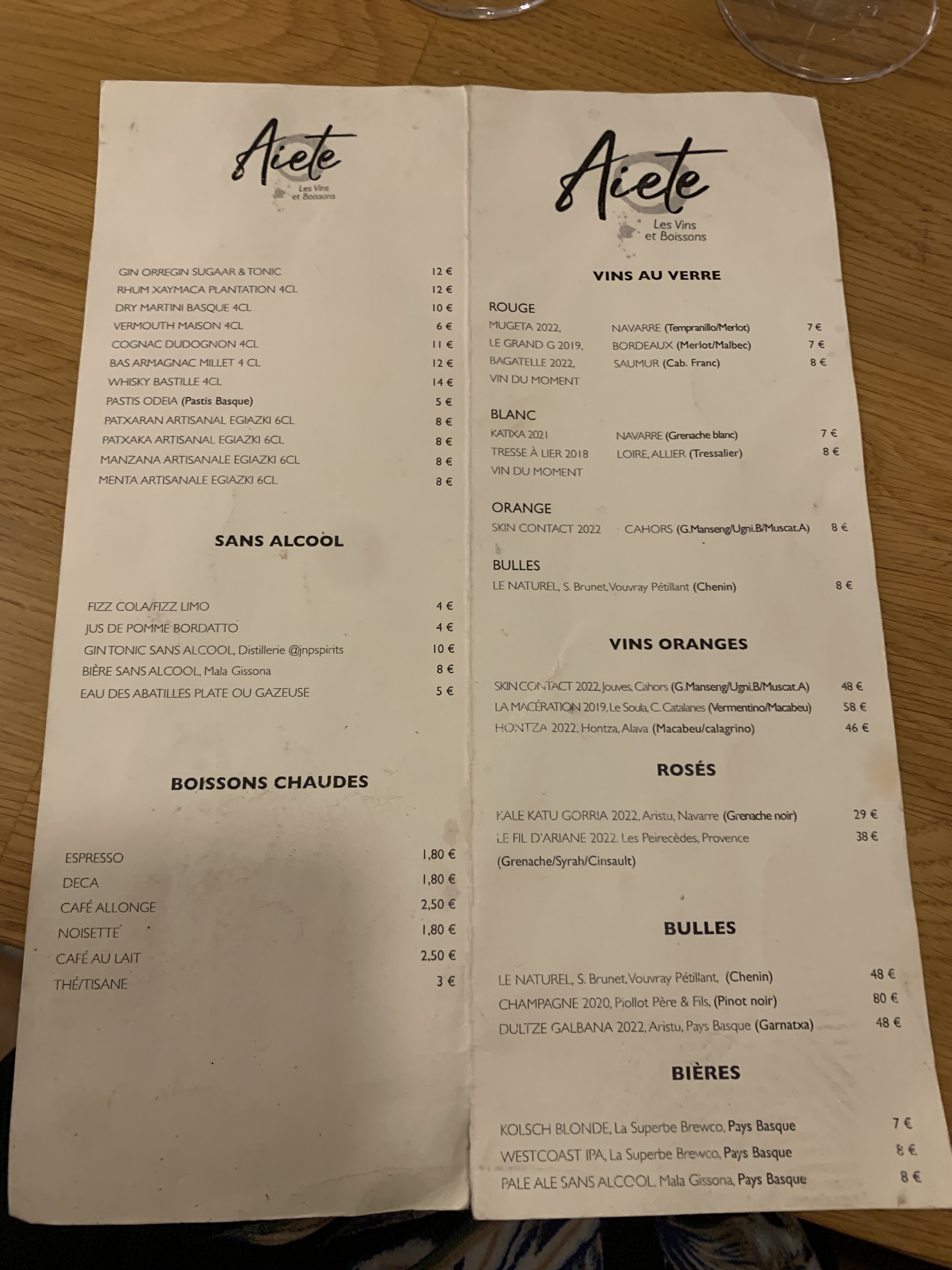 Très bonne expérience chez Aiete. Le lieu est sympa et convivial avec un accueil des plus chaleureux. Les plats sont de saison et tout bonnement excellent ! Rien à redire !