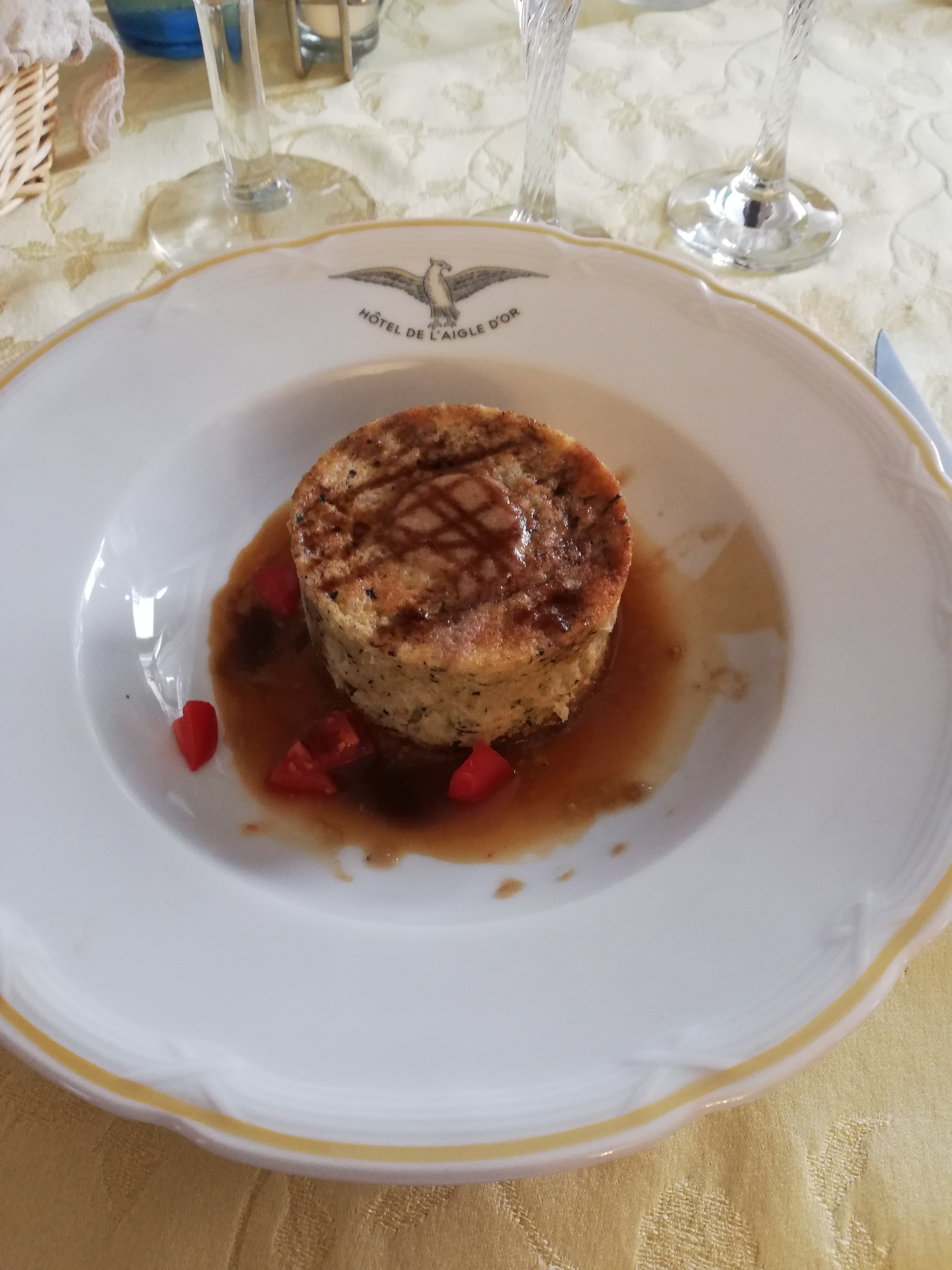 L'aigle n'est plus en or... Chambre simple avec dessus de lit tachés par de la javel et matelas à revoir. Petit déjeuner trop cher pour un morceau de pain décongeler et un pâle croissant ,même si vous avez des barquettes de confitures , des biscottes et des jus de fruits à volonté . Repas du soir correct. En bref Dommage pour un lieu qui a du potentiel.