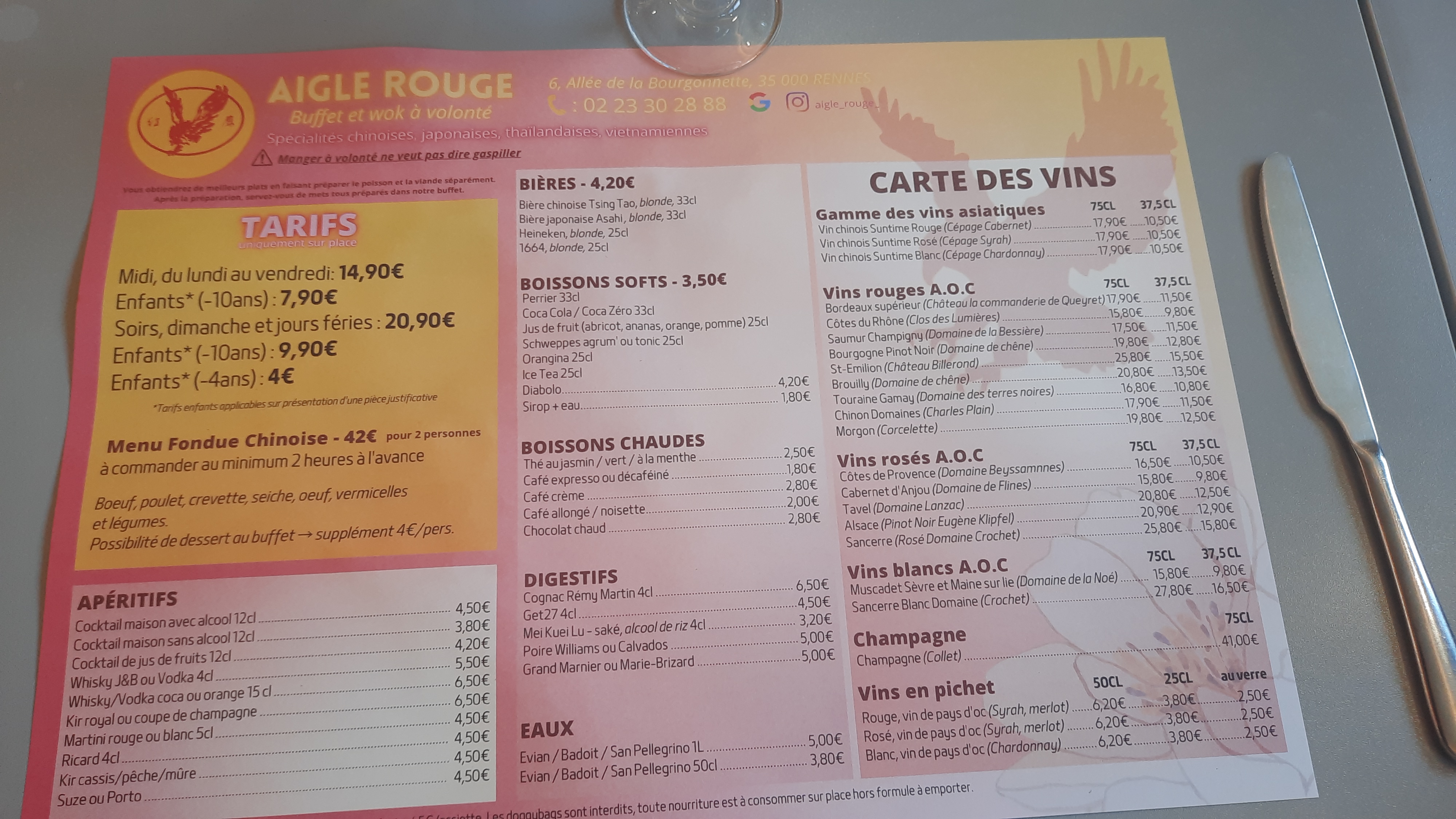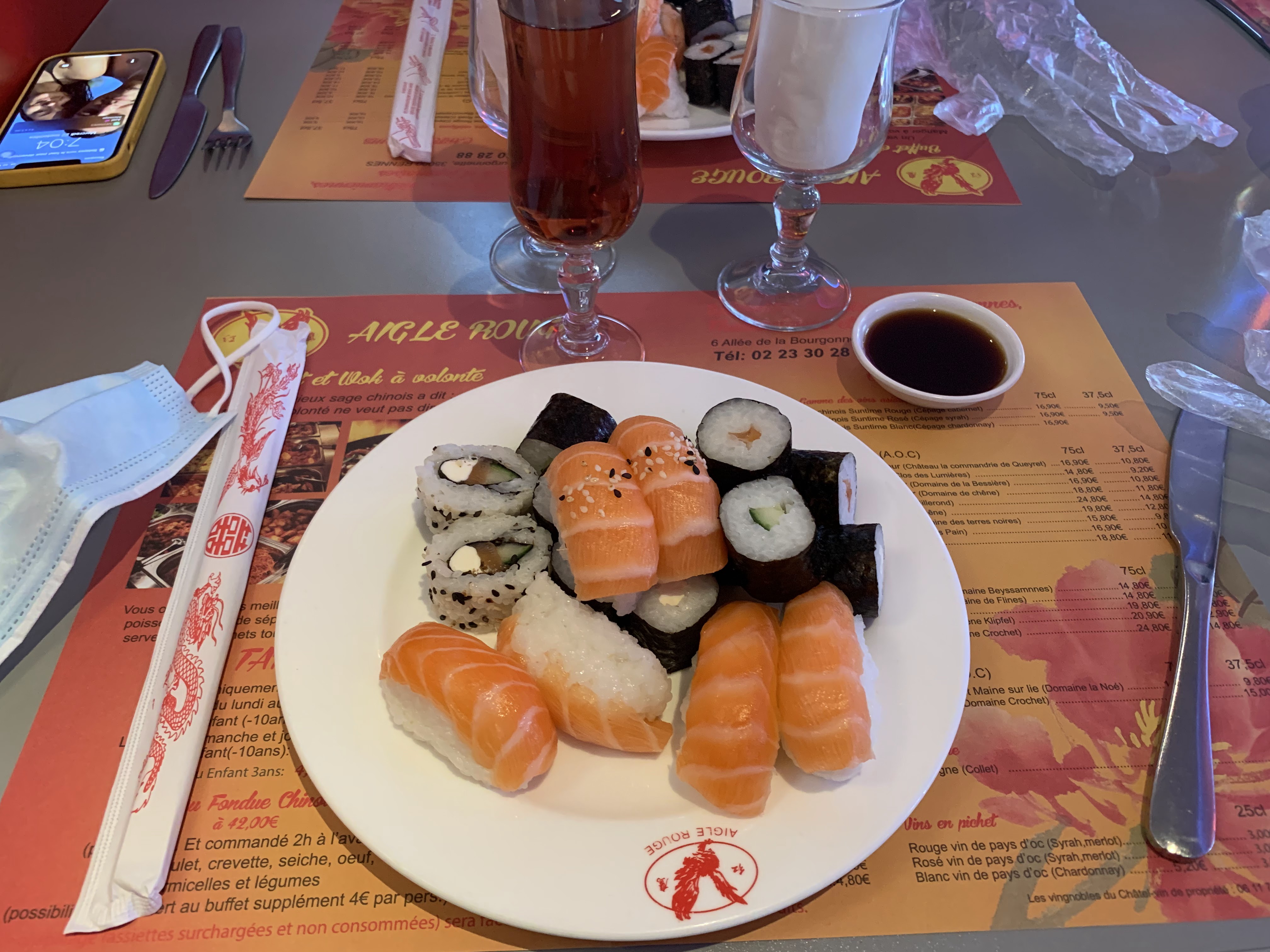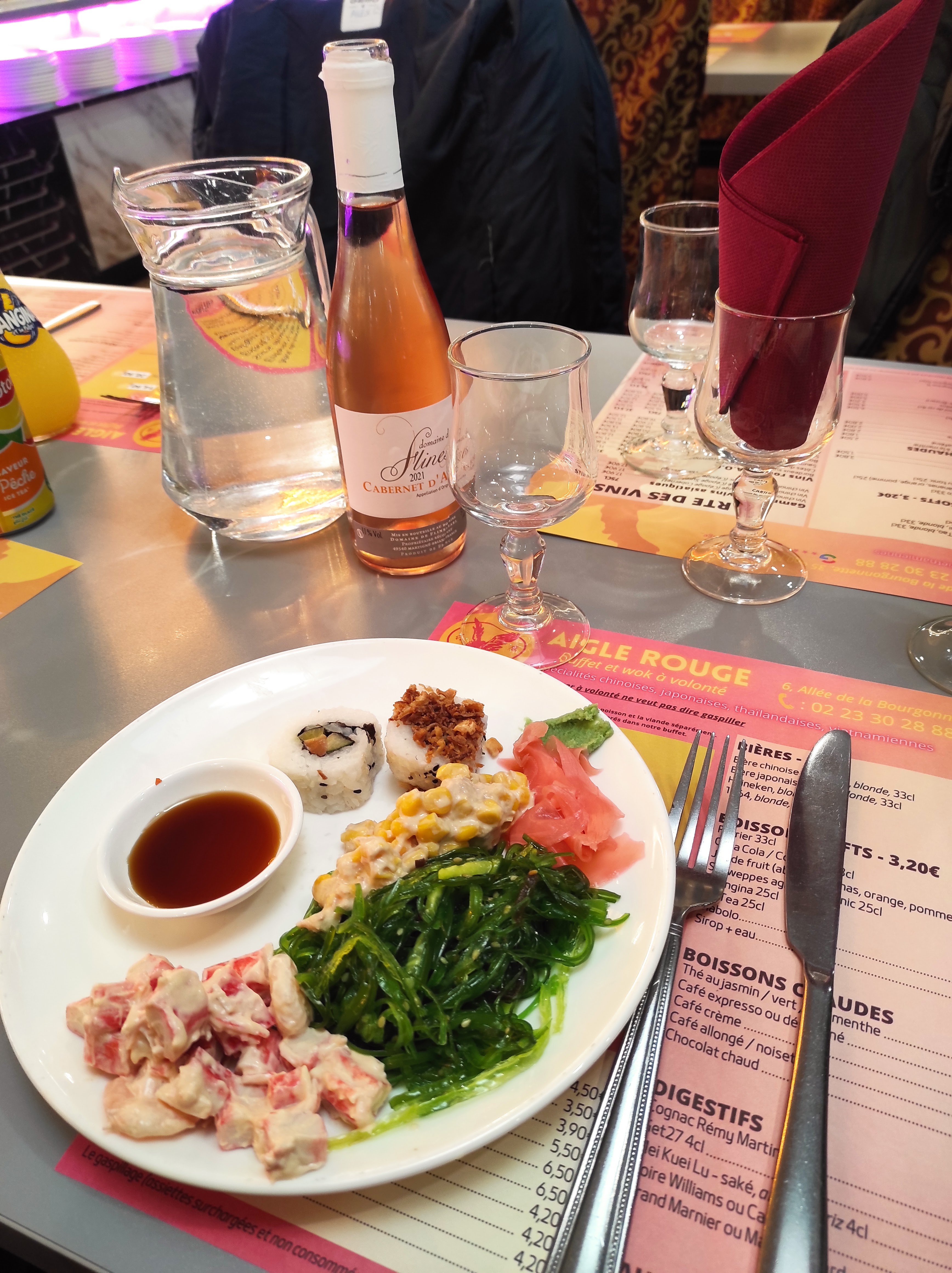 L'aigle rouge est un peu devenue ma cantine... Le personnel y est sympathique et souriant (même avec le masque), les plats variés et pas sec (comme on peut en trouver parfois, à force de rester chauffer et chauffer). Les sushis sont très bons et frais et le riz n'est là que pour soutenir le poisson... Et pas l'inverse comme souvent! Le prix est certes plus élevé le soir et le week-end mais ils ont aussi plus de choix donc on s'y retrouvé largement. Enfin bref, allez-y, c'est le meilleur moyen de vous faire un avis mais vous risquez d'y retourner souvent...