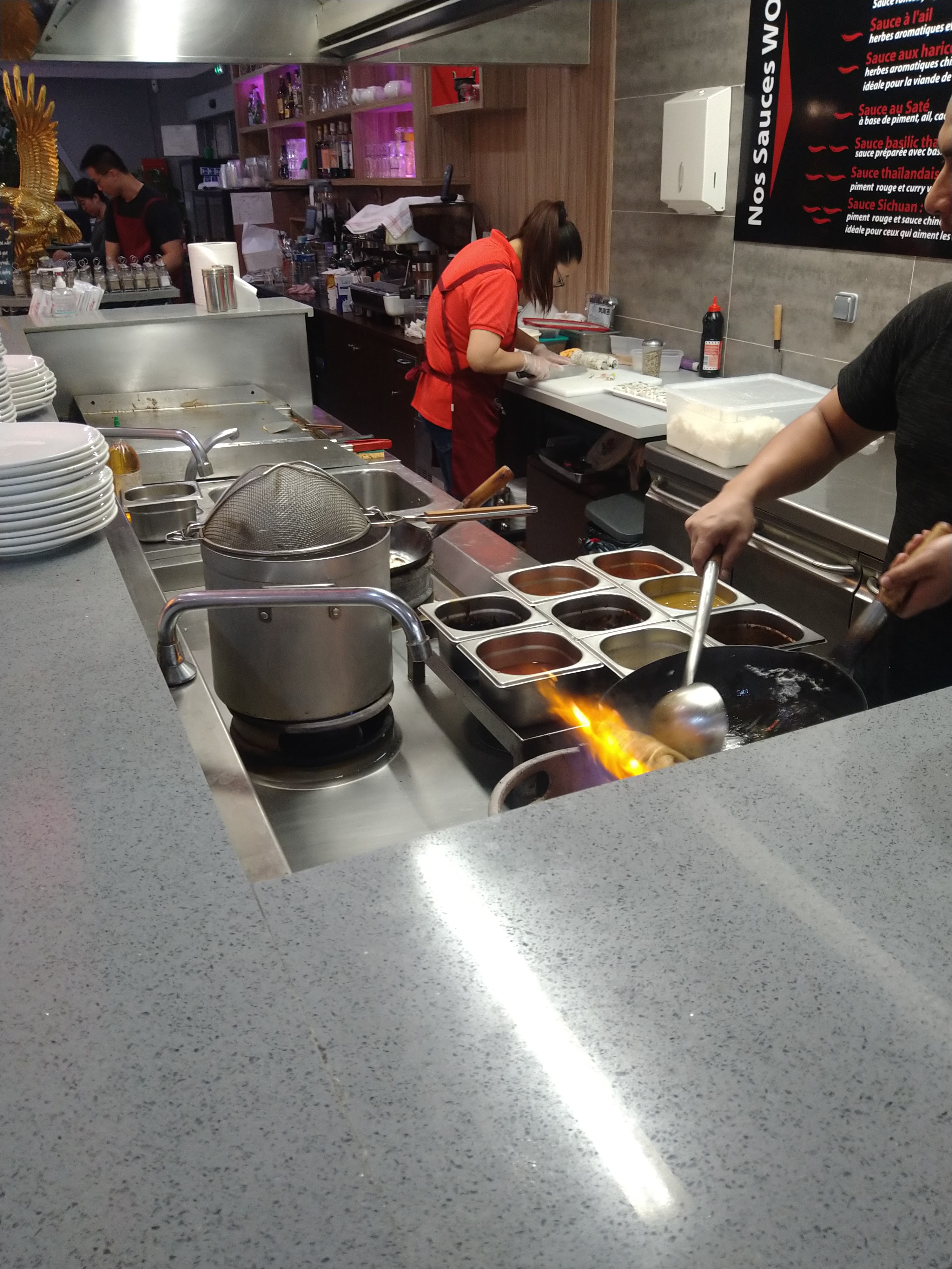J'apprécie ce restaurant pour la qualité et la variété des plats, ainsi que pour le bon rapport qualité/prix. La possibilité de composer ses assiettes, et de se faire préparer les woks avec différentes sauces est agréable. Un vrai régal. Seul bémol, l'ambiance cantine dans la grande salle, mais des aménagements récents ont apporté un peu d'amélioration.