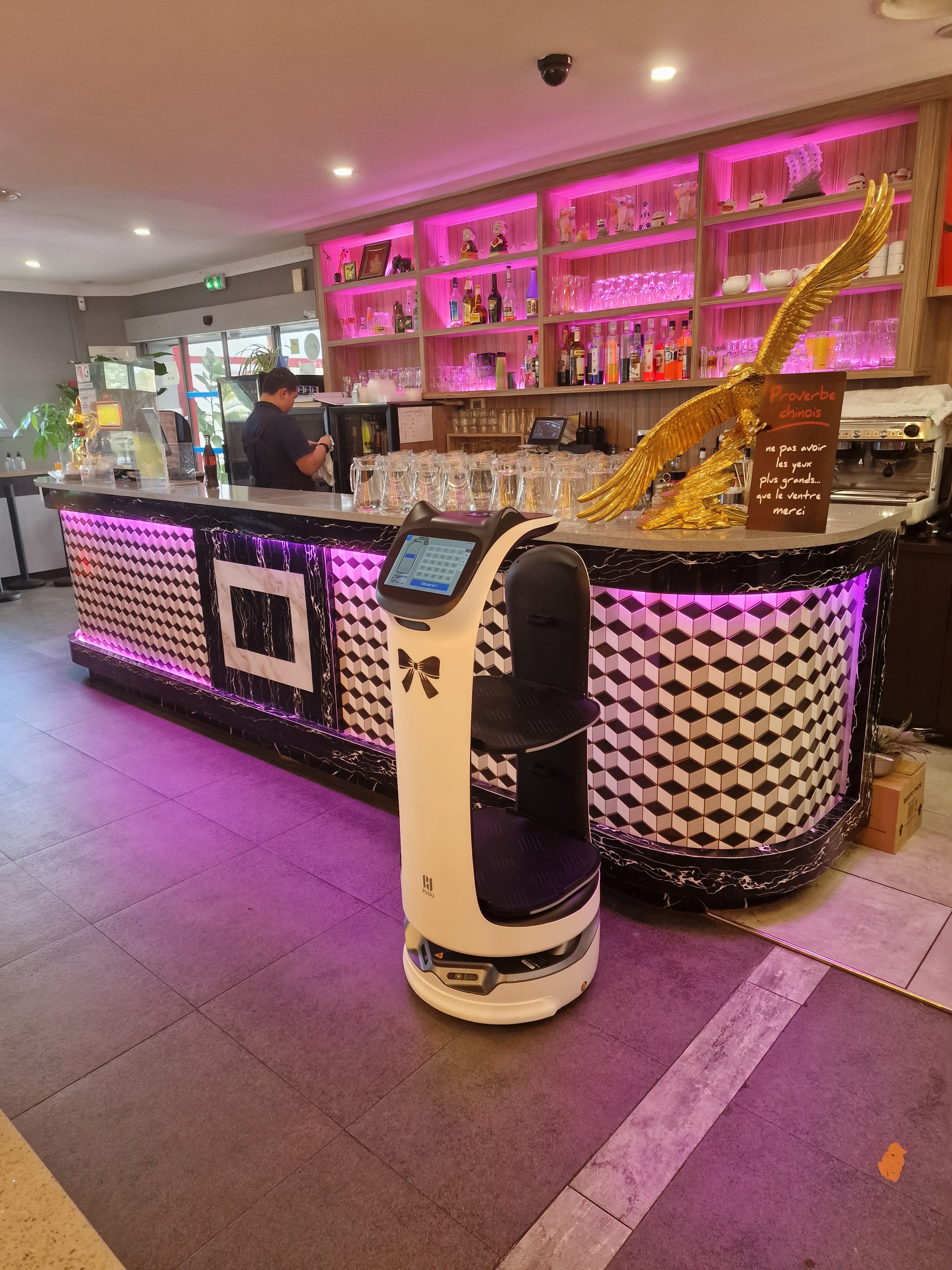 La serveuse est agressive elle a besoin de partir à la retraite. Le robot ça va il est gentil