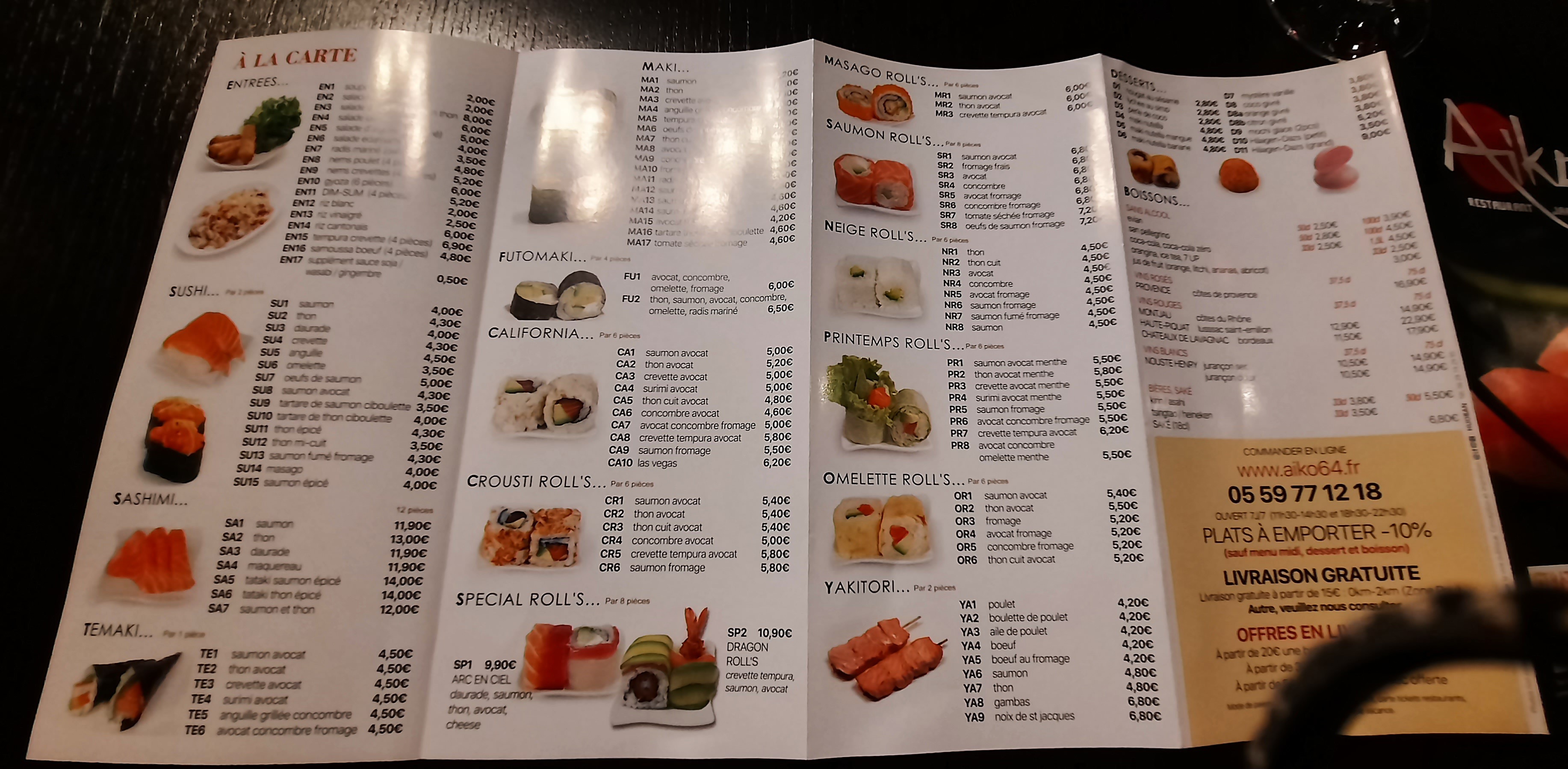 Je prends régulièrement à emporter car j adore les makis de chez Aiko