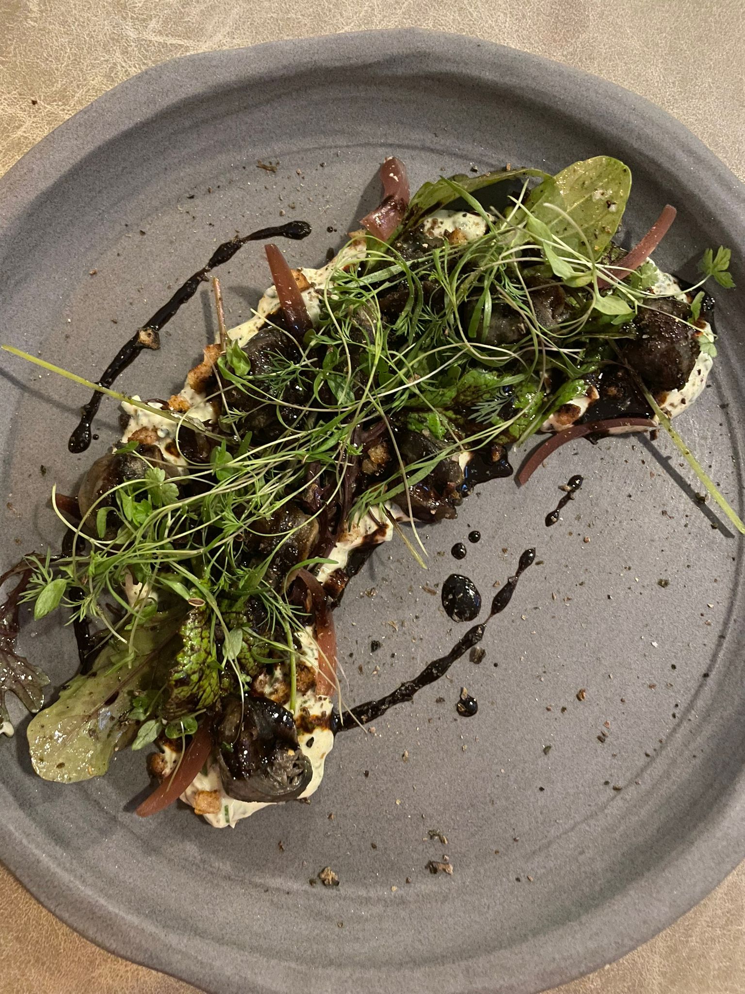 Bravo pour votre plat signature merveilleux aux escargots qui fait aimer les escargots même à ceux qui ne les aiment pas. De l'équilibre, de l'harmonie. La maîtrise des herbes et des fleurs apportent fraîcheur et nuance à vos plats. On a adoré la gougère au vieux comté, la madeleine à la praline, le dessert.