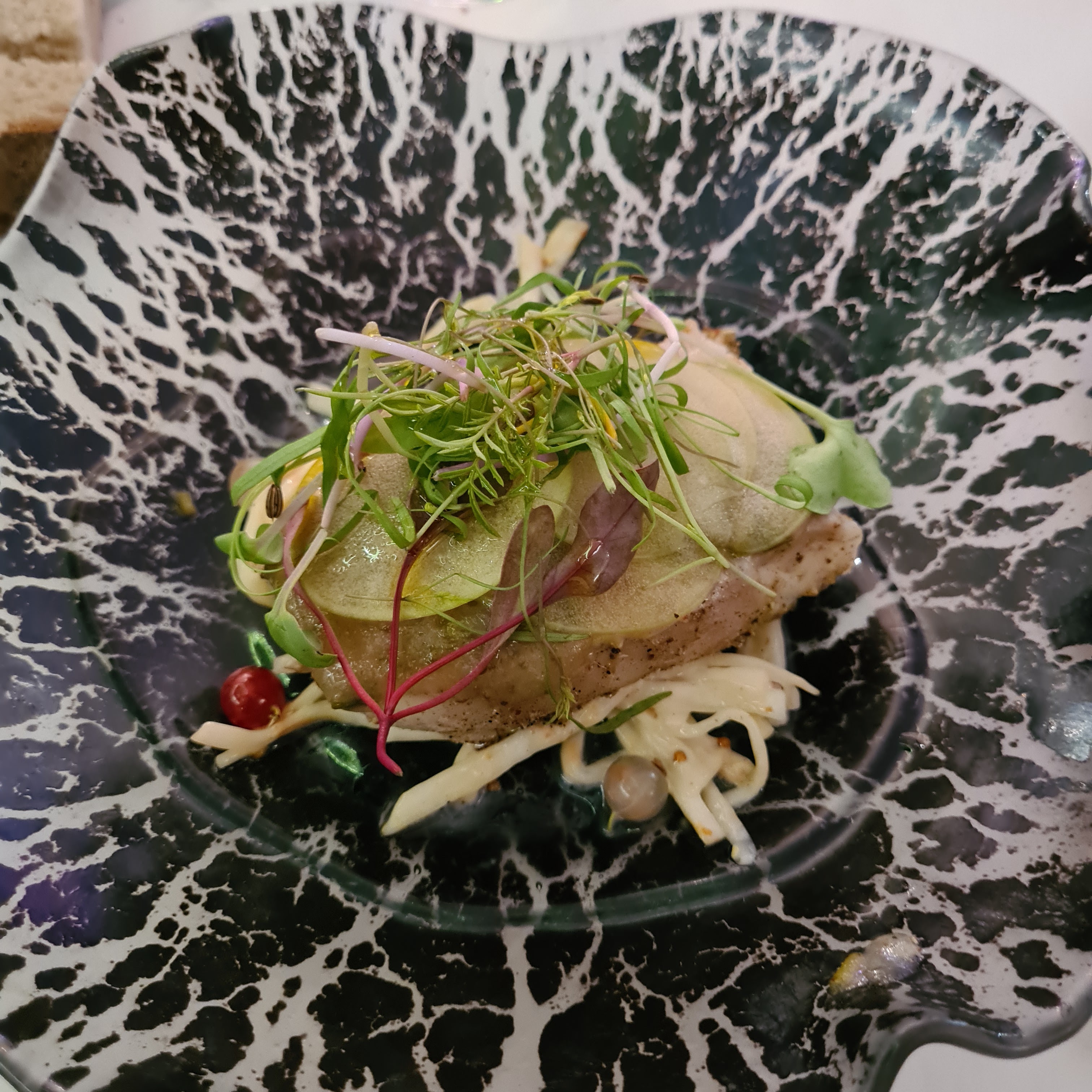 La cuisine était un chef-d’œuvre absolu, mettant en valeur le mélange parfait de saveurs et de textures qui a fait danser mes papilles avec délice. La créativité du chef était sans précédent, chaque plat étant une œuvre d'art qui repoussait les limites de l'innovation culinaire. Ce qui distingue vraiment ce restaurant, c'est son menu unique, qui présente une fusion captivante d'ingrédients locaux et d'influences mondiales, créant un voyage gastronomique inoubliable, avec tous les ingrédients d'origine locale. Chaque bouchée a été une révélation et j'ai hâte de revenir et d'explorer davantage les brillantes créations du chef. Nous vivons à l'étranger et nous y retournerons certainement car nous avons mangé dans des restaurants étoilés Michelin, et ils n'étaient même pas proches de ce joyau de la cuisine. Une visite incontournable pour tout amateur de gastronomie à la recherche d’une aventure culinaire exceptionnelle et mémorable. A noter : le pain est exceptionnel, merci pour le morceau supplémentaire 😊