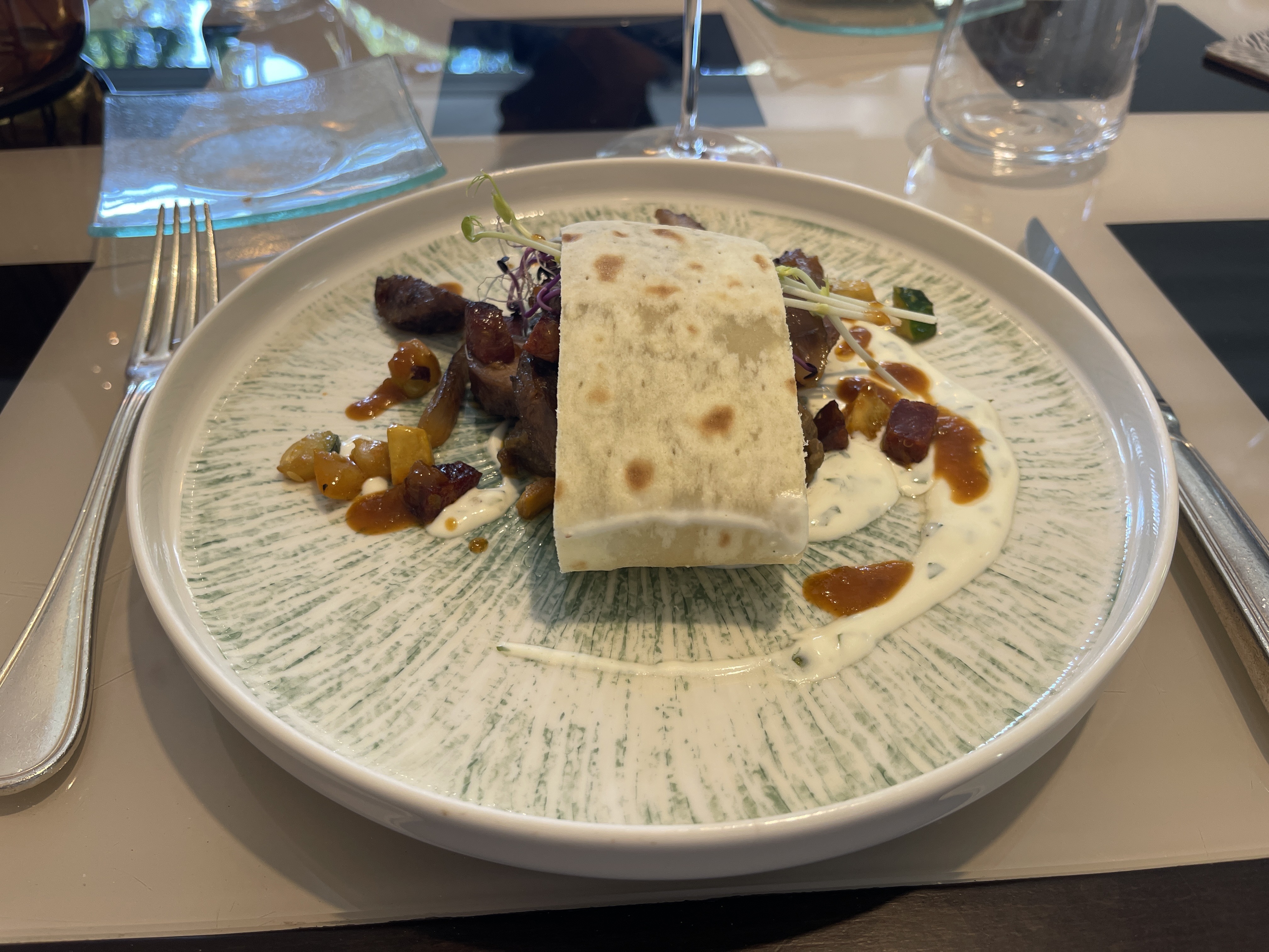 Merveilleux repas. Les plats étaient somptueux et très élaborés. Une cuisine généreuse et gouteuse avec des produits exceptionnels. Un accueil est un service parfait dans un décor moderne et très classe. Expérience à renouveler sans modération !