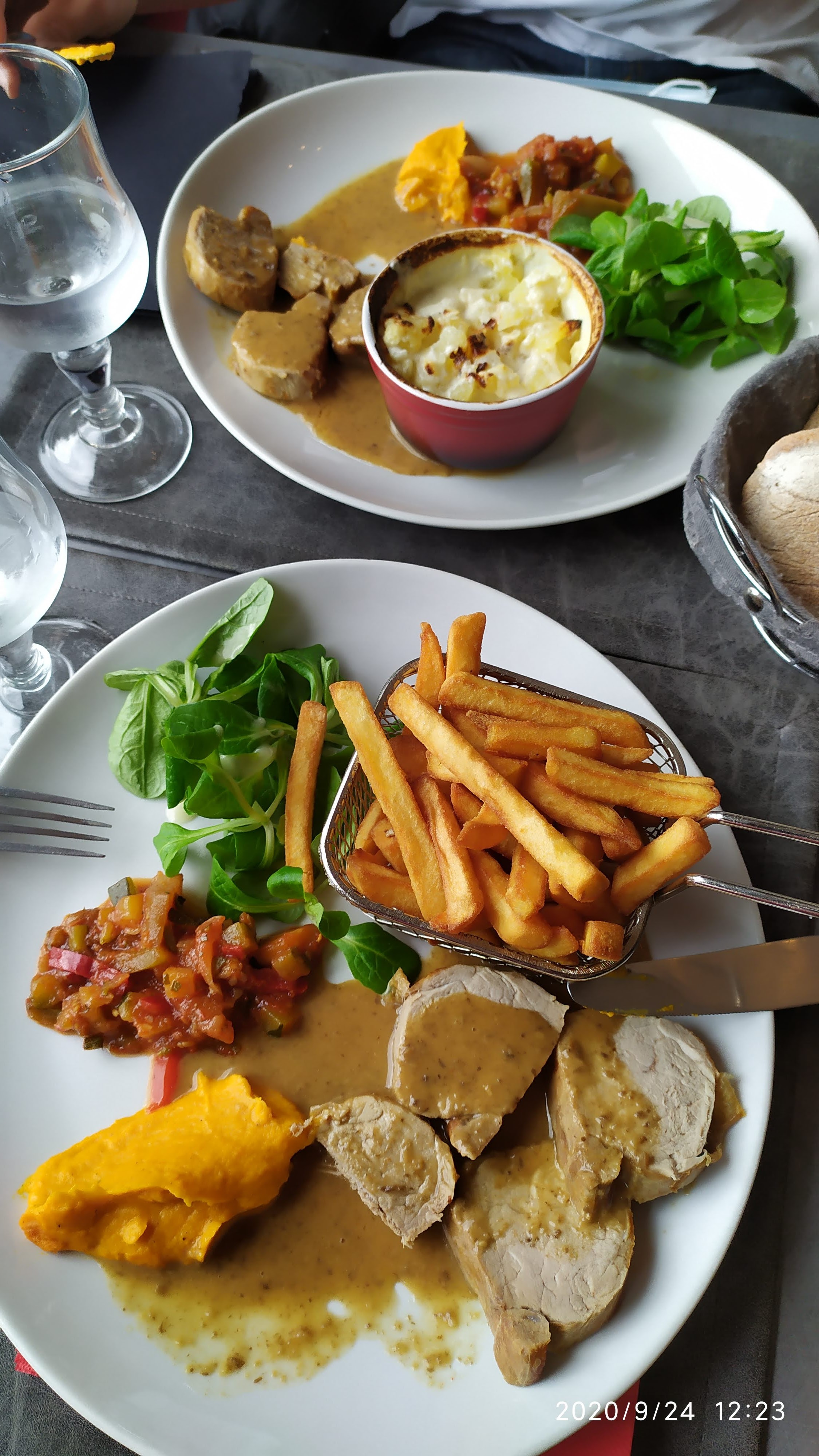 Très décevant On a attendu plus d'une heure entre l entrée et le plat On est arrivés à 12h20 et on nous a amené le plat chaud à 14h Je ne savais pas que l on pouvait couper un baron d agneau aussi fin du coup agneau trop cuit et sec Le magret de canard était trop cuit aussi et la sauce pas faite maison