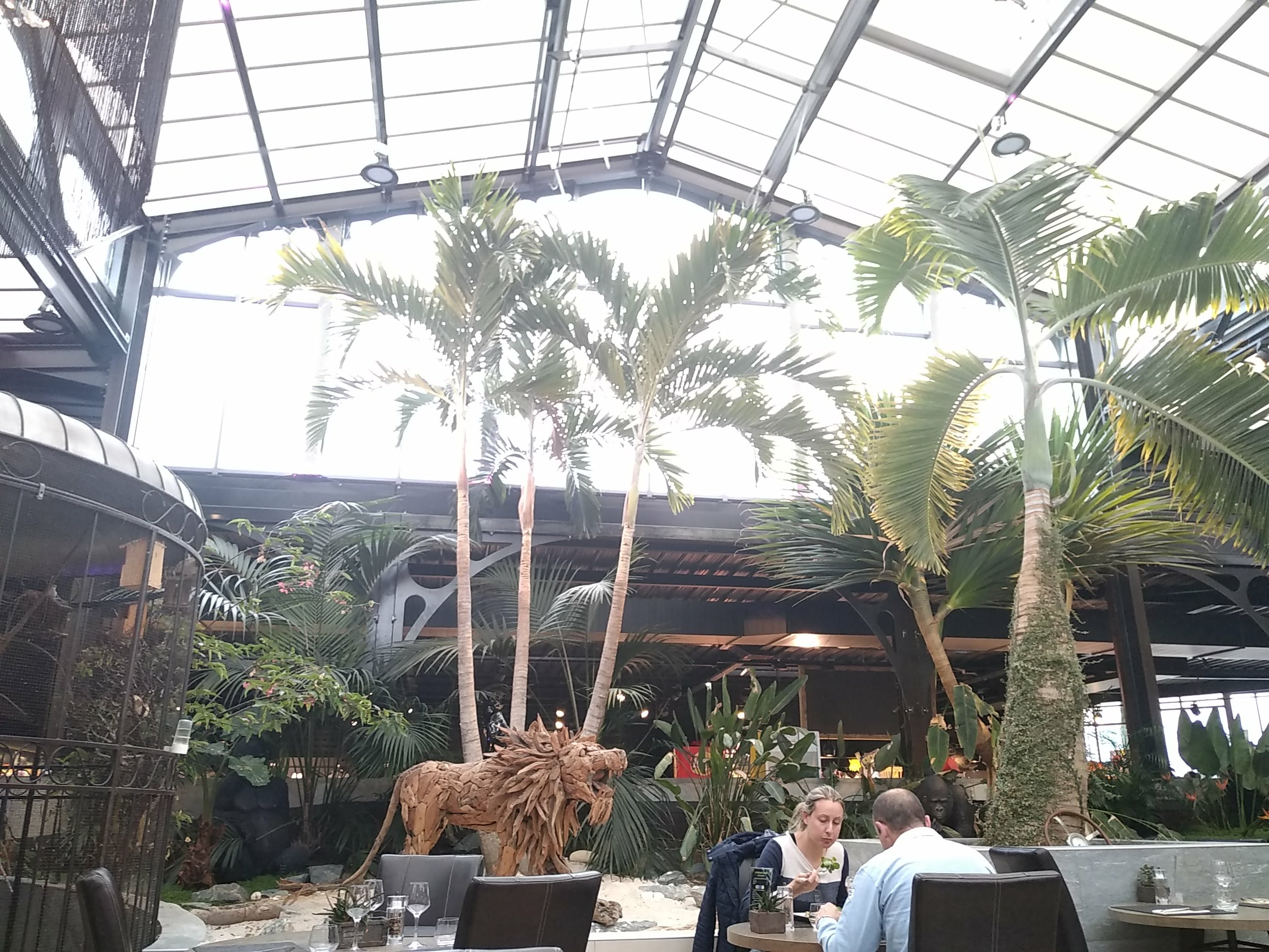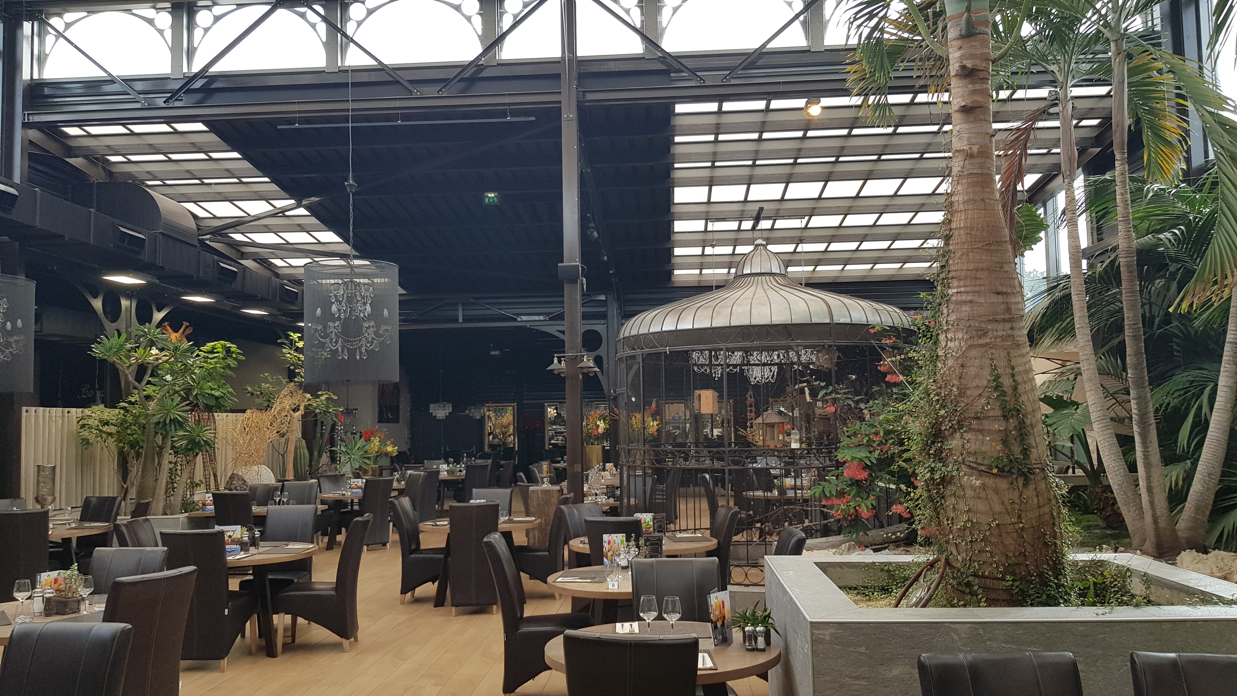 Cadre sympa sur le thème d'une serre (volière, bassin, plantes exotiques), et personnel attentionné, mais climatisation inexistante. Chaleur insoutenable ce samedi midi très ensoleillé qui ne nous a pas permis d'apprécier le repas. Nous étions 9 pour fêter les 91 ans de ma mère, conditions indignes.. A éviter quand il fait chaud dehors, donc dedans, avec un ventilateur à 5 mètres du sol qui tourne à 2 de tension. C'est un sauna, pas un gastro. Déplorable.