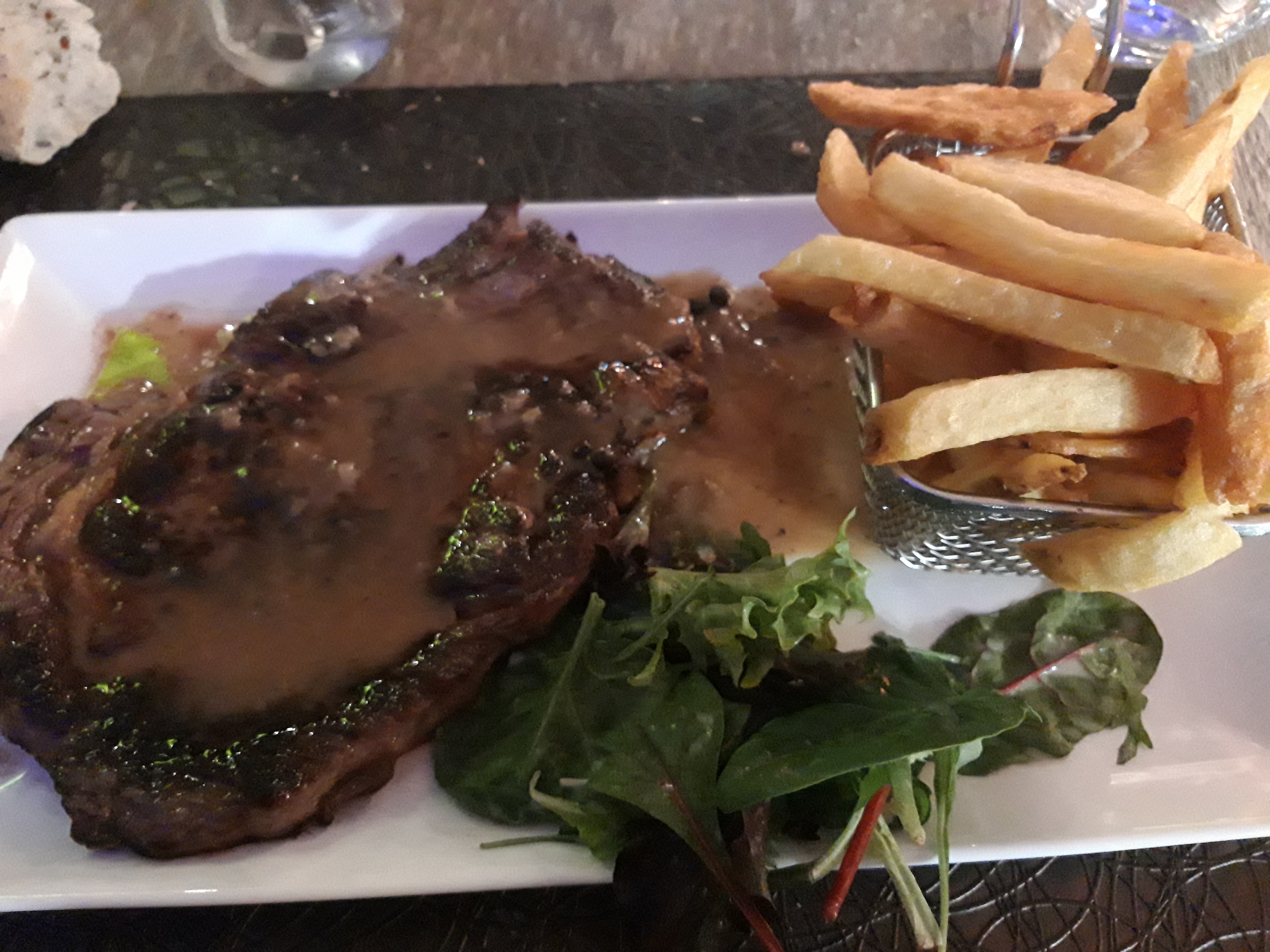 Je suis venue avec mon ami , quelle déception changement de personnel , ne tient pas la route , le serveur sent la sueur , quand il dresse la table il met les doigts dans les verres , nettoie à peine la table après le départ des clients .De plus quand il sert la crème brûlée à mon ami en mettant le pouce dans la crème je trouve cela lamentable . A revoir pour lui apprendre ce que c’est un service . Déception au niveau des plats qui ne sont plus aussi bien dressés comme il y a à peu près 6 mois donc changement de chef , dessert zéro grumble ce n’est pas du tout cela un peu de pommes cuites autour des spéculos écrasés enfin ce n’est pas de la bonne cuisine comme avant . Mon entrecôte demandée saignante trop cuite ! Frites trop cuites . Plus de mise en bouche Bref je ne recommande plus ce restaurant alors que j’étais bonne client . Tout est à revoir . Payer a deux 90€ Pour manger cela . Pour un samedi soir voir le restaurant à 3/4 fermé on se pose des questions .