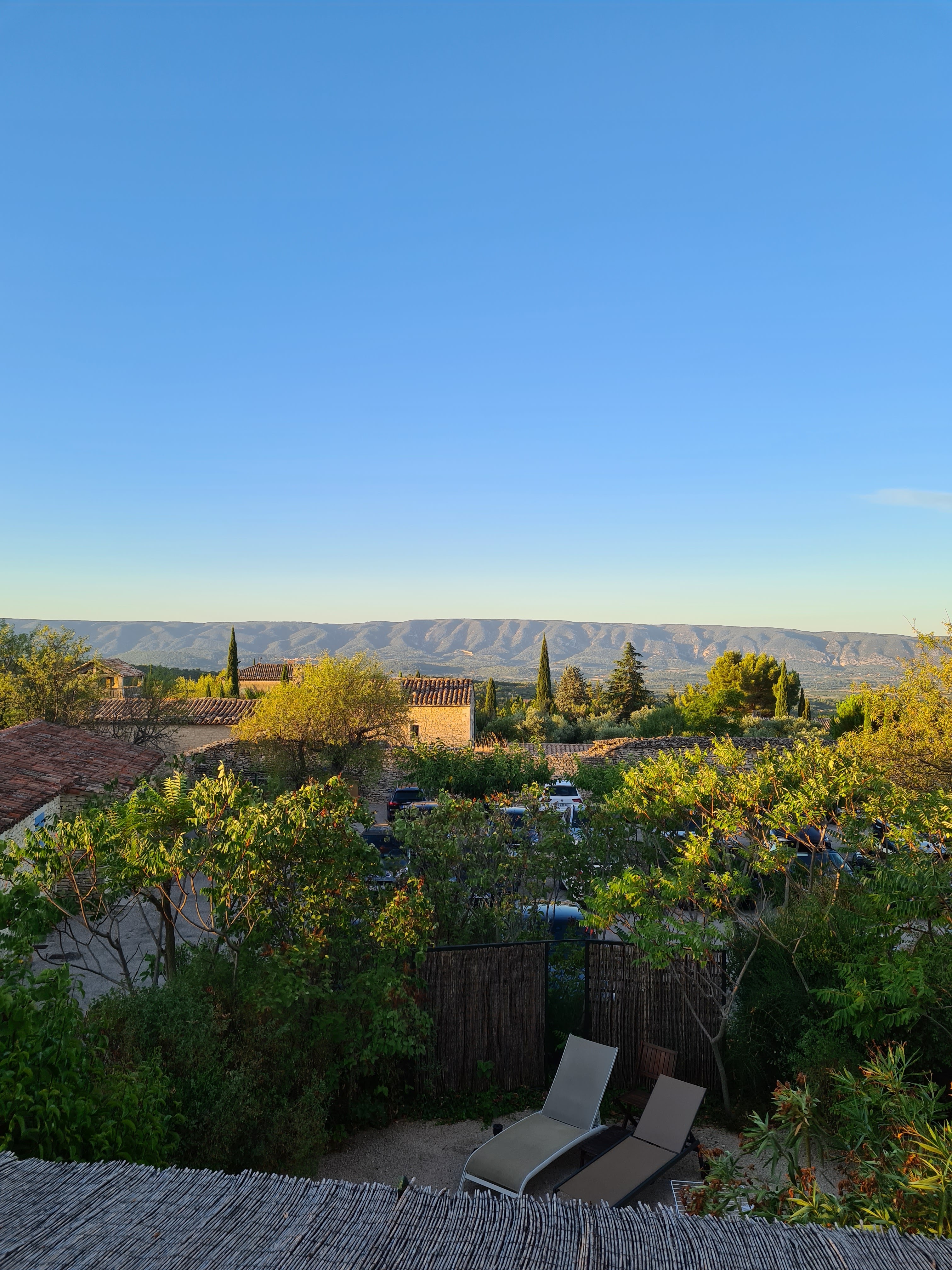 Superbe vue sur le Luberon depuis la terrasse de l hôtel tout en prenant un apéritif