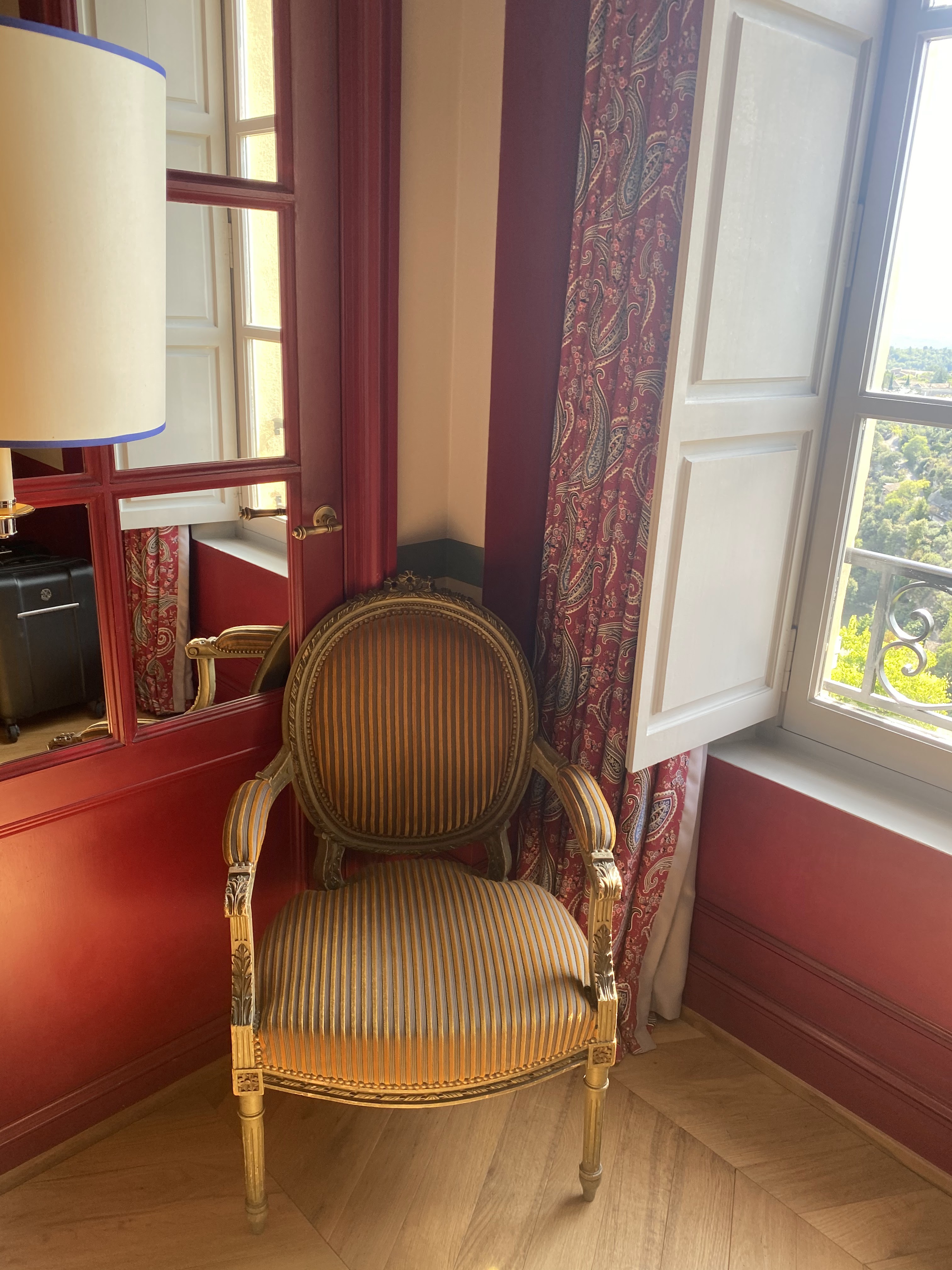 On aime la belle hôtellerie et voyageons en 5 étoiles. On n'a jamais testé encore la dénomination française de Palace, qui serait supérieur aux 5 étoiles. On est dubitatifs, mais on est curieux de l'expérience proposée par Les Airelles Gordes. On a eu la chance d'être upgradés et on remercie sincèrement les Airelles pour cette belle attention pour nos 20 ans. ** CHAMBRE SUPERIEURE vue VALLEE La chambre fait 29m² et offre une vue magnifique sur la vallée, la piscine extérieure et le coucher de soleil. Elle est élégante et pittoresque, habillée de meubles anciens et galerie de portraits. On dispose d'un coin bureau, un dressing, une petite salle d'eau avec baignoire, double vasque et WC... nez collé au sèche-serviette. La literie est phénoménale et c'est très bien isolé. On a beaucoup apprécié ! ** PISCINES et SPA Début novembre, le temps est printanier et on se baigne à la piscine extérieure chauffée à 28°. C'est très agréable. Des rafraichissements sont offerts, ainsi que des sorbets. La piscine intérieure n'est pas en reste avec un coin hammam et douches sensorielles très sympas ! Des mignardises sont également mises à disposition. On a bénéficié d'un massage signature absolument fantastique, entre détente et soin. Un de nos meilleurs massages ! ** BAR On a pris plusieurs apéritifs sur la terrasse. Les cocktails sont originaux et bons. Et les petits sablés au fromage sont orgasmiques ! ** RESTAURATION Le buffet du petit-déjeuner est soigné et qualitatif. Le panorama est très joli. On a également mangé au Glover. Le rapport qualité/prix ne suit pas, on l'a connu à l'ouverture par Jean-François Piège et cela nous avait paru plus qualitatif. Ca n'empêche pas que ce soit bon. On a davantage apprécié L'Orangerie, où les mets sont originaux et savoureux. Seul bémol : la petitesse du mobilier imposant de manger replié sur soi comme si c'était une maison de poupée. ** COMMUNS et PETITS PLUS La bâtisse historique est superbe. Les lieux de passage sont soigneusement décorés, ornés de tableaux et livres anciens évoquant l'histoire pastorale de la région. On se sent bien, un peu comme dans une vieille maison. Le Palace est-il réellement différent d'un 5 étoiles ? C'est difficile à dire, mais aux Airelles Gordes, il y a plein de petites attentions un peu partout comme des jeux de sociétés et de cartes à disposition des hôtes, le prêt d'une 2cv pour visiter la région, le nettoyage de la voiture, les gourmandises et présents offerts durant le séjour, le minibar offert en chambre... et toutes ces attentions renforcent le sentiment d'être chez soi. Le personnel a été adorable, très serviable et sympathique, efficace et gentil. Le concierge et le voiturier sont des personnages, on les a adorés ! On a également apprécié la présence de la Manager générale de l'hôtel à l'arrivée et au départ. A n'en pas douter, on reviendra car qu'est-ce qu'on se sent bien !