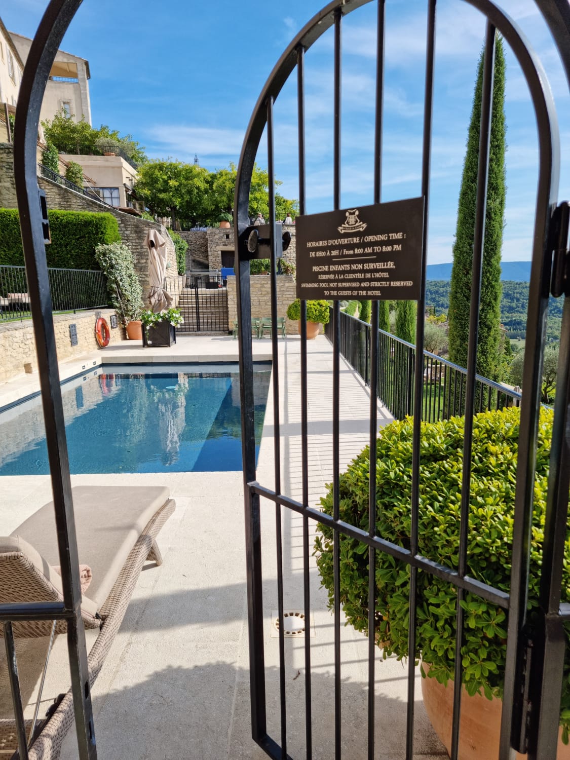 Le séjour était parfait - mème si l’équipe n’était pas tout à fait rodée sur certains services (ajout de pourboire sans accord, facturation de soft à la piscine alors que c’était indiqué comme gratuit, sommelier sympathique mais peu convaincant, silence gênant quand on demande un lapsang souchong au petit déjeuner) ; ce qui m’a le plus gêné, et fait tomber à 1* la note, c’est que j’ai oublié deux articles acheté à Gordes dans la chambre, j’ai écrit 3 fois par mail sans réponses, et quand j’ai appelé, la réceptionniste dit qu’il n’y a rien et rigole à l’évocation d’un vol du personnel de chambre. Des progrès à faire…