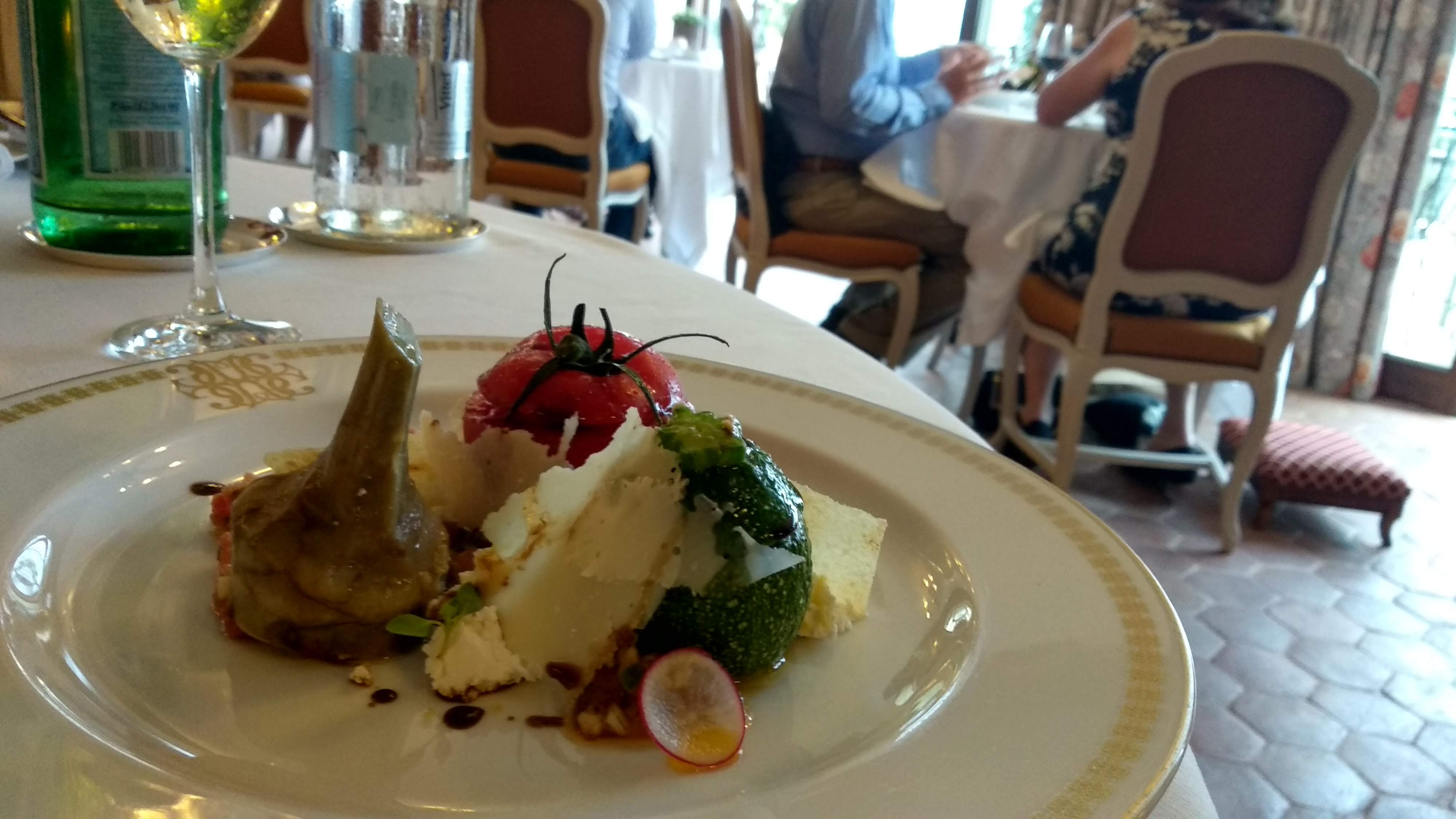Le village est splendide, le lieu l'est tout autant. Nous avons mangé à l'Orangerie et avons choisi le menu avec accords mets et vins. Le panorama est sublime, le service impeccable. Le pain ciabatta est très bon, les cocktails très généreux et subtils. Côté assiette, les mets sont bons, les associations matchent bien... C'est classique et efficace. Côté vins, pas de prise de risque non plus, on reste sur du classique. Conclusion, belle expérience au global de par les lieux, la qualité du service, le standing de l'établissement mais pas vraiment de belles découvertes, si ce n'est ce vin cuit servi au dessert.
