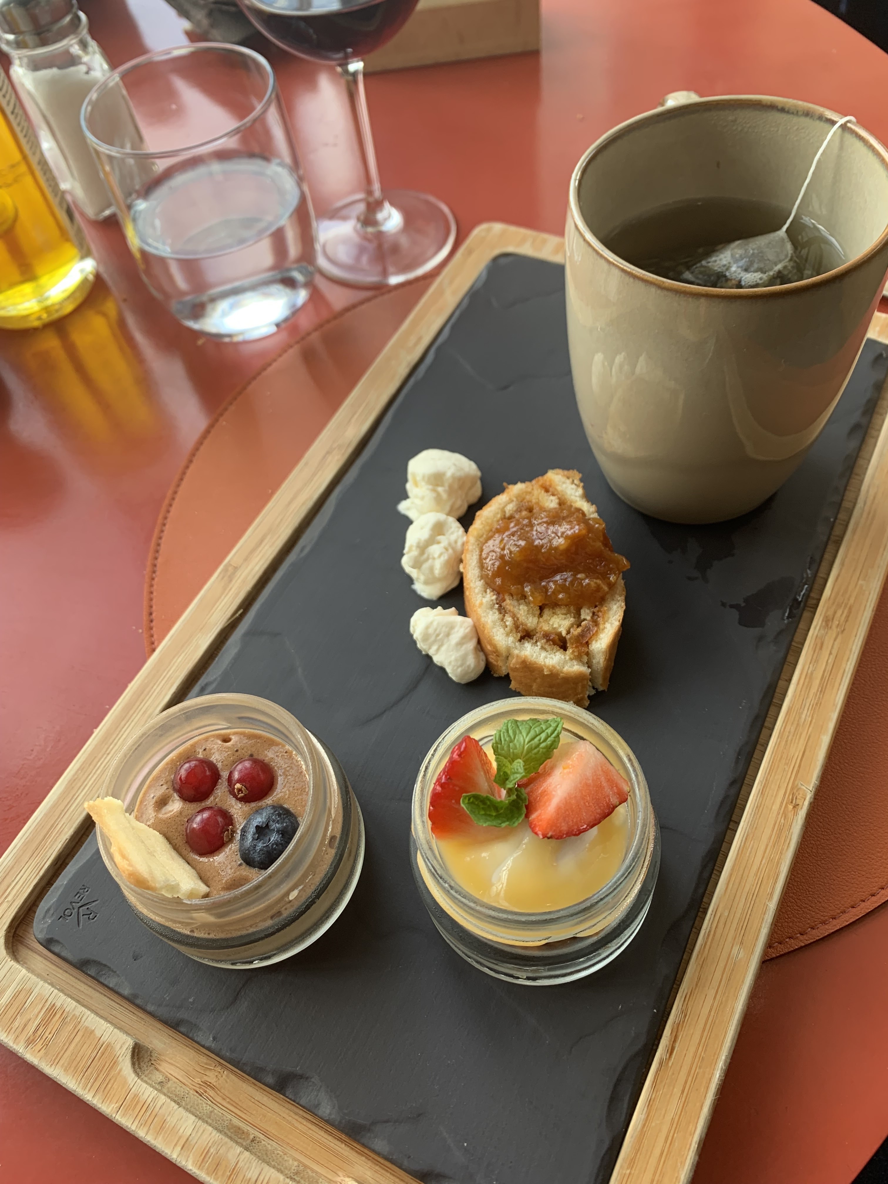 En arrivant l accueil a plutôt été froid, et puis finalement les serveuses ont étés sympas. Resto très bien décoré avec une très jolie terrasse. Nous avons juste bu un verre. La boutique du resto vend des produits de la région.