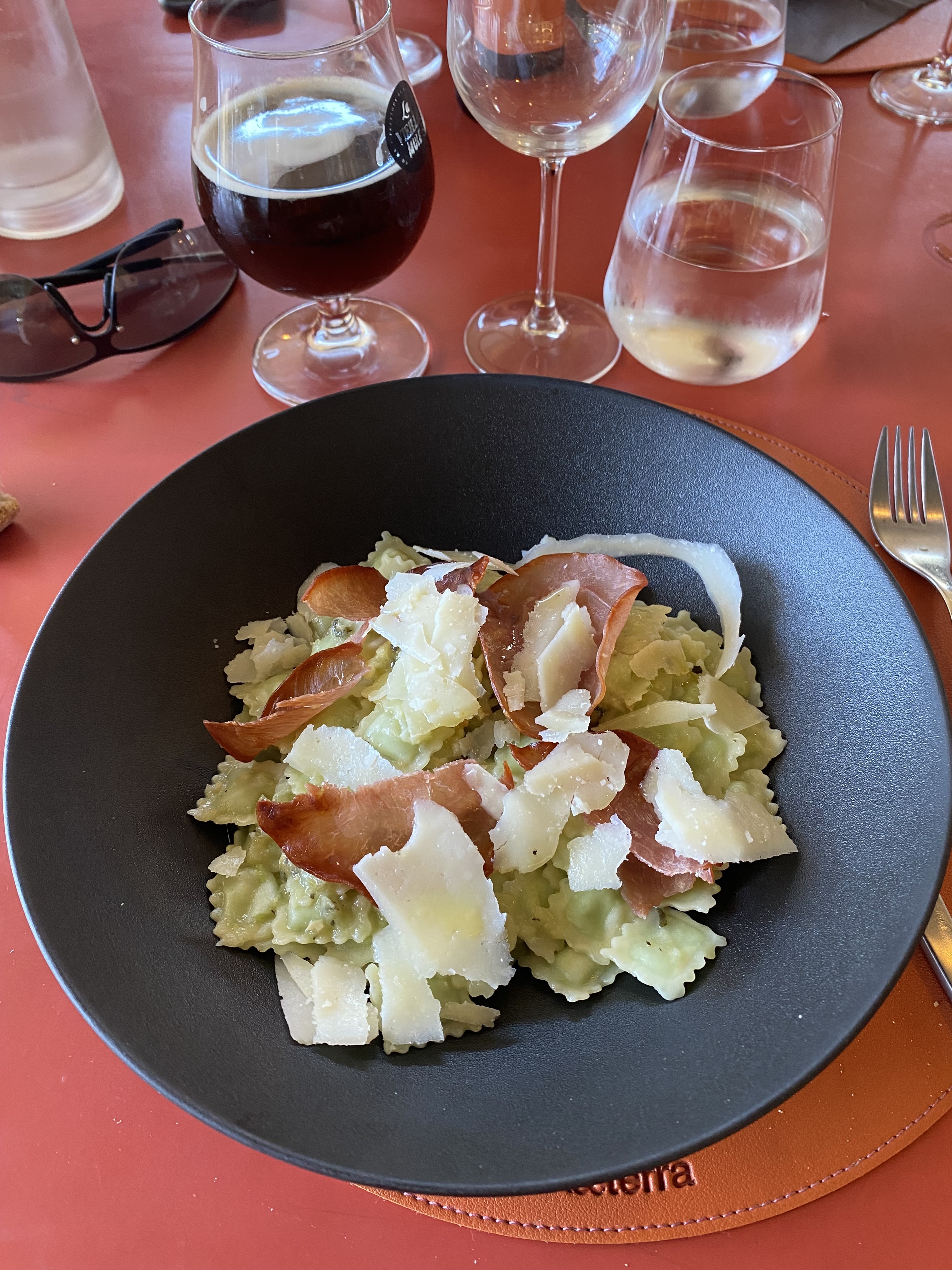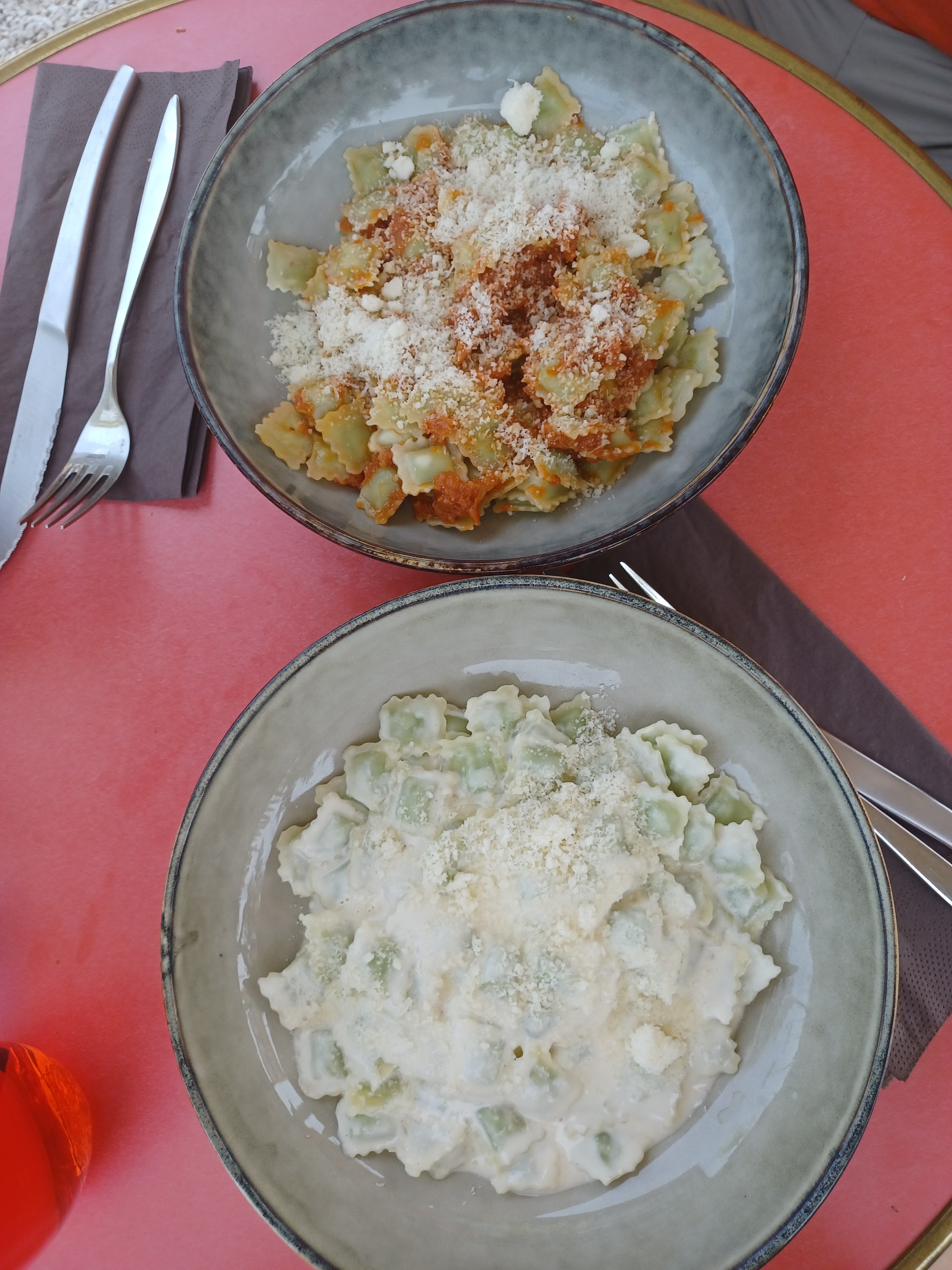 Ravioles crème ail et truffe d'été et ravioles crème de parmesan et citron de Menton...sublimes ! Service sympathique. Une belle adresse découverte par hasard.