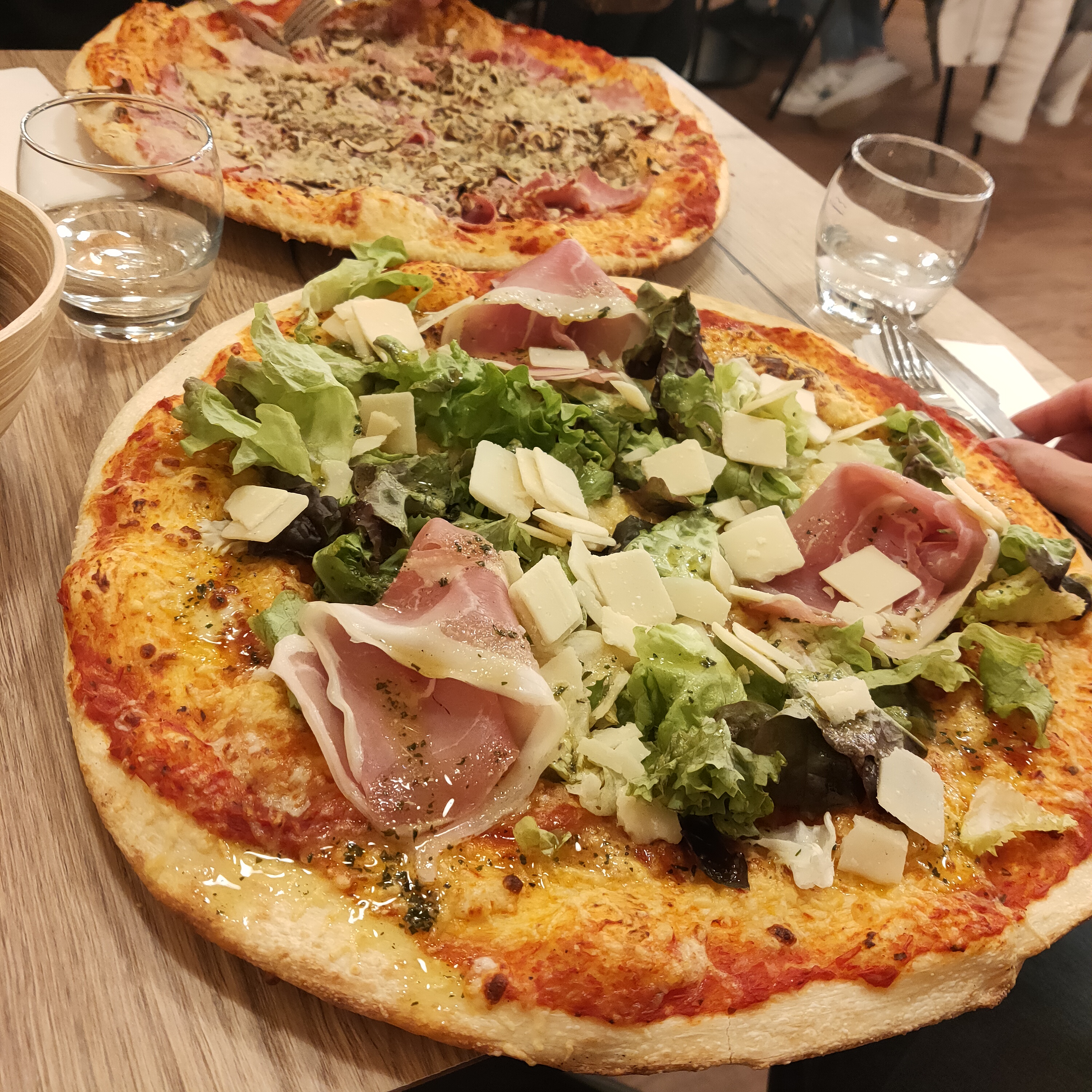 Bel assemblage de produits bon marché.... c'est dommage il y a de belles idées dans les compositions de pizza, ça serait sans doute 5 étoiles avec des produits de qualité. La cuisson des pizzas est assez aléatoire, de parfaitement croustillante à noire en passant par molle... Les pizzas sont grandes oui mais la taille ne fait pas tout et elle ne sont pas garnies en proportion. Mais il y a un bon potentiel !
