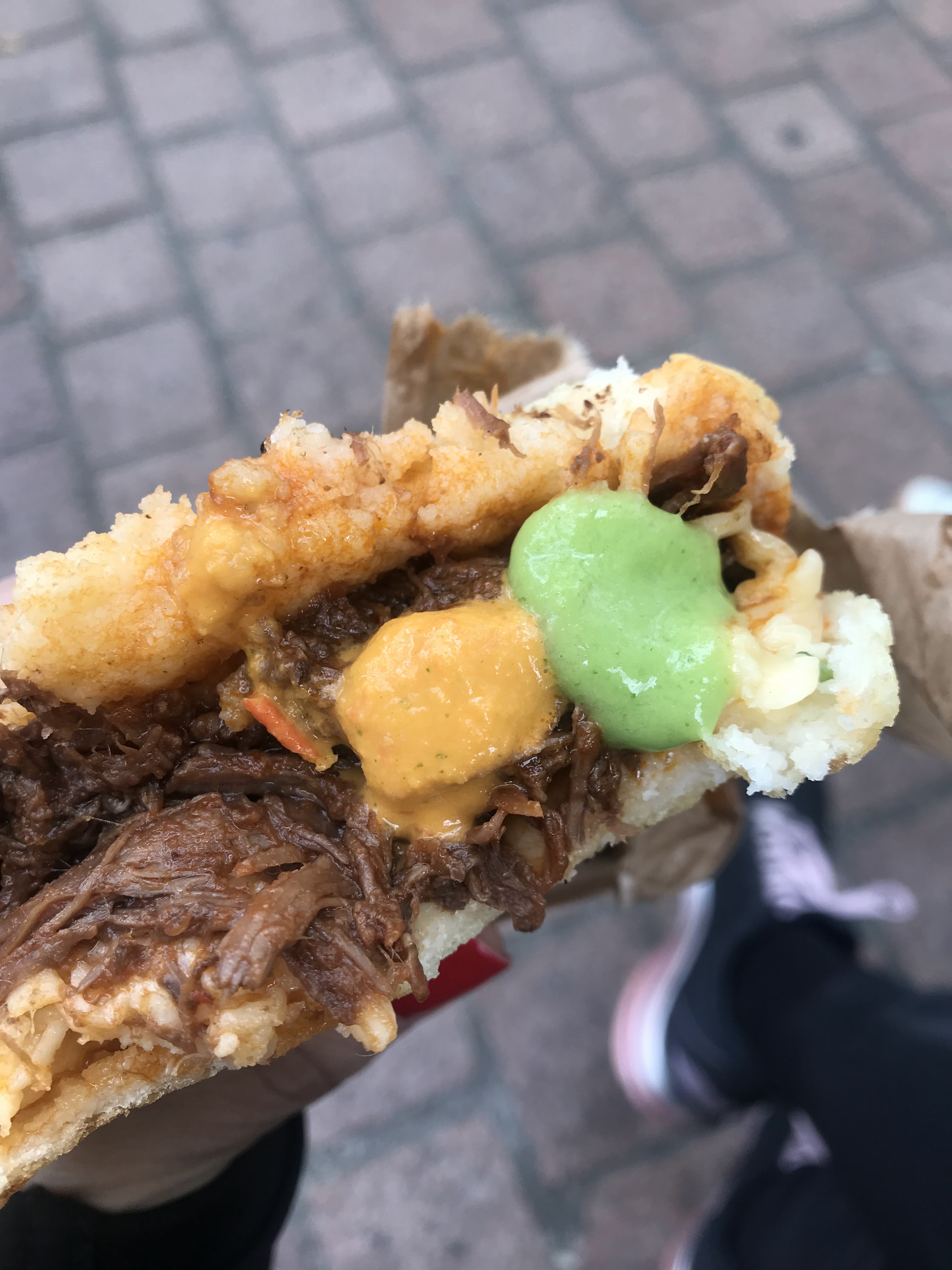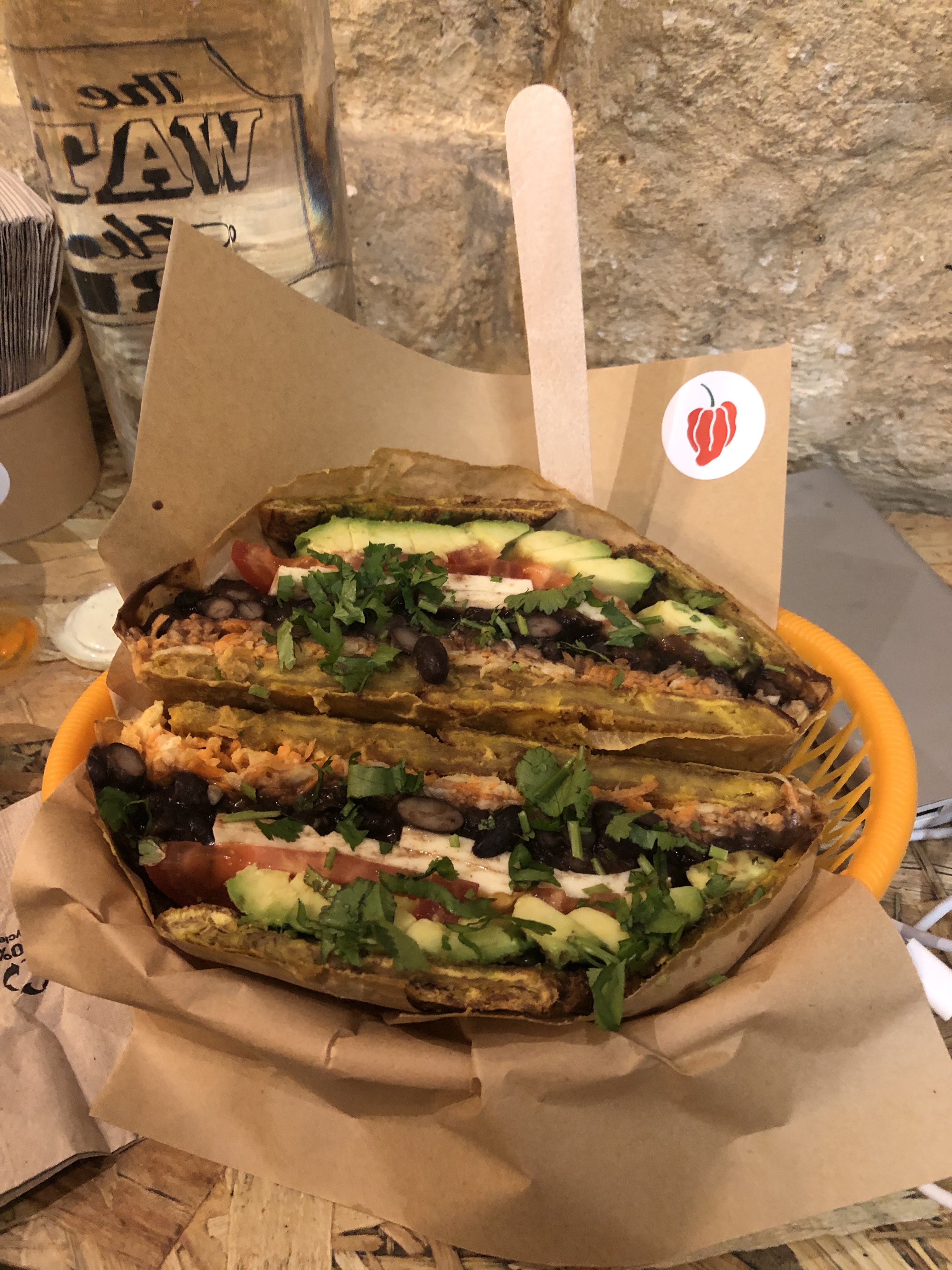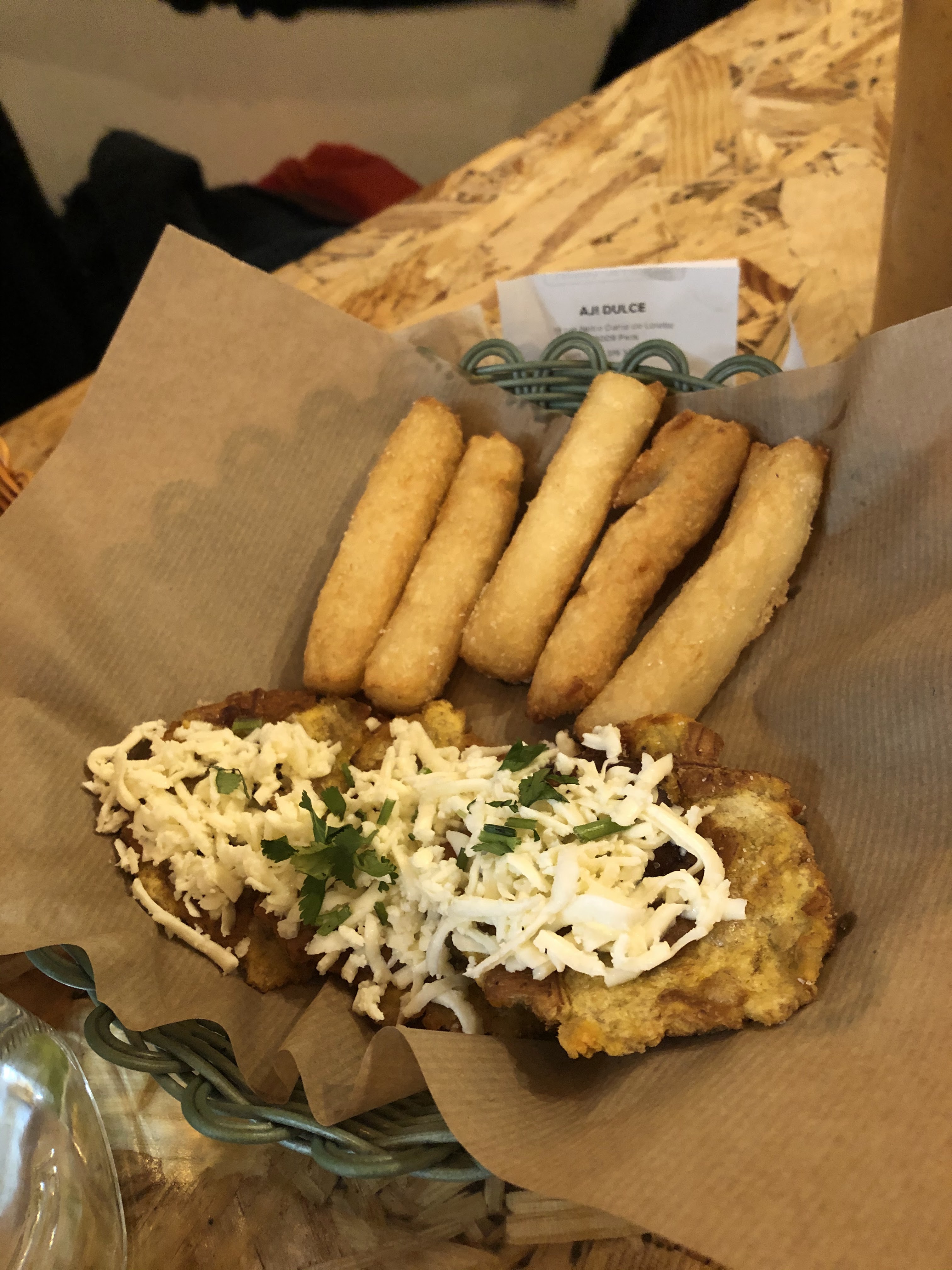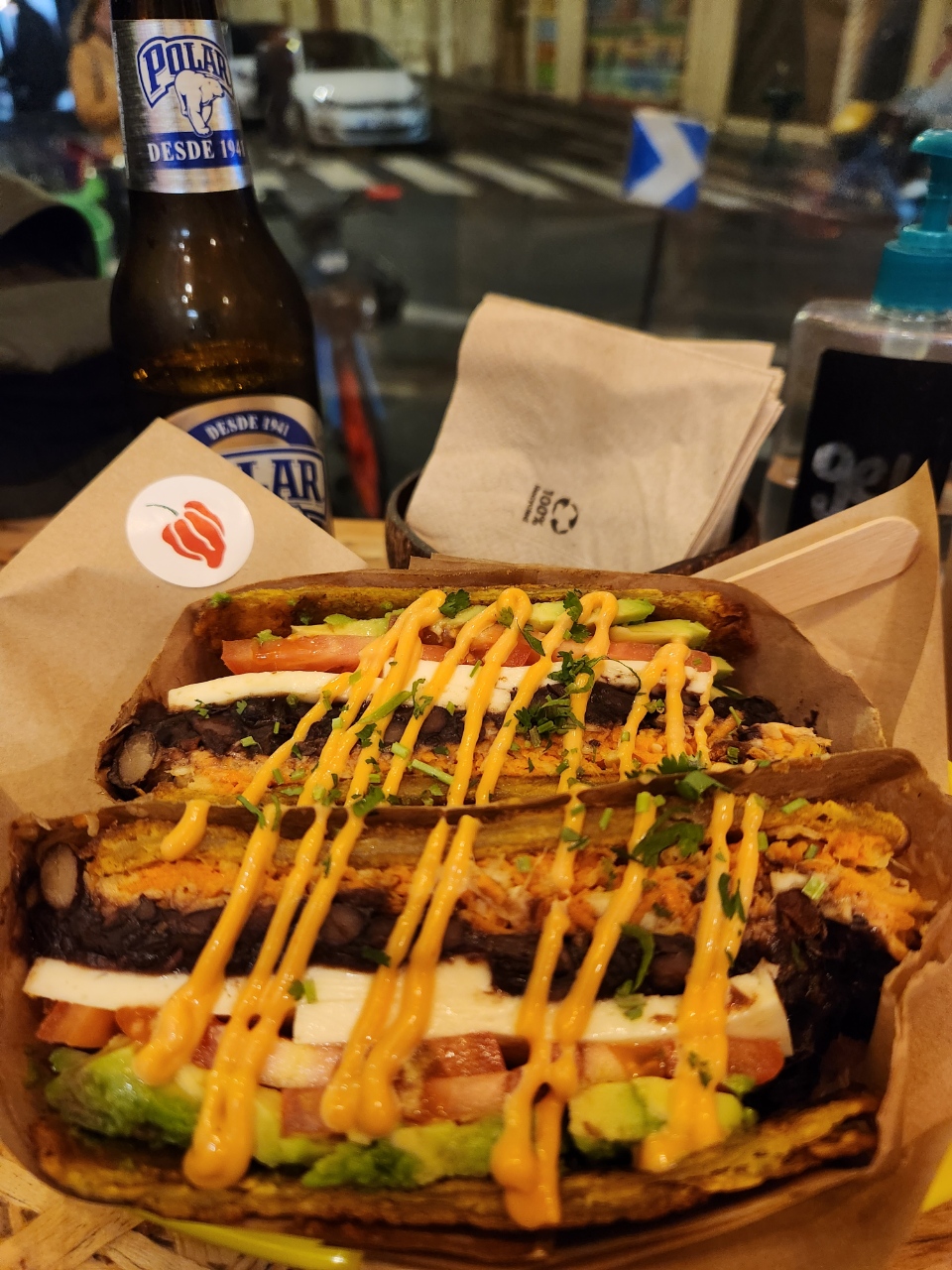 Vraiment très très bon ! C’est une bonne façon de découvrir la nourriture venezuelienne qui n’est pas très répandue et qui vaut le coup!! Gros coup de coeur pour les chips de banane plantin ! J’ai trouvé un peu cher pour de la street food mais ça reste accessible si on n’a pas trop un gros appétit
