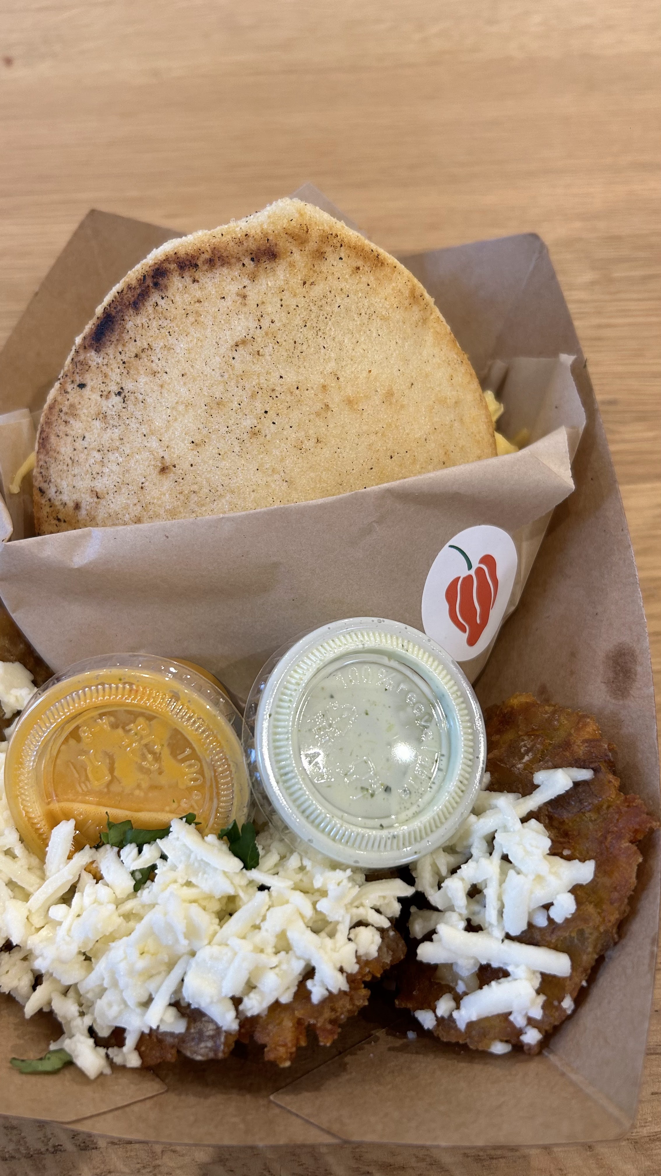 Si vous aimez l'arepa, c'est l'endroit où il faut aller Les arepas typiques des Vénézuéliens. J'en mange un avec du fromage, du plantain et de l'avocat... juste délicieux L'endroit est petit donc si vous y allez, je vous recommande d'acheter puis de manger ailleurs à moins de trouver une place pour vous asseoir Ils ont aussi des palitos de queso !!!