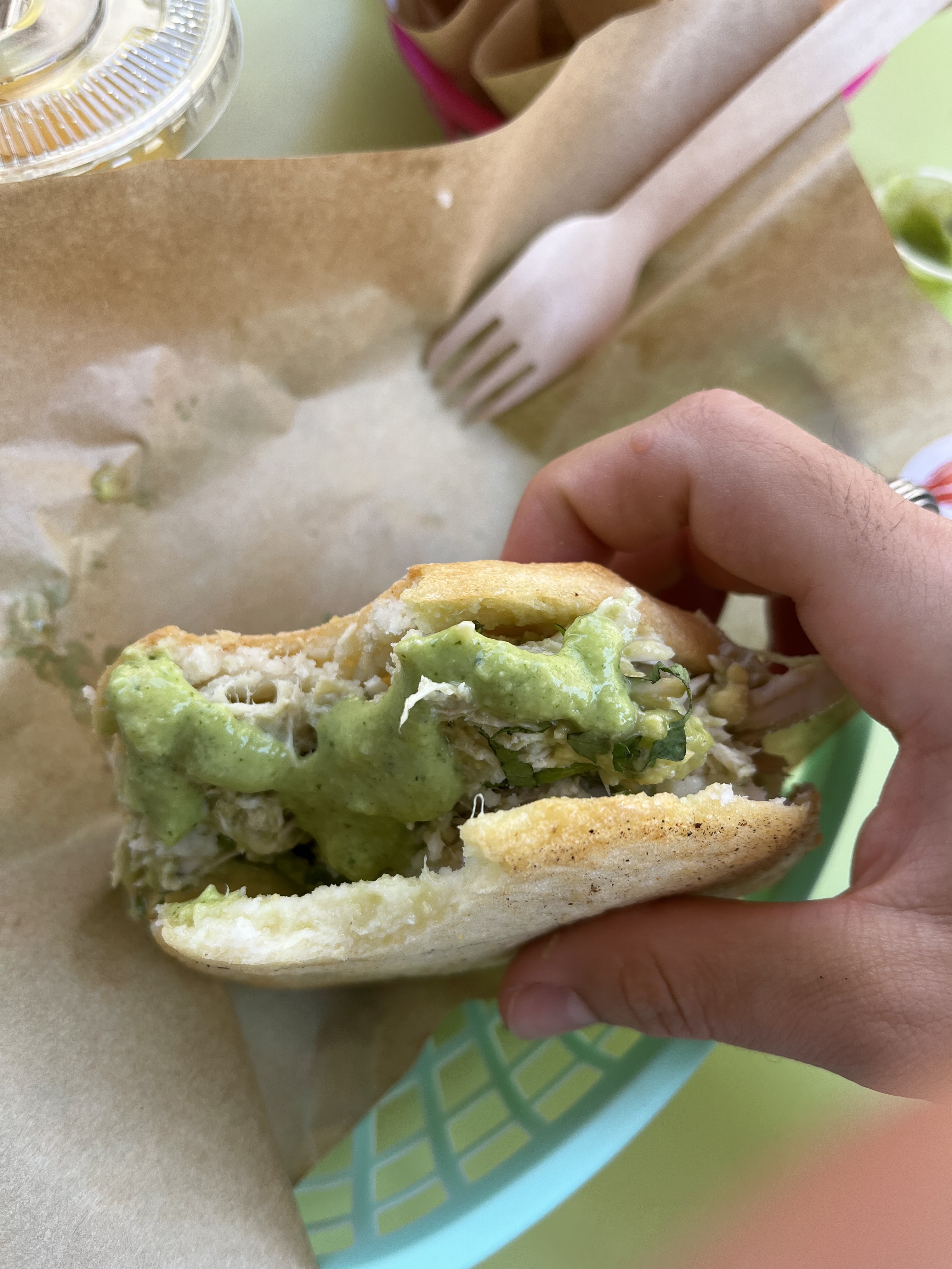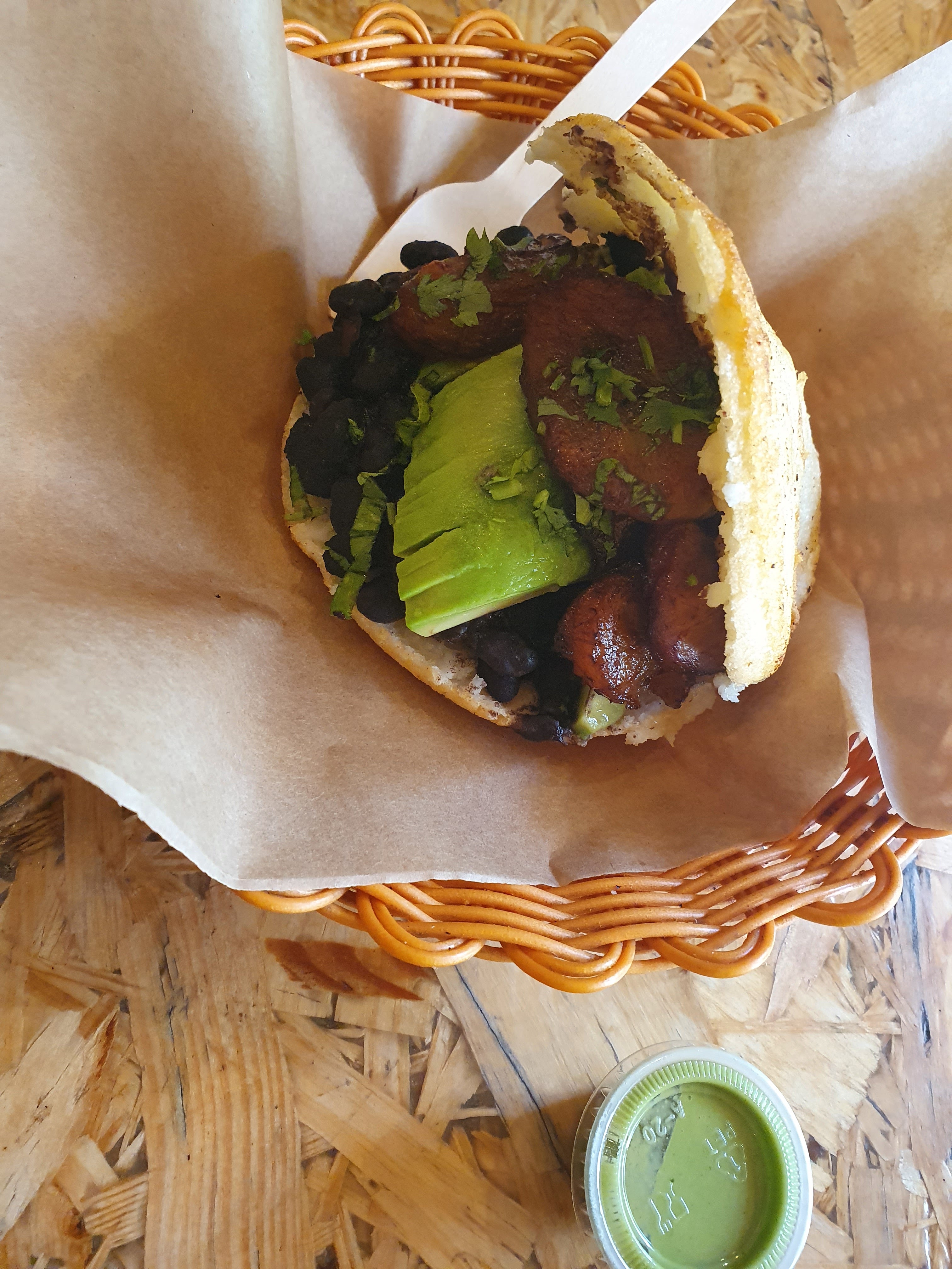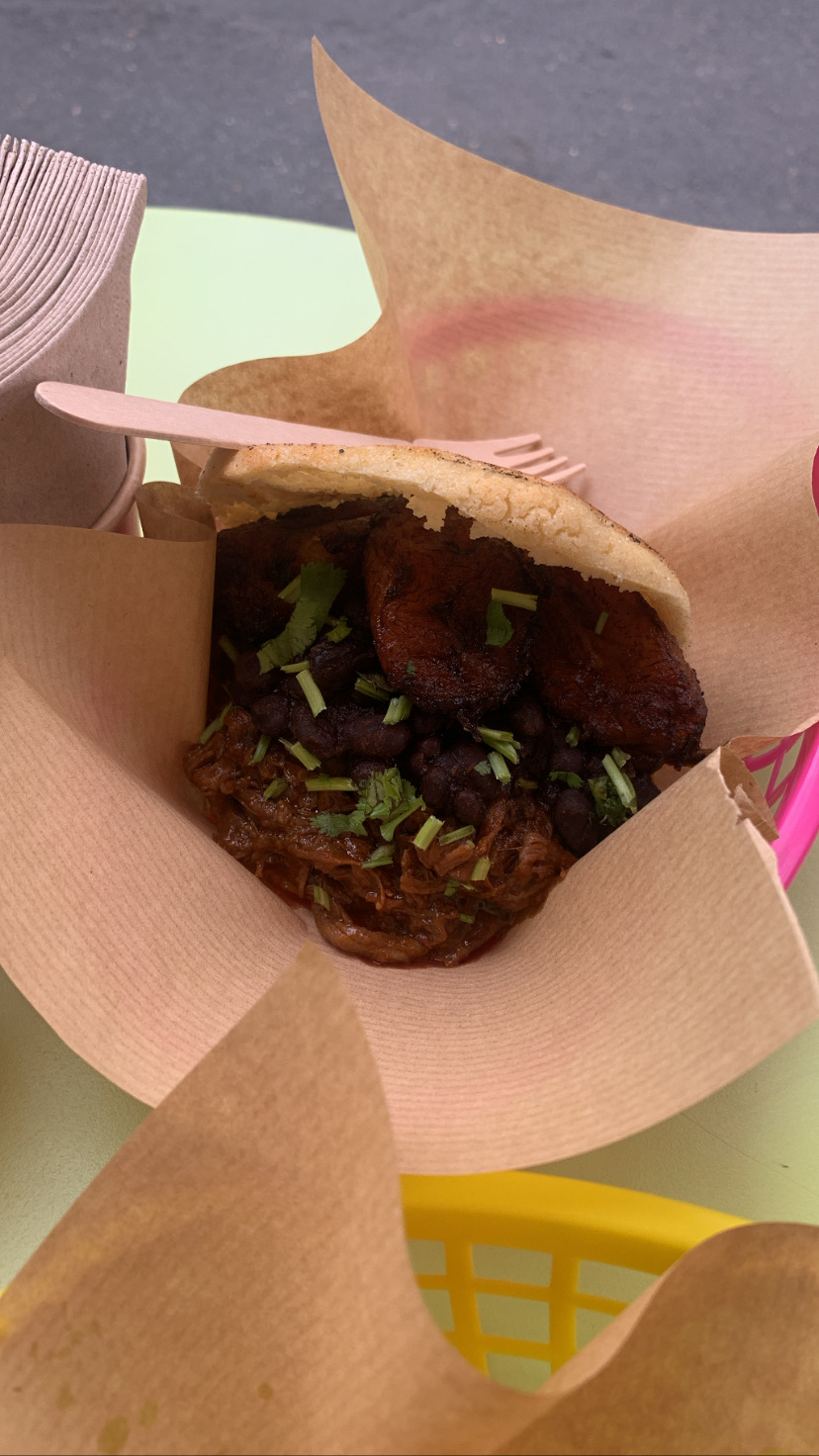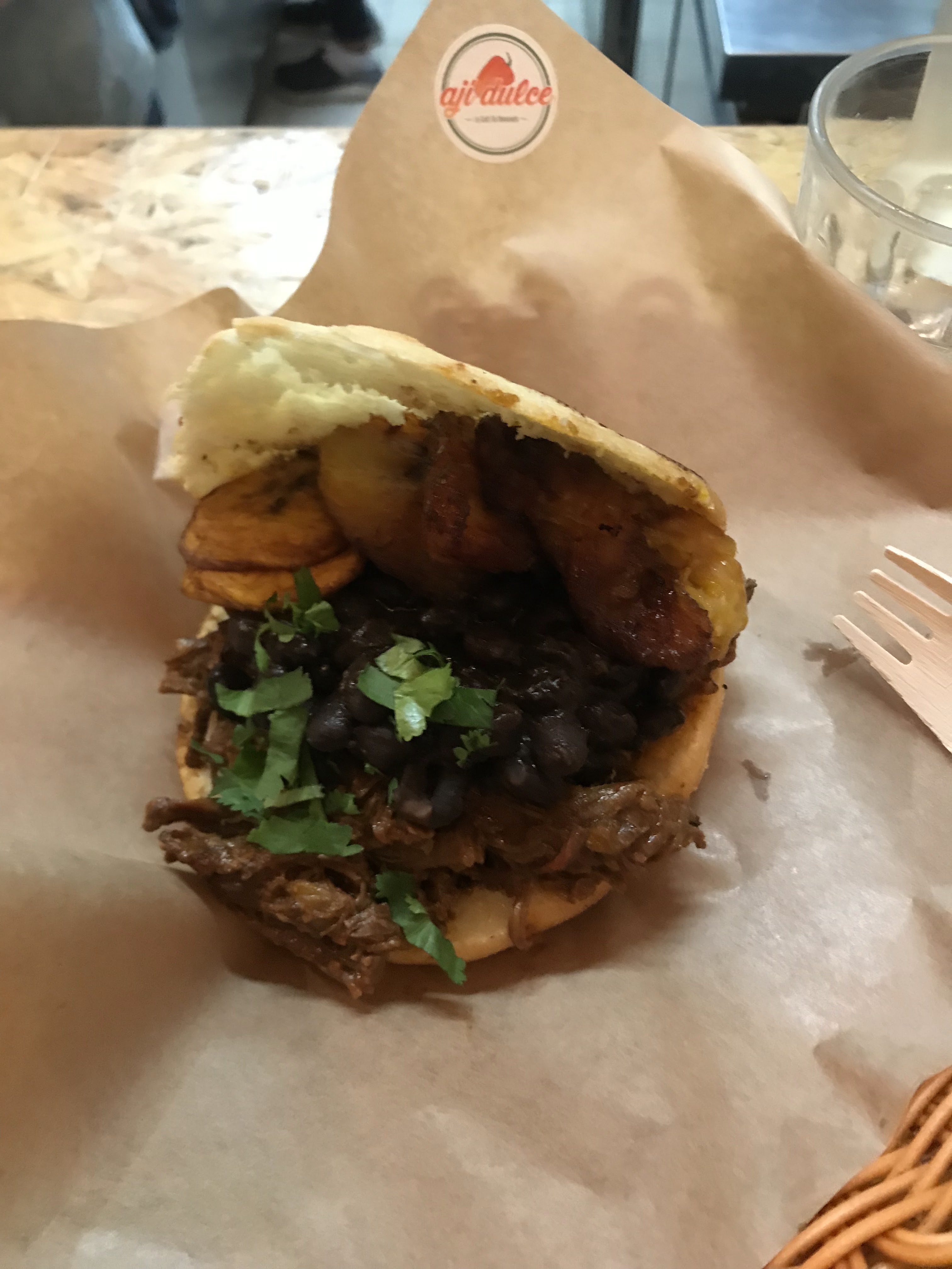 Génial! C'était la première fois que je mangeais de la nourriture vénézuélienne et c'est incroyable. C'est comme le meilleur sandwich. Vraiment savoureux, je mangerai encore bien sûr. Et il existe des options végétariennes.