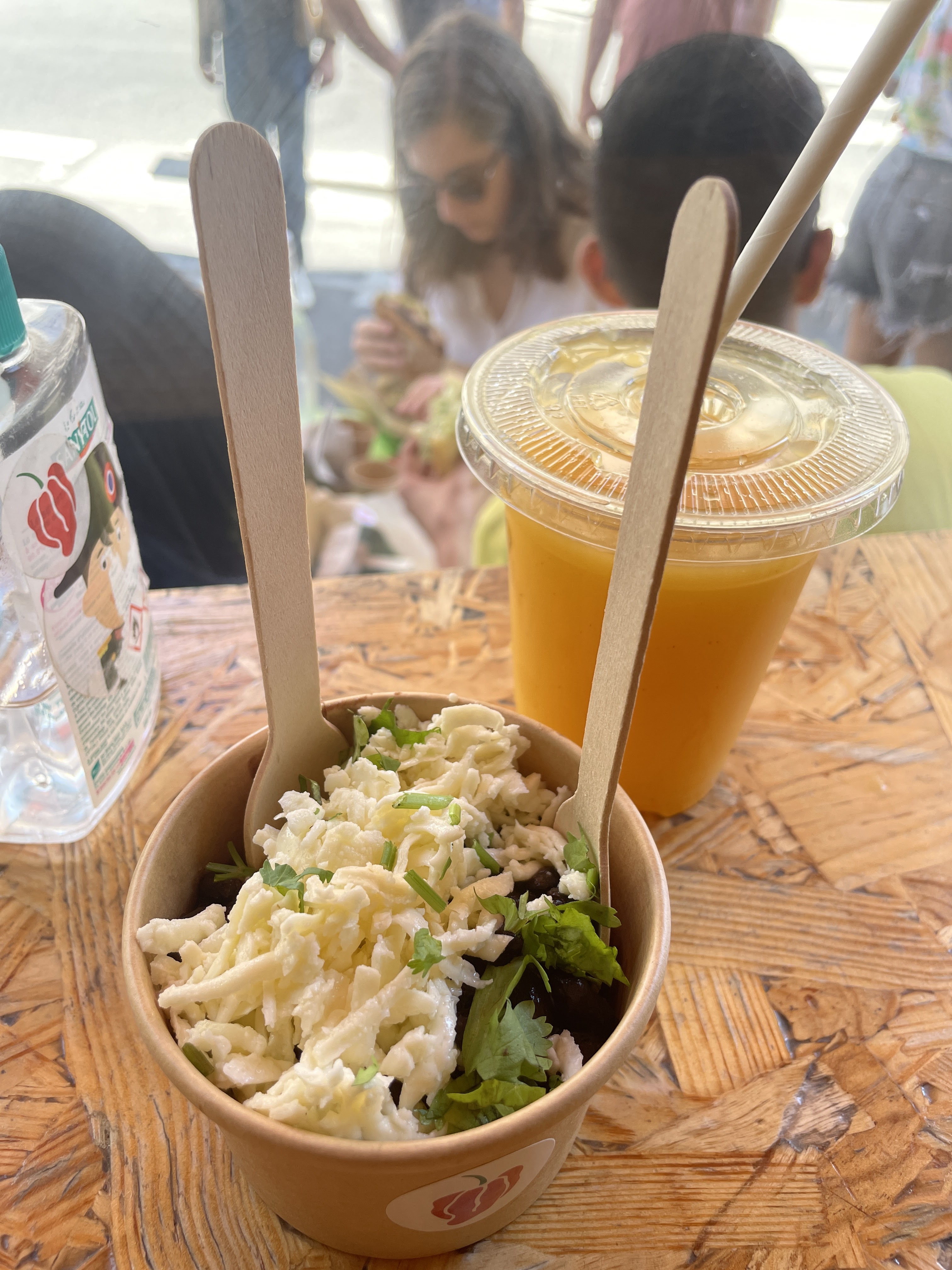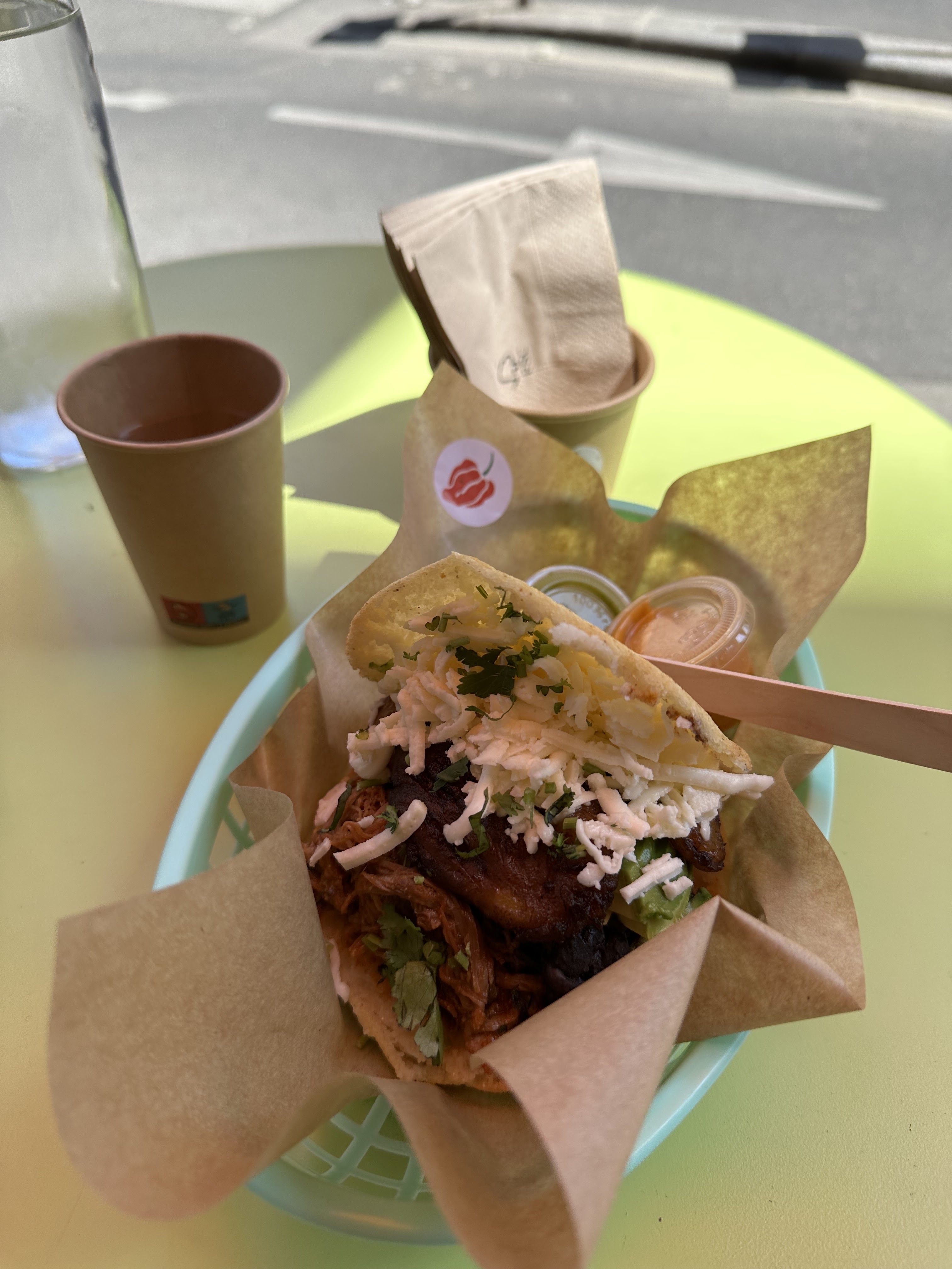 Petit street food vénézuélien sympa. Le personnel est super gentil et les arepas sont bonnes ! J’adore la galette de maïs et les haricots étaient très bien cuisinés. Le poulet en revanche était un peu sec. Le deuxième vegan avec le cream cheese je suis moins fan. Pour les add-on, les chips de banane plantain sont super bonnes et la boisson canne à sucre/ citron c’est sympa mais c’est chère et sucrée