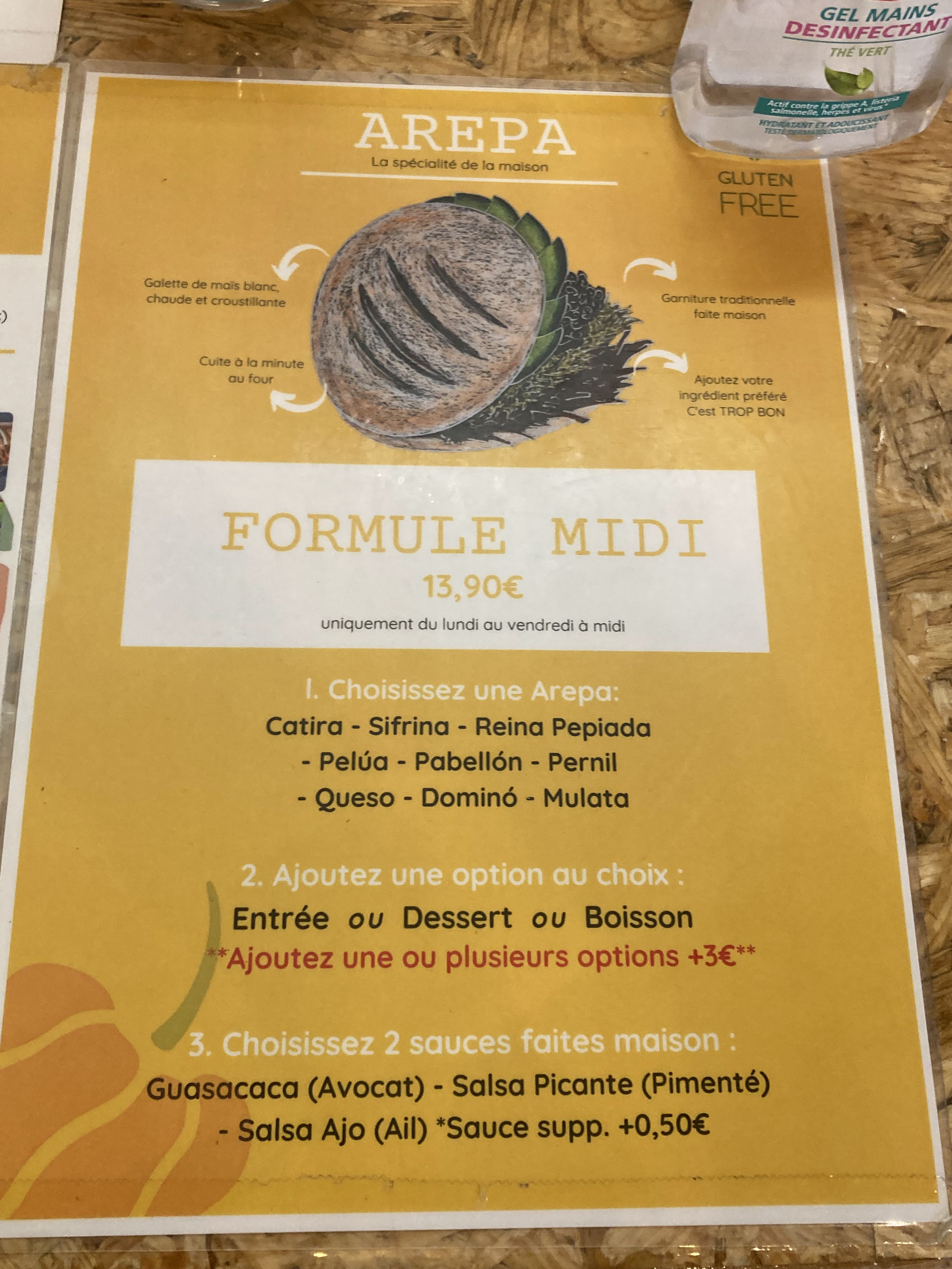 leurs Arepas sont vraiment excellents. idéalement situé entre Montmartre et Opéra.