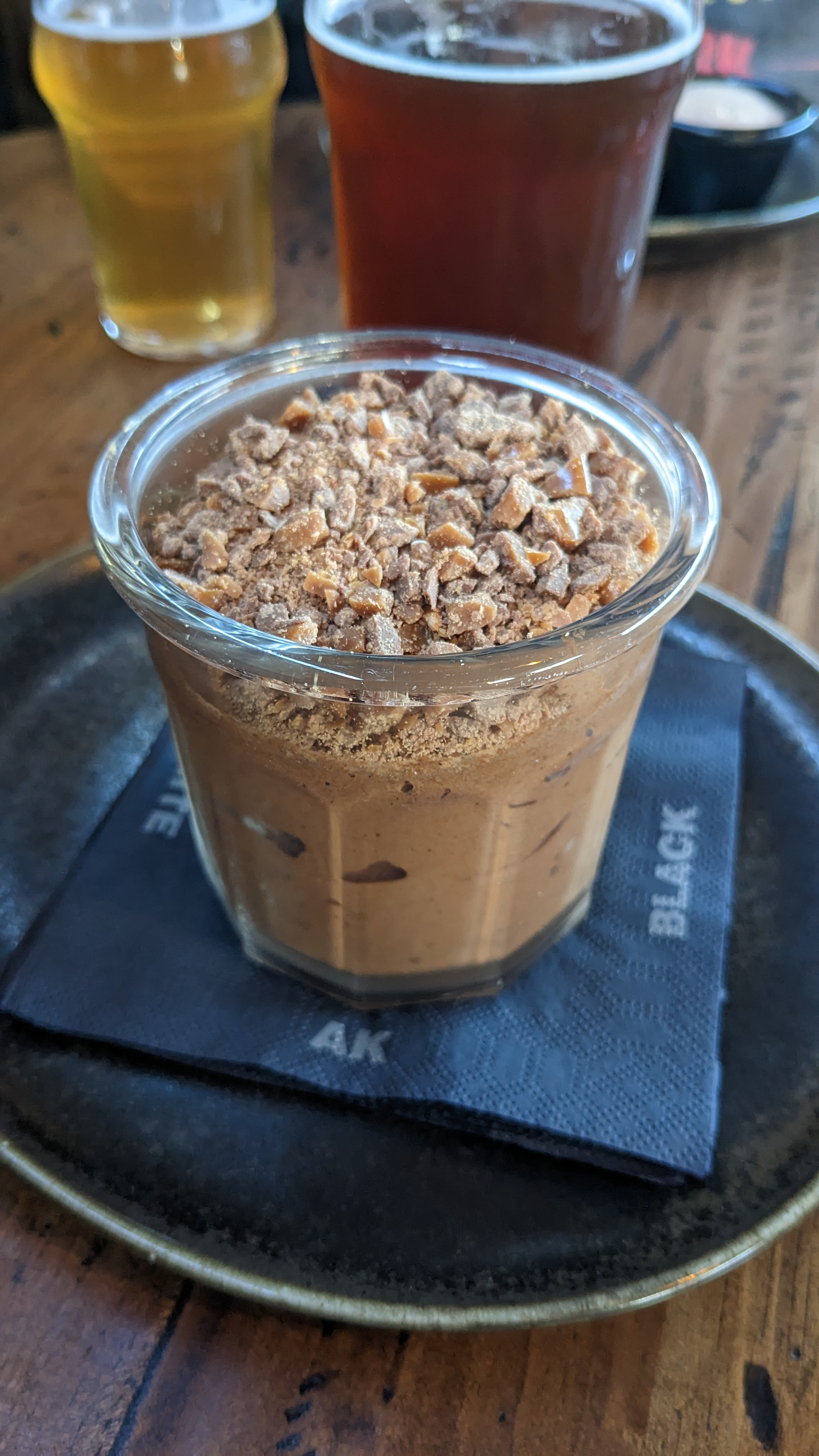 J'ai pris le burger flambé au Jack Daniel's mais malheureusement mon supplément bacon avait été oublié et j'avais très faim donc je n'ai pas notifié un serveur de l'oubli. Burger très bon même si un peu fade, et manquait vraiment du bacon, je pense qu'ils devraient mettre du bacon le dans burger de base sans en faire un supplément pour rajouter un petit quelque chose... Bref je m'égare. Bonnes découvertes de bière avec la tundra nepa, etc. Ambiance sympa avec de la musique pas trop forte ce qui était appréciable et sièges confortable.