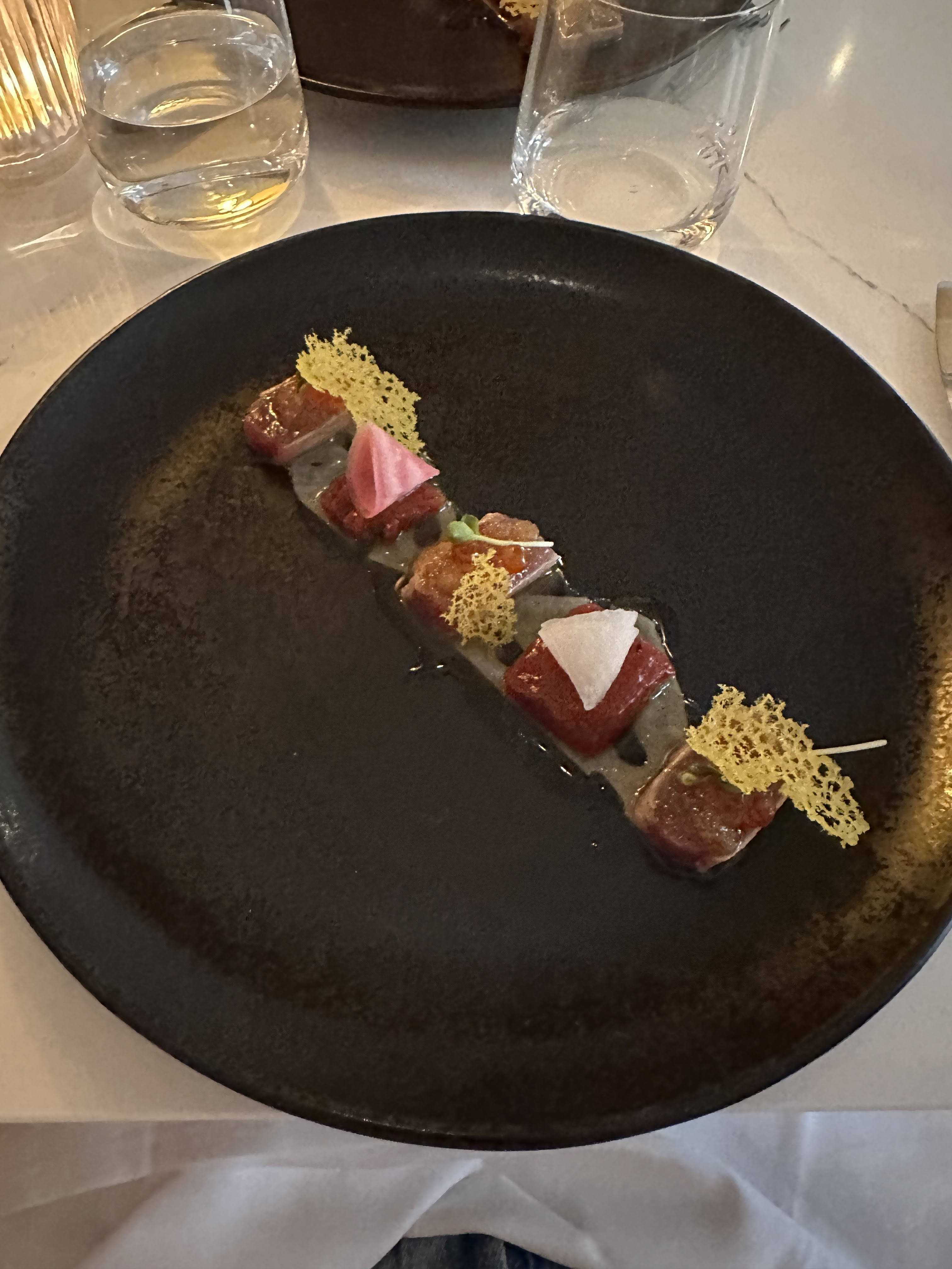 Ce fut un merveilleux voyage culinaire.. Tout nous a semblé parfait et je peux l'affirmer, ça l'était. Nous avons choisi la formule en 7 étapes. Nous avons découvert de nouvelles saveurs, dégusté le bœuf Wagyu, très étonnant ! Ça fleure les étoiles !
