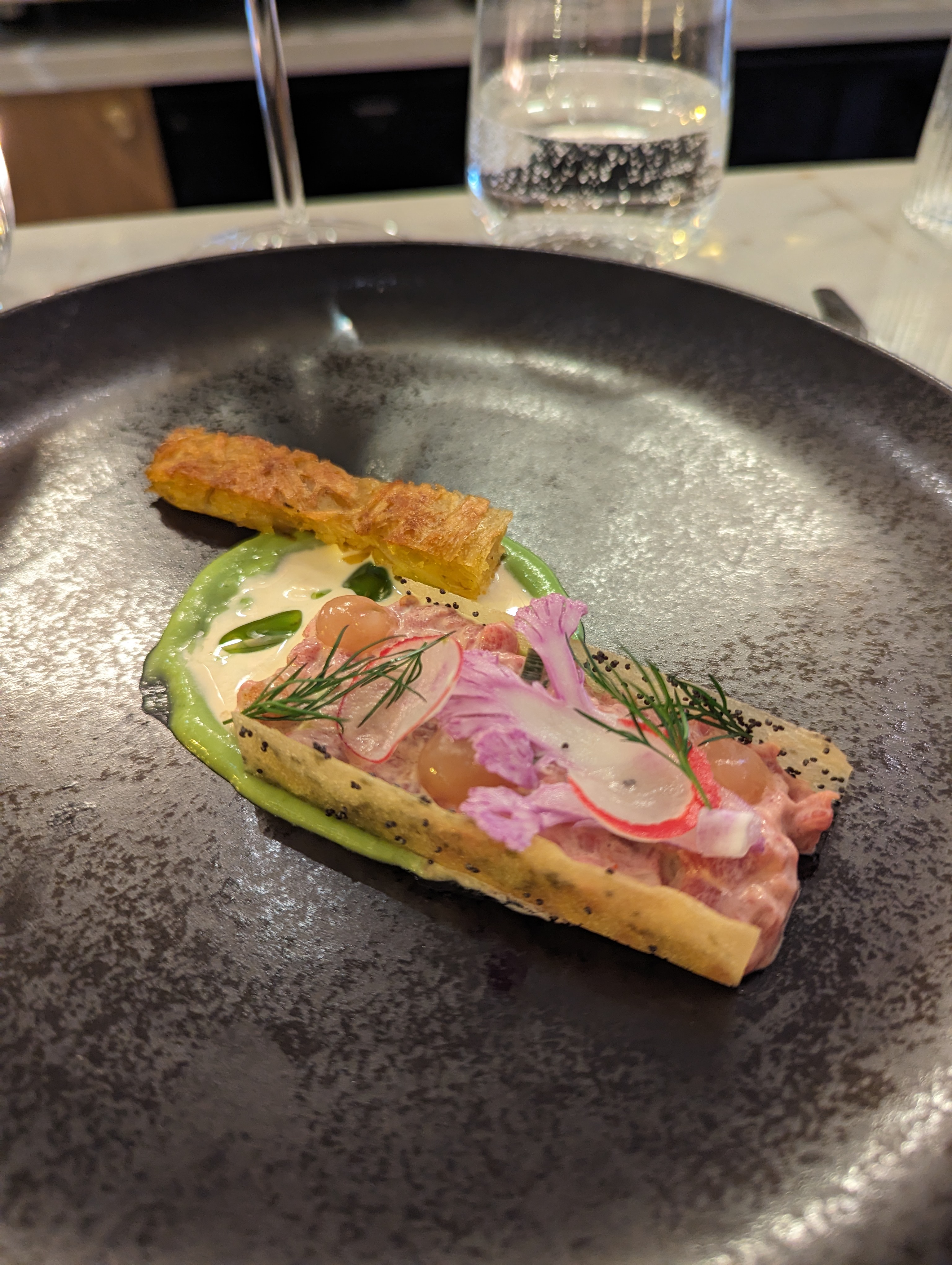 Expérience à vivre : La cuisine du chef est innovante et raffinée, avec des influences japonaises marquées par les techniques culinaires et les produits de qualité (autres que le yuzu). Nous avons pris le menu Omakase en 7 temps avec supplément fromage (tête de moine avec des accompagnements exquis), et wagyu (catégorie A5 Hokkaido). Nos préférés : Le tataki de thon, le plat de poisson, et le pré dessert. Un service professionnel et élégant : un grand merci à Ken et Paul pour leur accueil ! Nous reviendrons très vite.