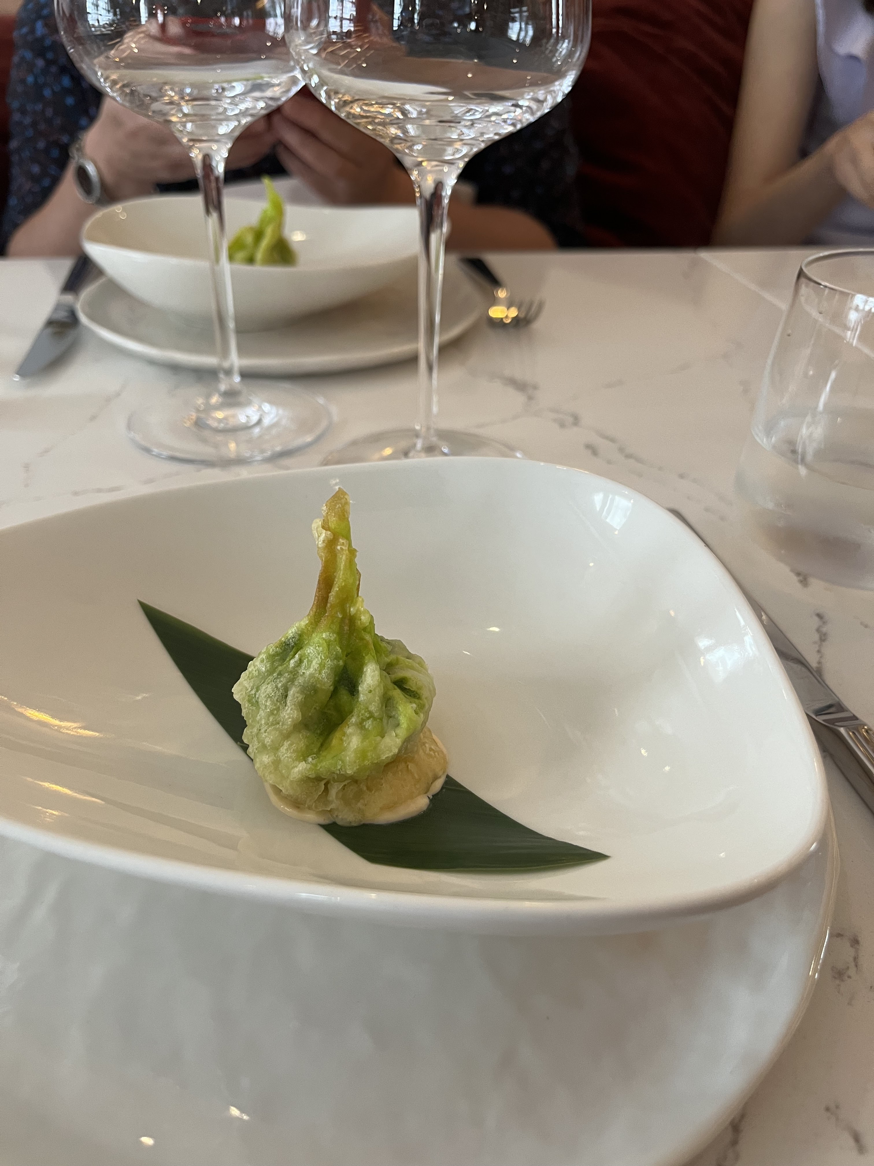 Repas incroyable ! Nous avons énormément apprécié la nourriture et le personnel amical. La présentation était belle et surpassée, si possible, par les saveurs de chaque plat. Le menu change selon les saisons – le nôtre comprenait des asperges sous de nombreuses formes créatives et délicieuses.